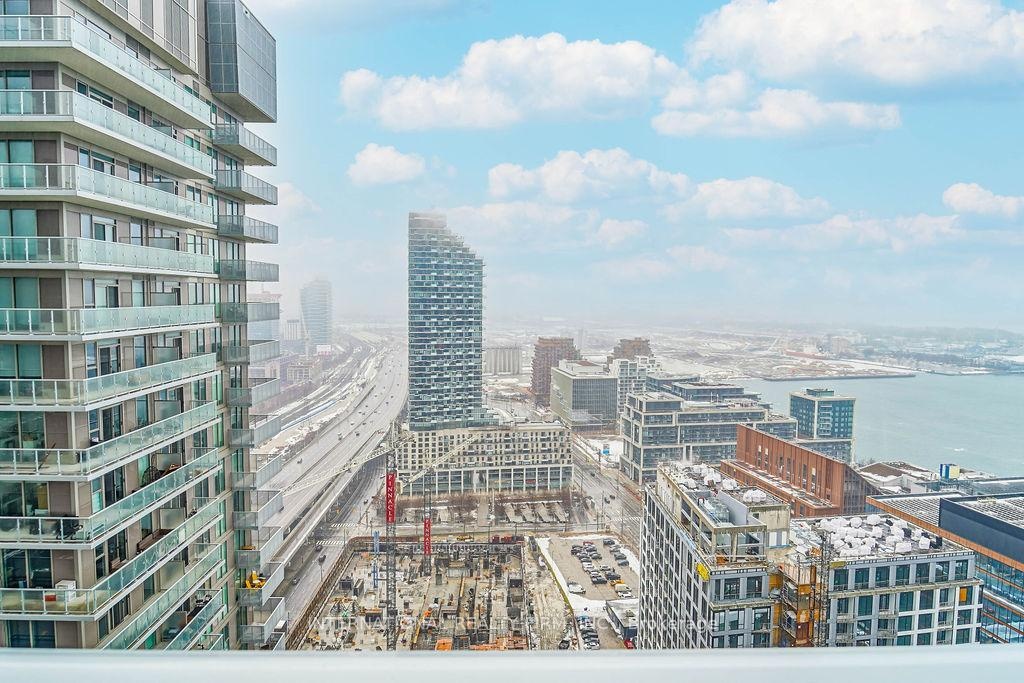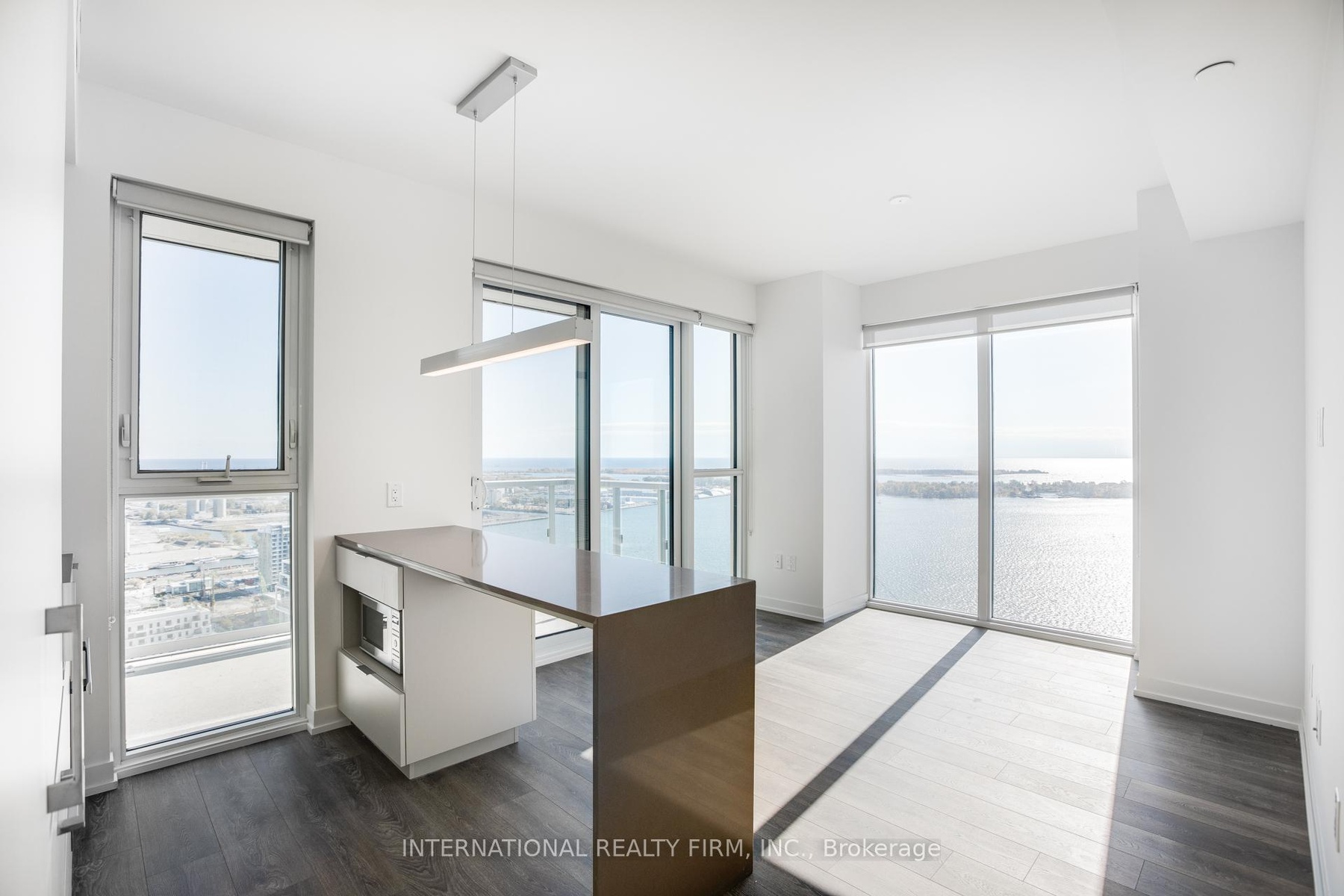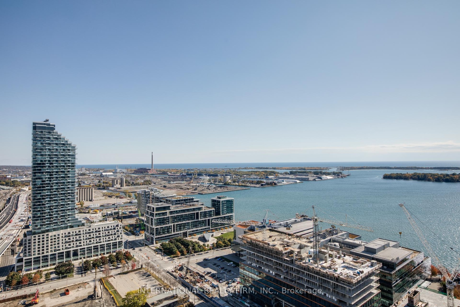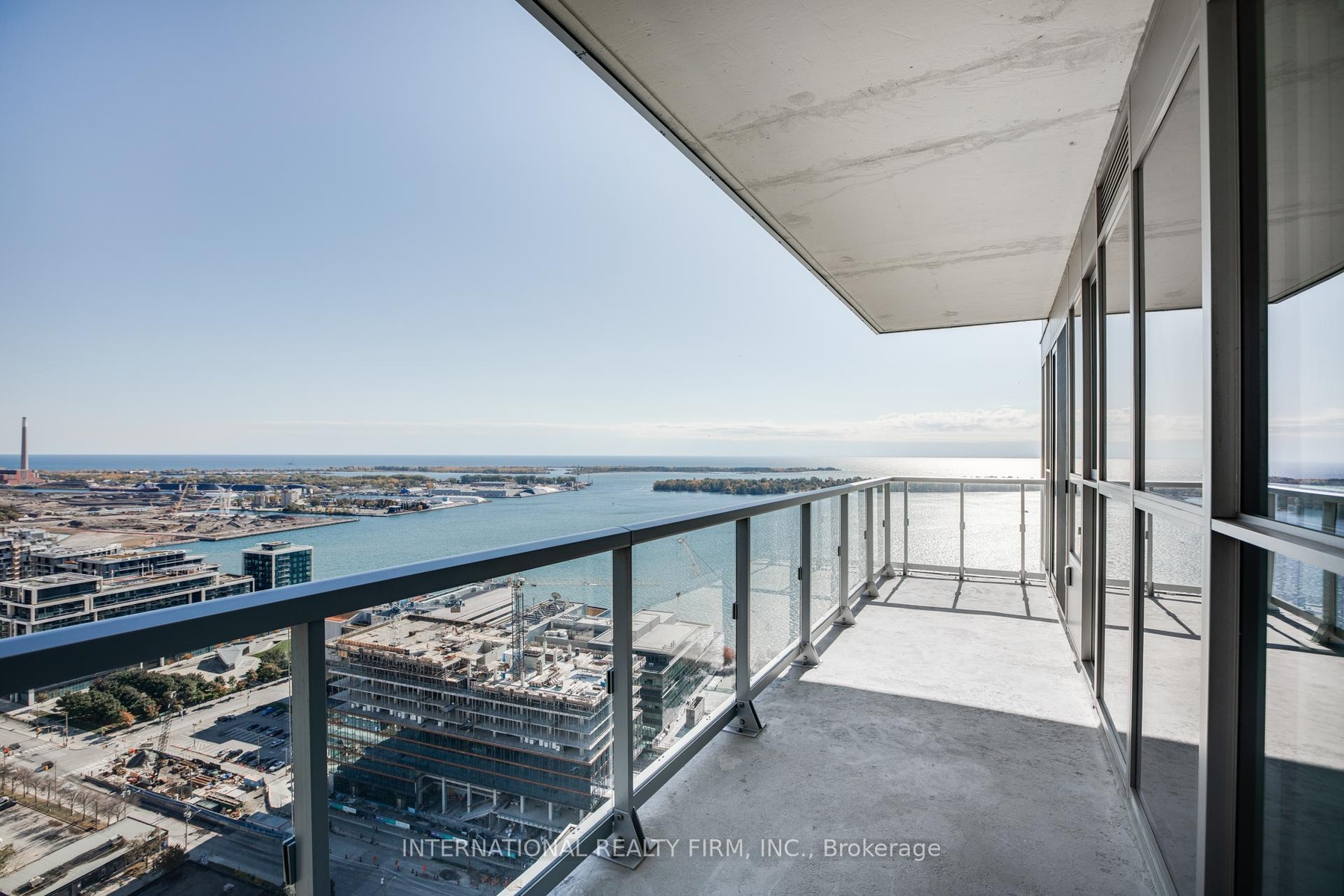 Fully Furnished 2 bed 2 bath condo on the 32nd floor south facing the Water! Incredible panoramic views of the lake and City!!! Large 190 sqft balcony. Comes with 1 parking, 1 locker and furnishings as shown in the photos. Walking distance to grocery stores, restaurants, bars, public transportation and Sugar Beach. High end modern kitchen with premium Miele appliances and upgraded washrooms. Steps to Lake Ontario and bike trails which connects you to every feature of downtown Toronto. Primary bedroom with walk-in closet. Ensuite washer and dryer.
