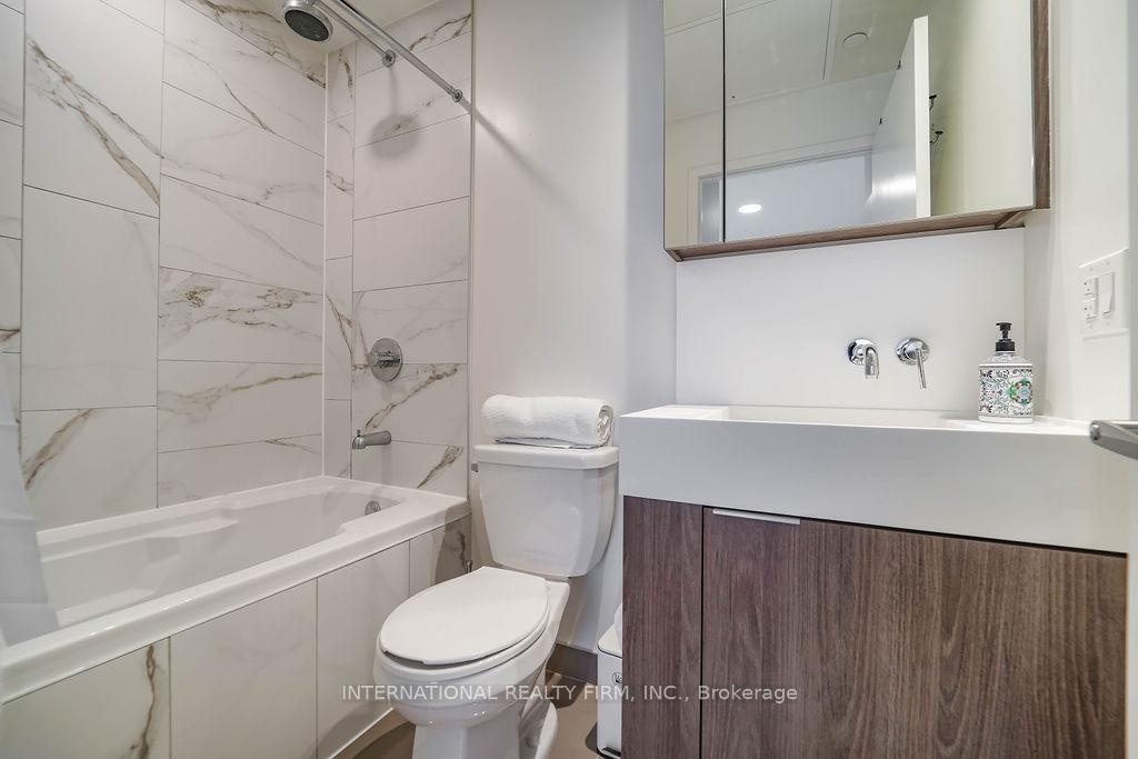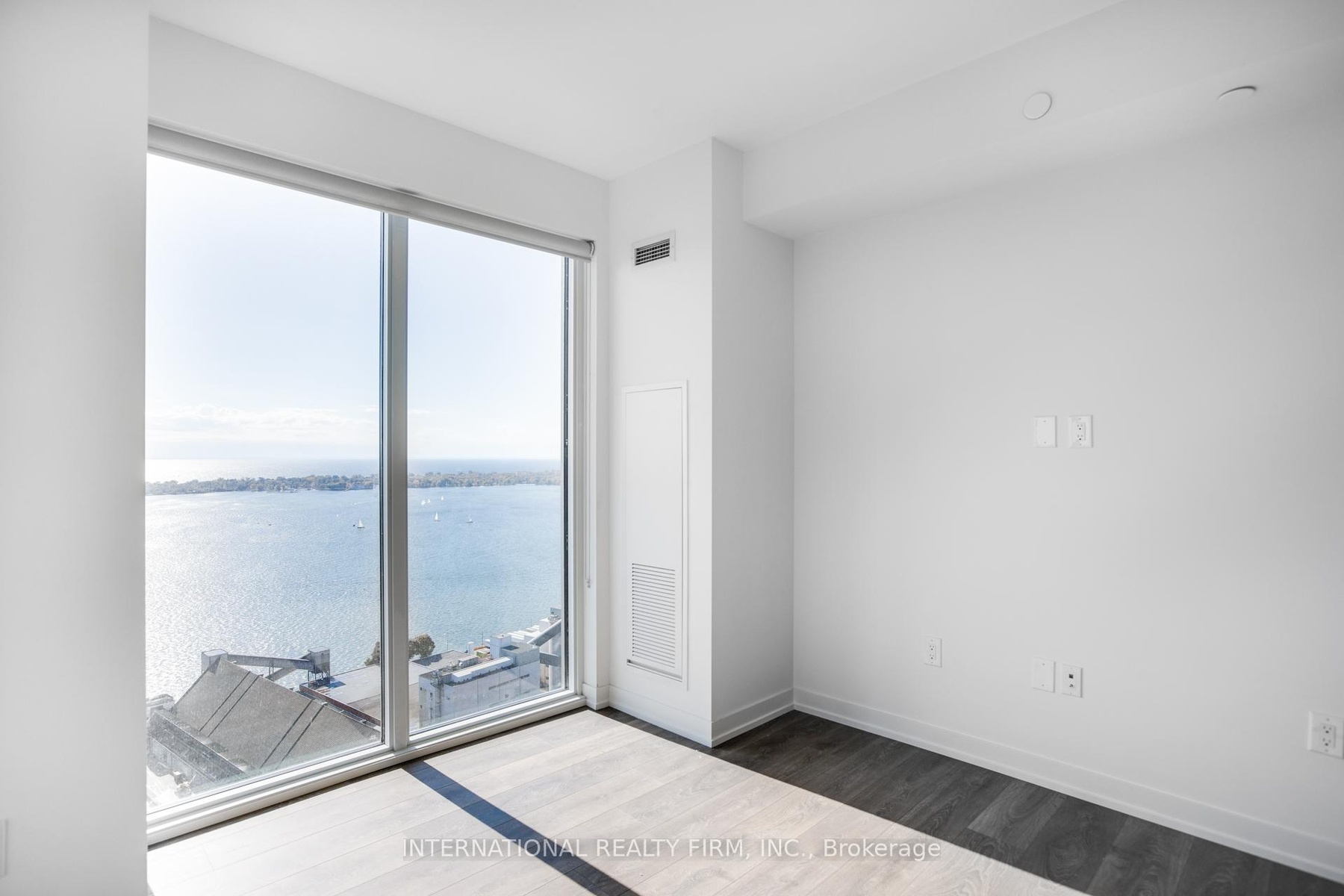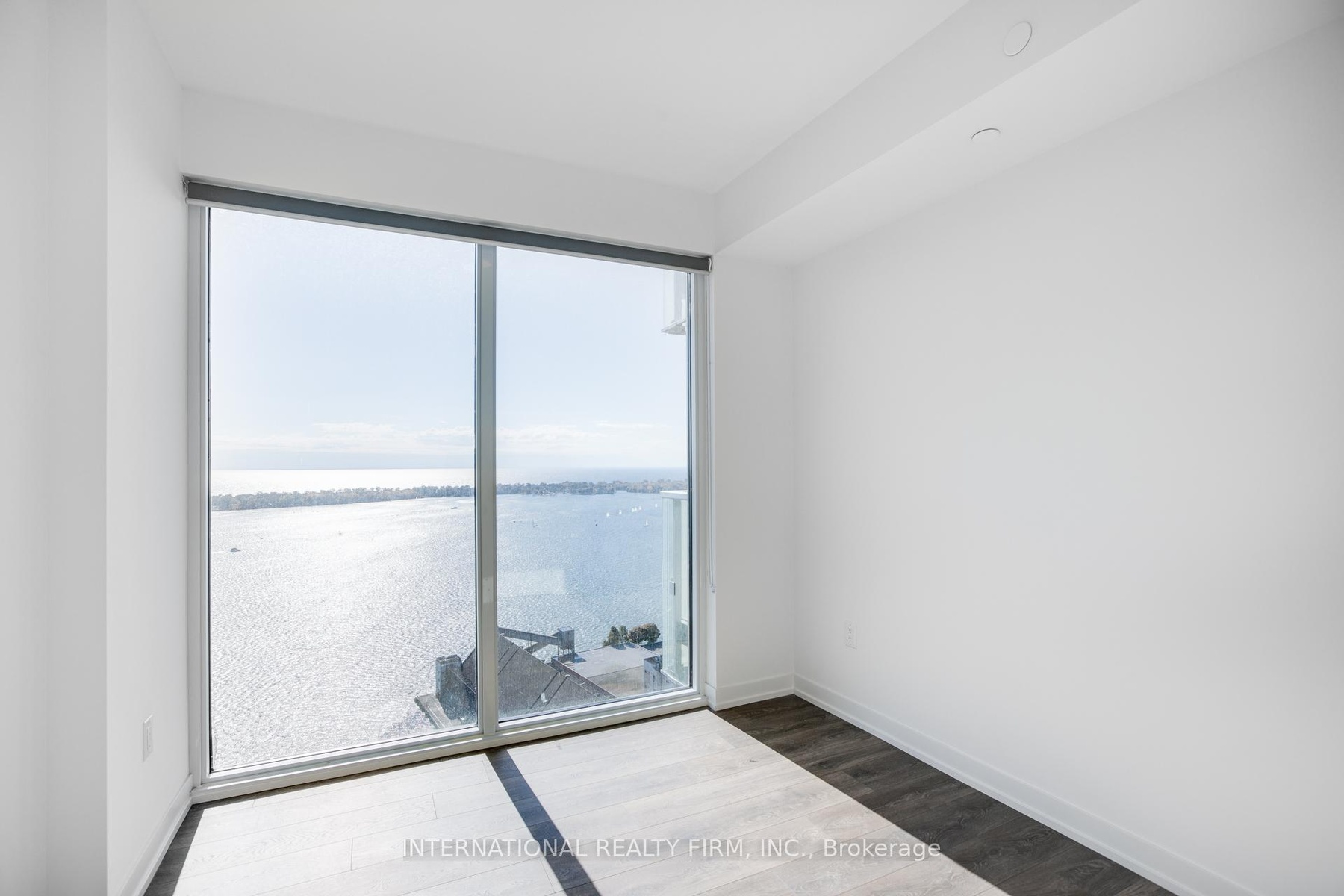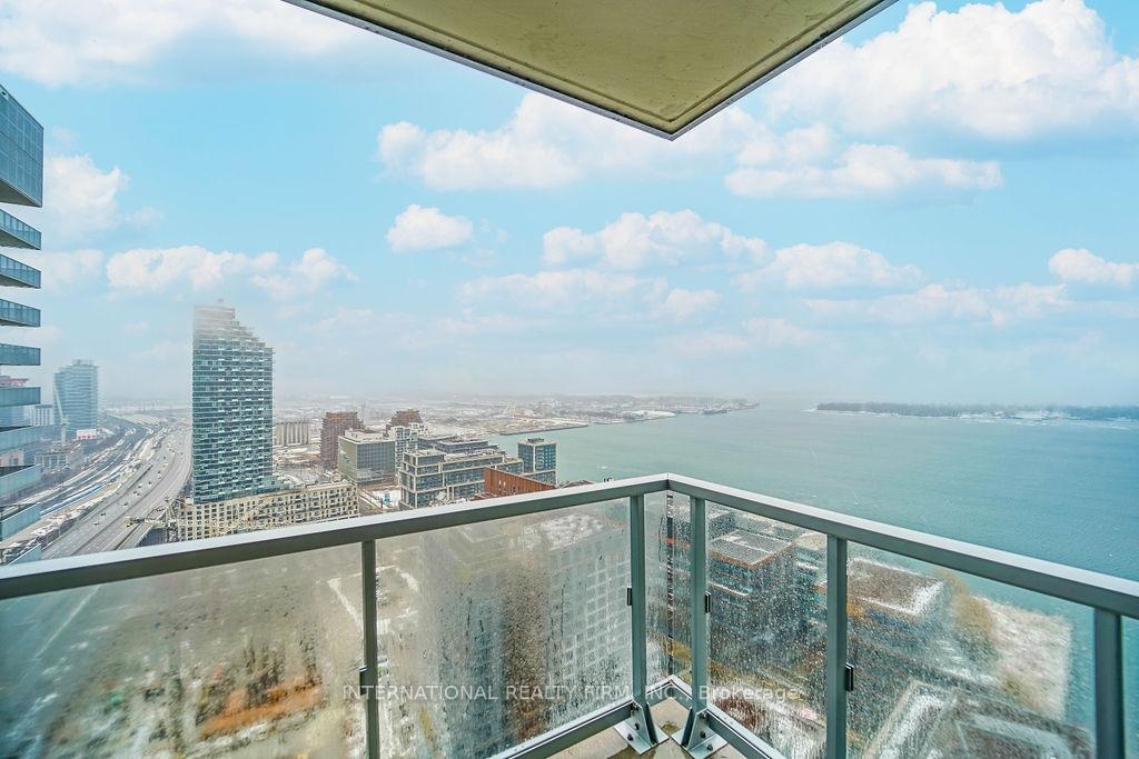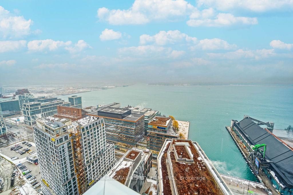 Fully Furnished 2 bed 2 bath condo on the 32nd floor south facing the Water! Incredible panoramic views of the lake and City!!! Large 190 sqft balcony. Comes with 1 parking, 1 locker and furnishings as shown in the photos. Walking distance to grocery stores, restaurants, bars, public transportation and Sugar Beach. High end modern kitchen with premium Miele appliances and upgraded washrooms. Steps to Lake Ontario and bike trails which connects you to every feature of downtown Toronto. Primary bedroom with walk-in closet. Ensuite washer and dryer.