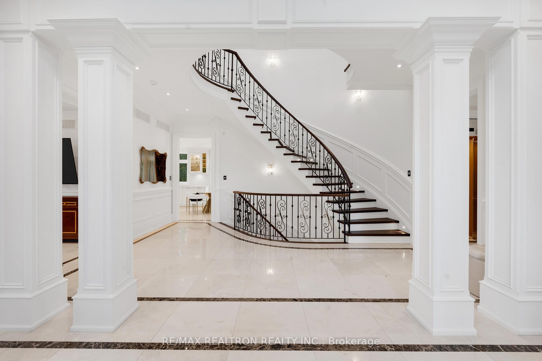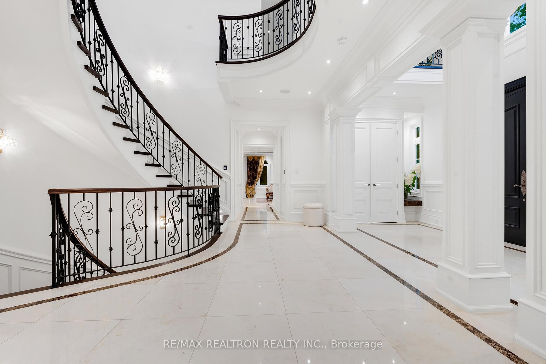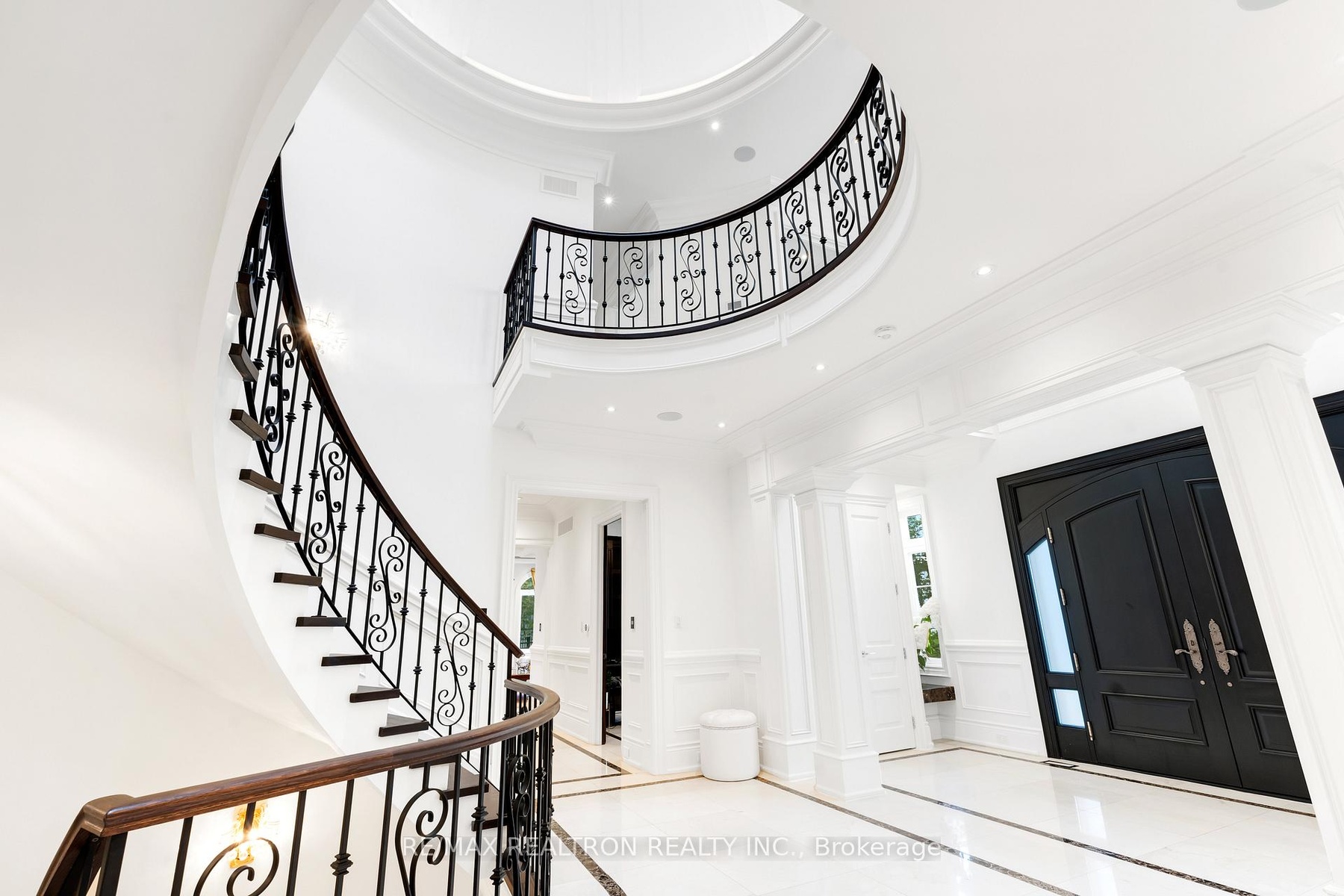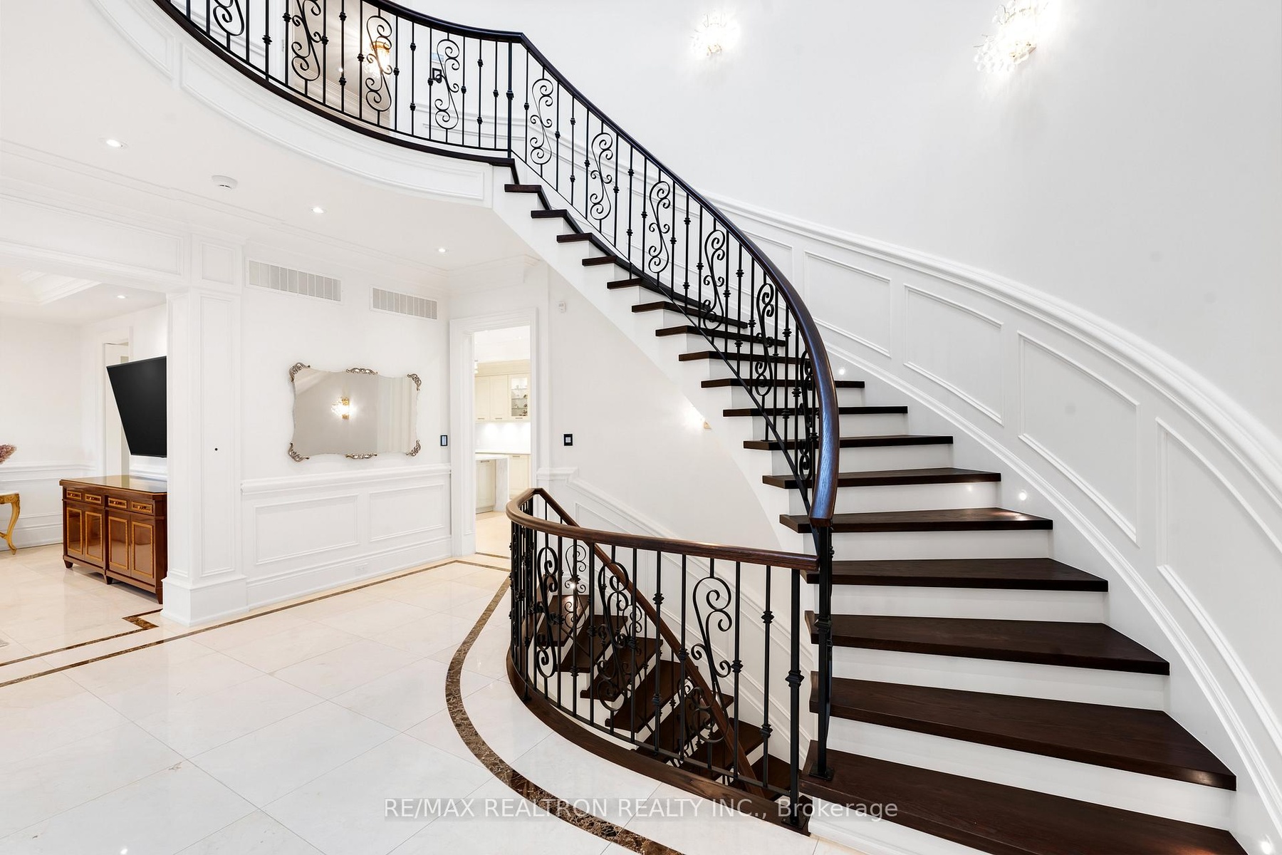Located in the prestigious 'Bayview Glen' community, this magnificent residence offers over 8,000 sq. ft. of refined living space in one of the areas most sought-after enclaves. Renowned for its tranquility, top-ranking schools, and proximity to premier golf courses, this exclusive neighborhood is the ideal setting for a home of such distinction. The residence showcases soaring 20 foot ceiling dramatic sky lit grand foyer with natural marble flooring, and expansive picture windows that bathe the interiors in natural light. Designed with both elegance and functionality in mind, the home features a chef-inspired gourmet kitchen with a custom stone island, built-in high-end appliances, and a secondary prep kitchen. Formal living and dining rooms with coffered ceilings, an oak-paneled office, and spacious en-suite bedrooms with walk-in closets highlight the meticulous attention to detail. Smart home technology, a 3- level elevator, heated lower level with nanny's suite, and a professionally finished walk-up basement complete with a wet bar, sauna, and recreation areas enhance the homes modern luxury. Set on a premium sized lot, the property offers breathtaking park-like grounds, professionally landscaped gardens, and a resort-style backyard retreat. Enjoy lush greenery, a sparkling swimming pool, covered pergola, and multiple outdoor entertaining spaces. Truly a masterpiece of architectural design, this home seamlessly combines grandeur, comfort, and timeless sophistication.