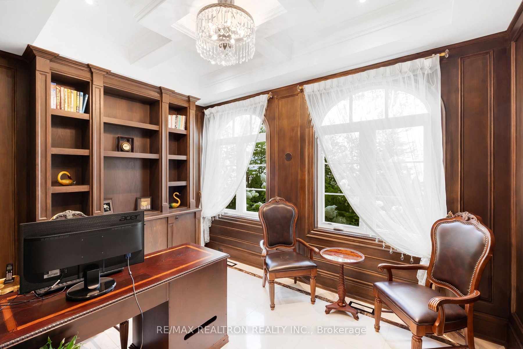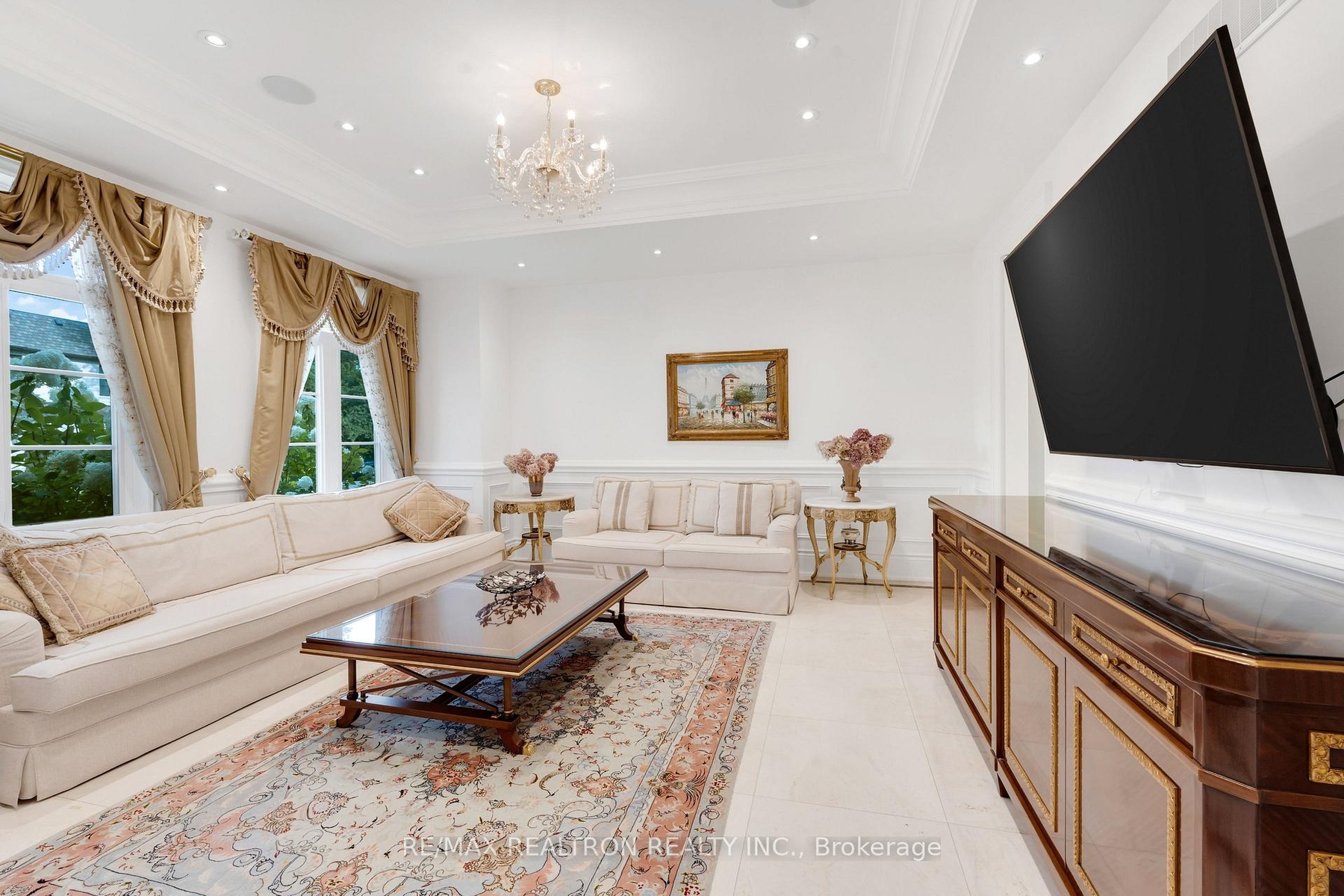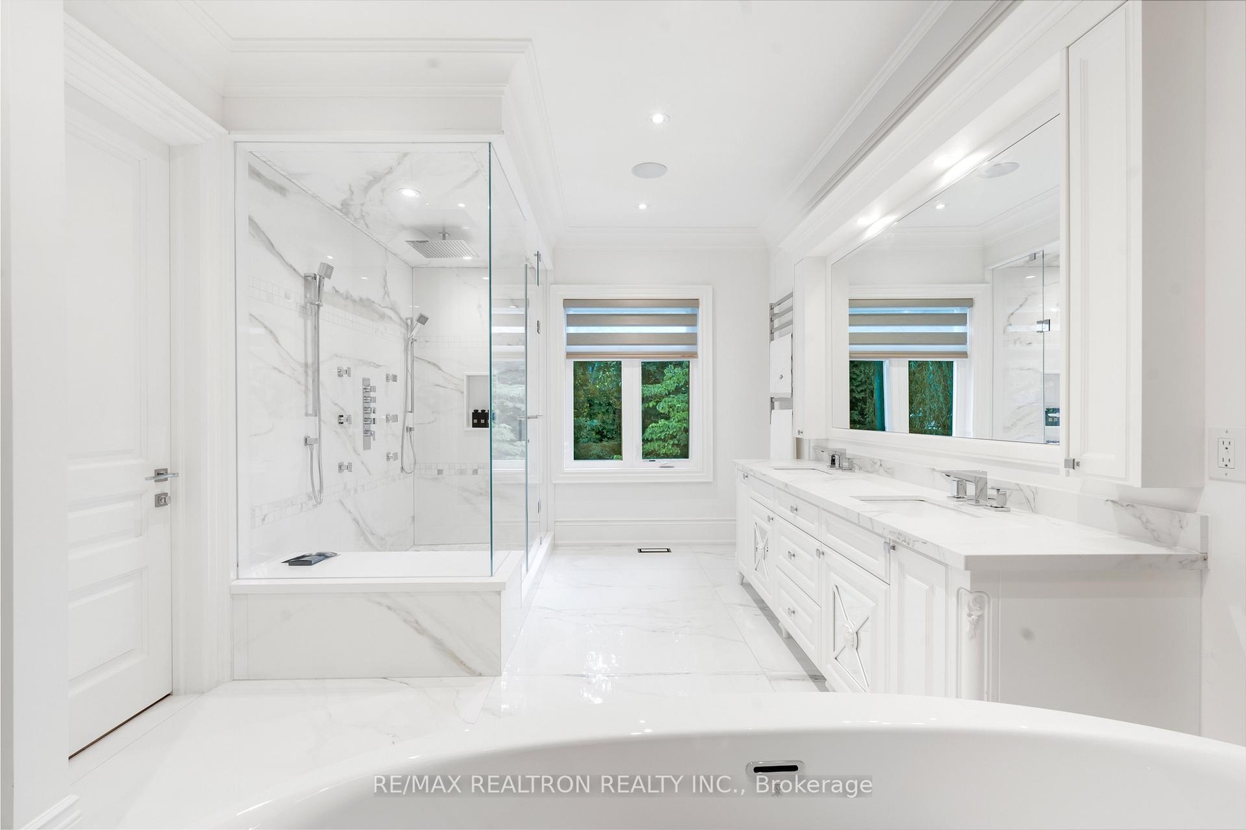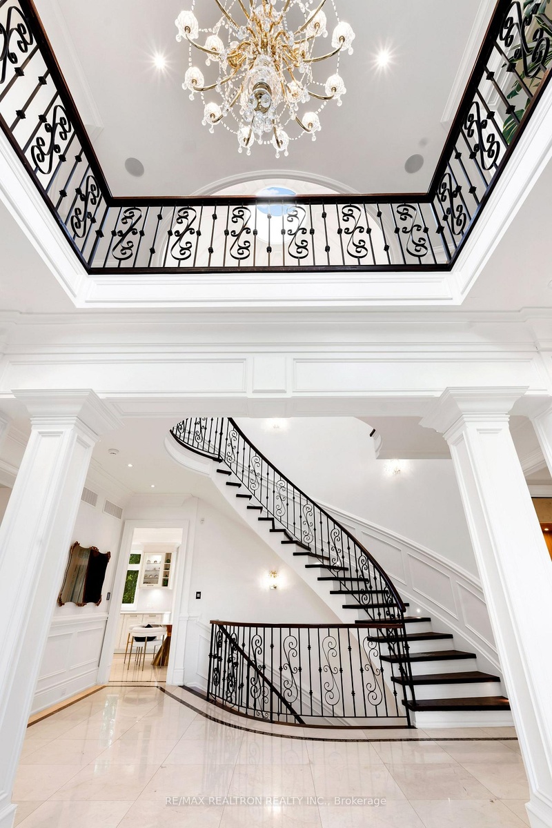 Located in the prestigious 'Bayview Glen' community, this magnificent residence offers over 8,000 sq. ft. of refined living space in one of the areas most sought-after enclaves. Renowned for its tranquility, top-ranking schools, and proximity to premier golf courses, this exclusive neighborhood is the ideal setting for a home of such distinction. The residence showcases soaring 20 foot ceiling dramatic sky lit grand foyer with natural marble flooring, and expansive picture windows that bathe the interiors in natural light. Designed with both elegance and functionality in mind, the home features a chef-inspired gourmet kitchen with a custom stone island, built-in high-end appliances, and a secondary prep kitchen. Formal living and dining rooms with coffered ceilings, an oak-paneled office, and spacious en-suite bedrooms with walk-in closets highlight the meticulous attention to detail. Smart home technology, a 3- level elevator, heated lower level with nanny's suite, and a professionally finished walk-up basement complete with a wet bar, sauna, and recreation areas enhance the homes modern luxury. Set on a premium sized lot, the property offers breathtaking park-like grounds, professionally landscaped gardens, and a resort-style backyard retreat. Enjoy lush greenery, a sparkling swimming pool, covered pergola, and multiple outdoor entertaining spaces. Truly a masterpiece of architectural design, this home seamlessly combines grandeur, comfort, and timeless sophistication.