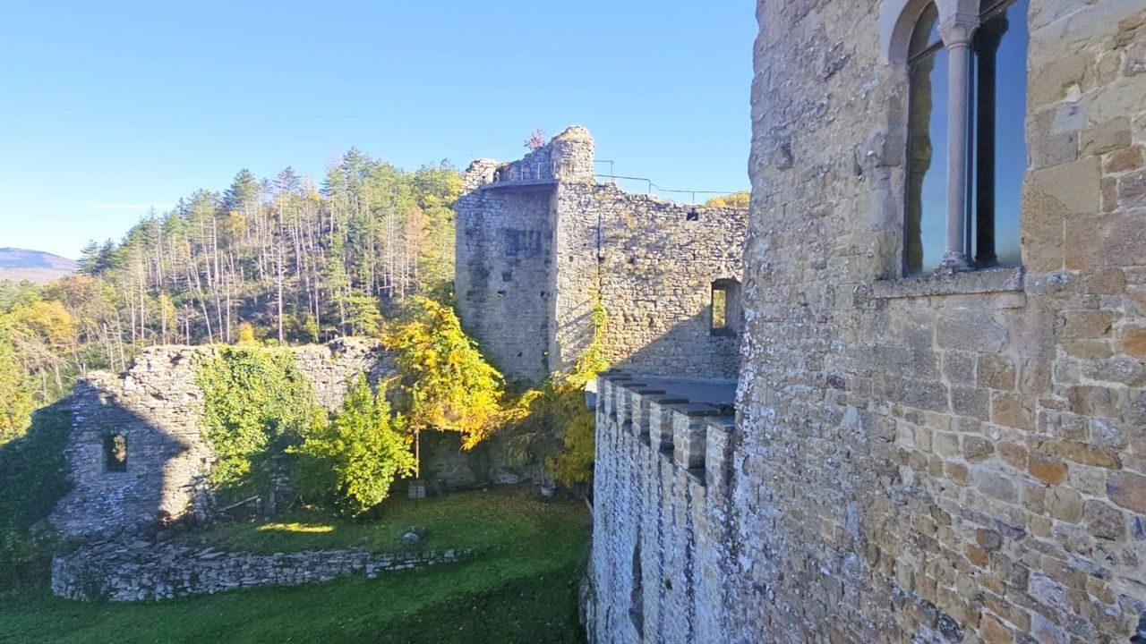 However, elements of extraordinary historical value remain perfectly preserved: the keep (central tower), the heart of the castle, houses four halls with period fireplaces, two of which have been completely restored and furnished with weapons and historical furniture, and two of which are awaiting restoration. In one of them, the famous “water torture” device, carved out of a stone niche, is still present, a rare testimony to medieval torture.