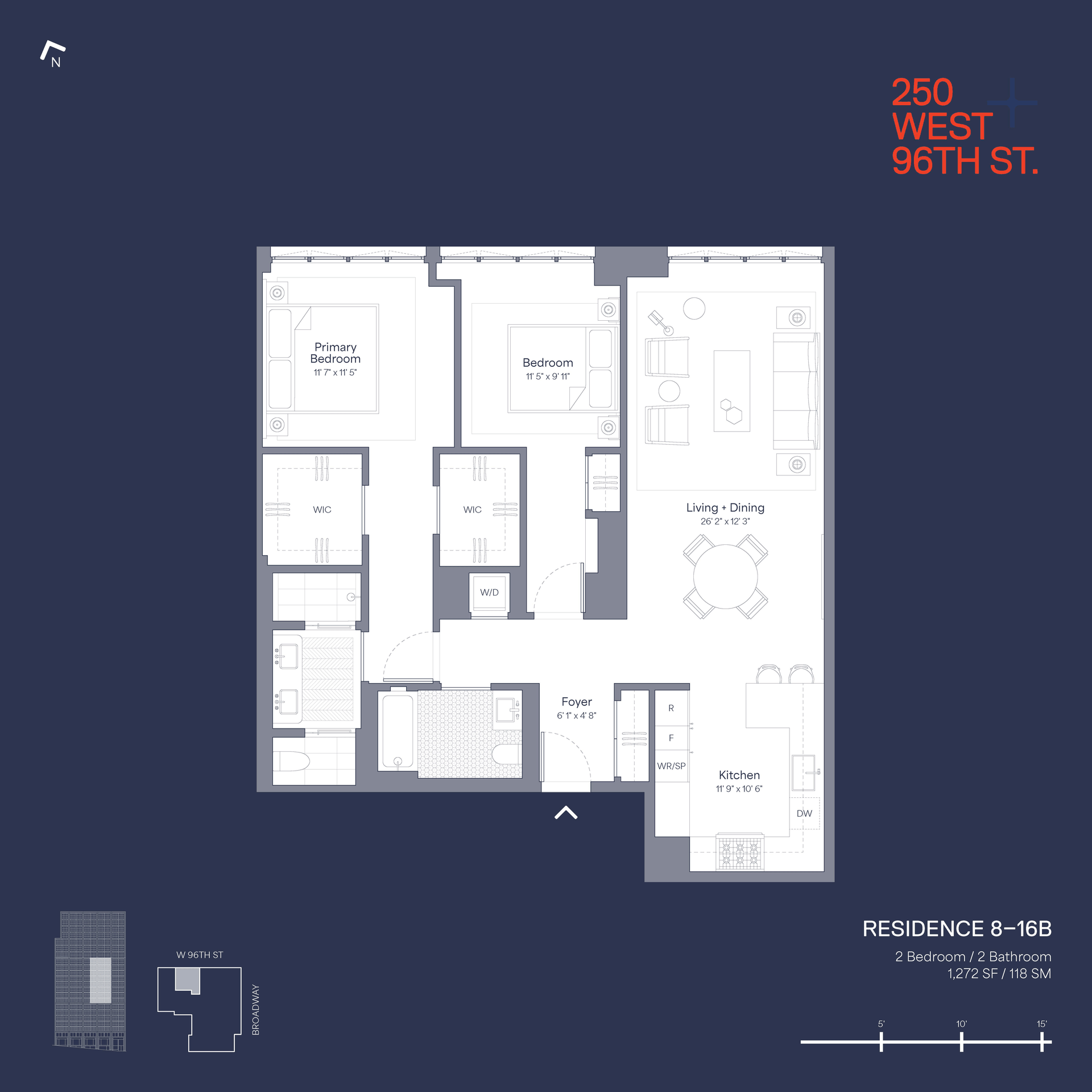 Welcome to Residence 12B, a gracious 1,281 square foot, two bedroom, two bath home with striking north-facing floor-to-ceiling casement windows and a stylish top of the line kitchen.