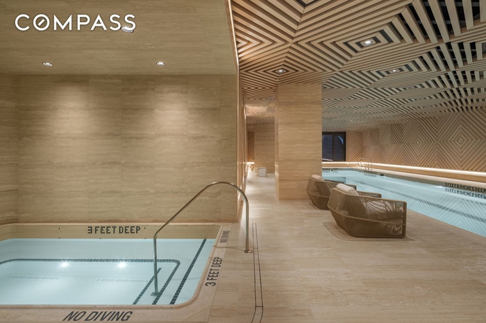 Residents enjoy a 75-foot saltwater lap pool, fitness center with Pilates reformers, landscaped rooftop terrace with outdoor cinema and separate grilling areas, regulation-size squash court with basketball hoop, private dining room with catering kitchen, music room, children’s playroom, club room and pet grooming station.
