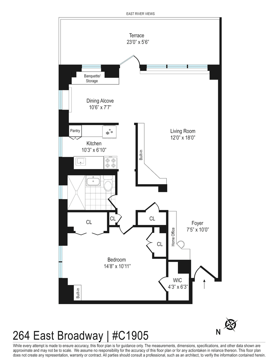 Spacious 19th floor one bedroom with incredible southeast facing views to the East River, Williamsburg and Manhattan Bridges, Downtown Brooklyn skyline and