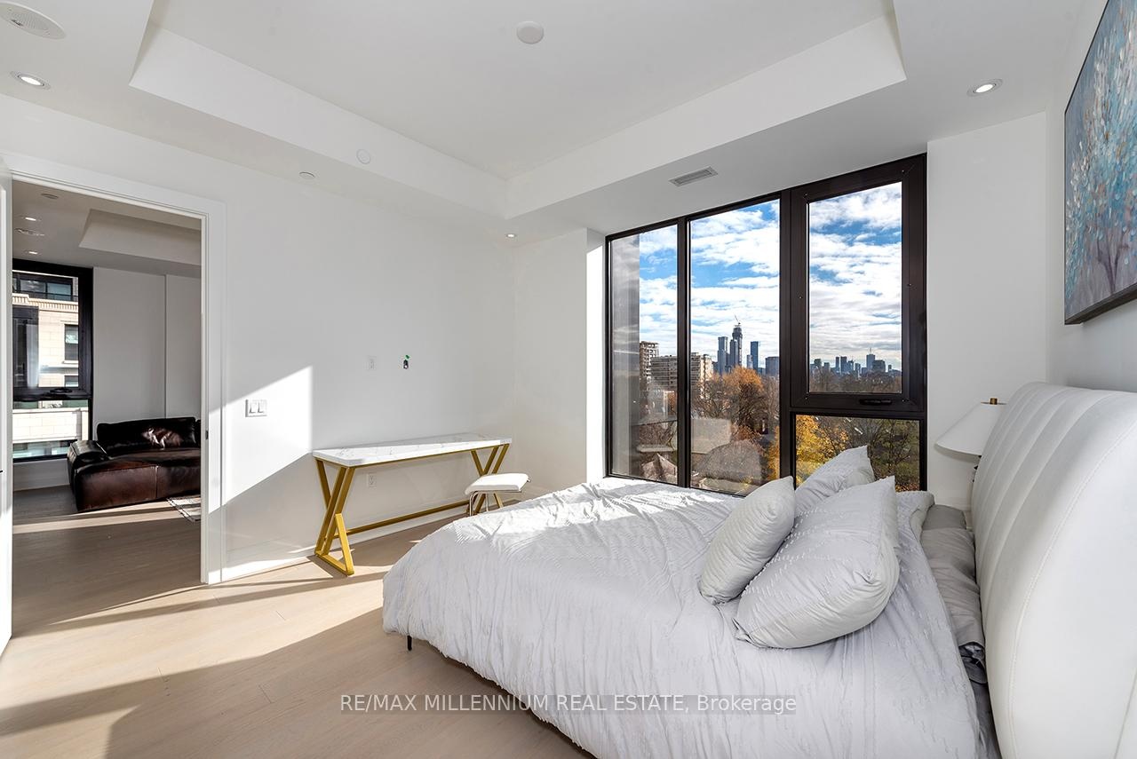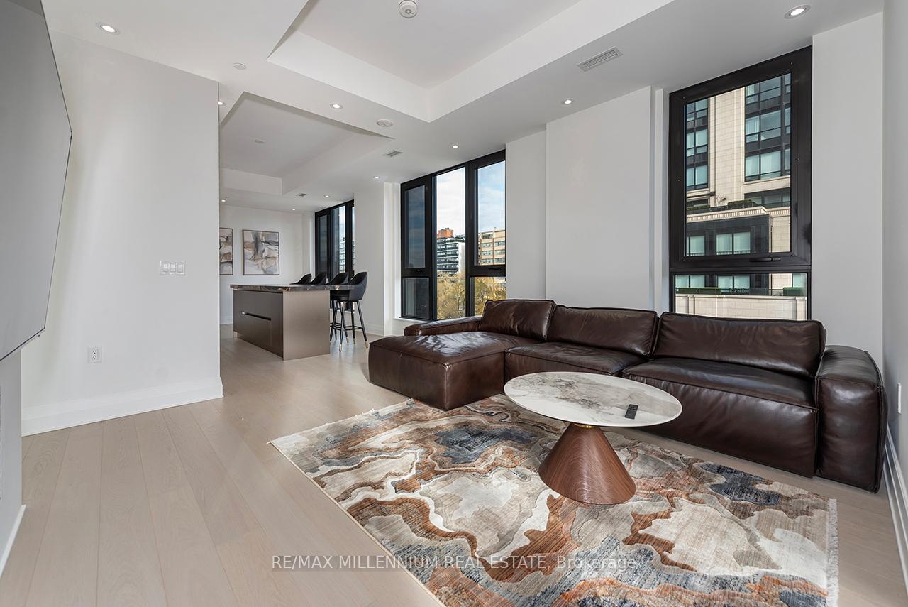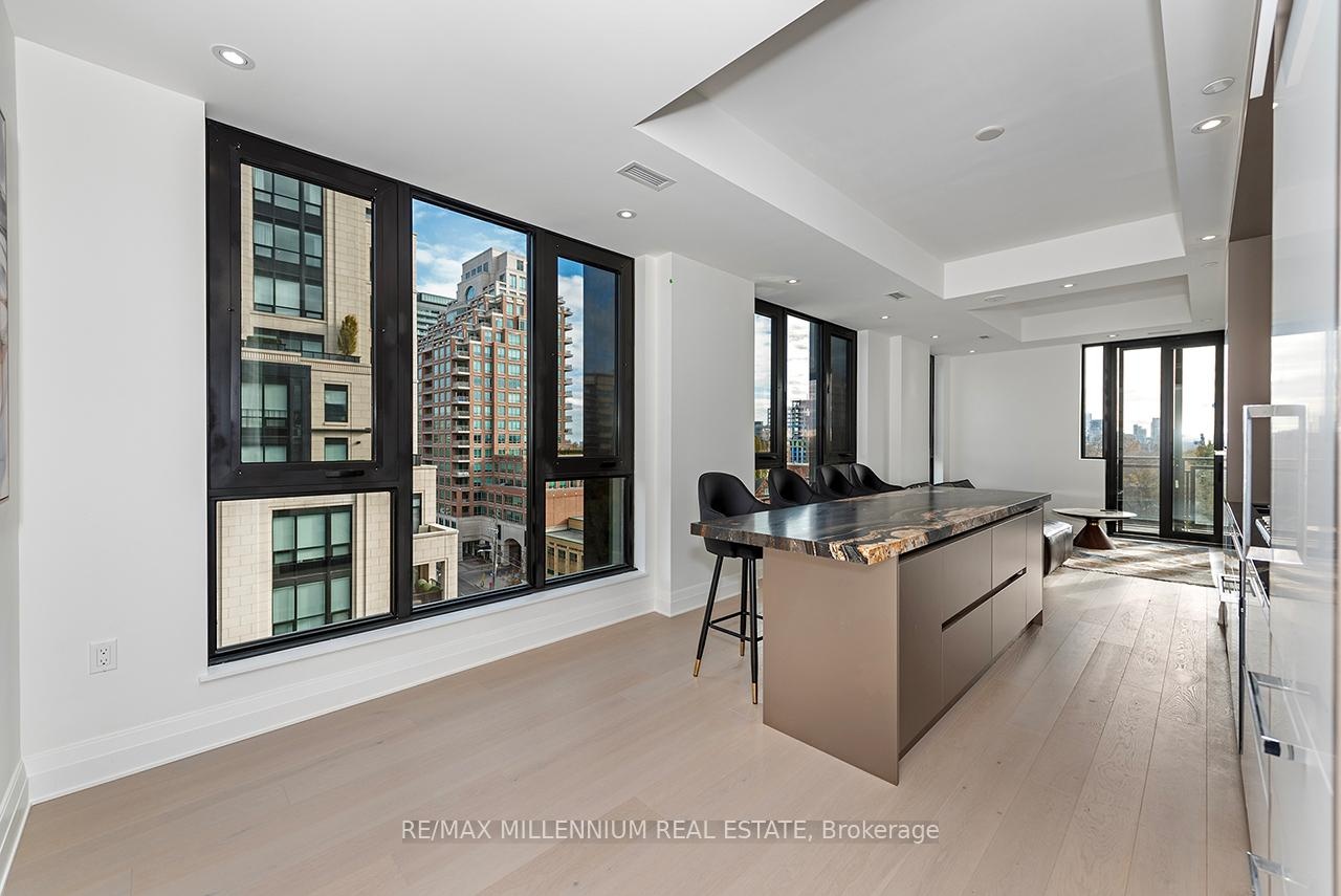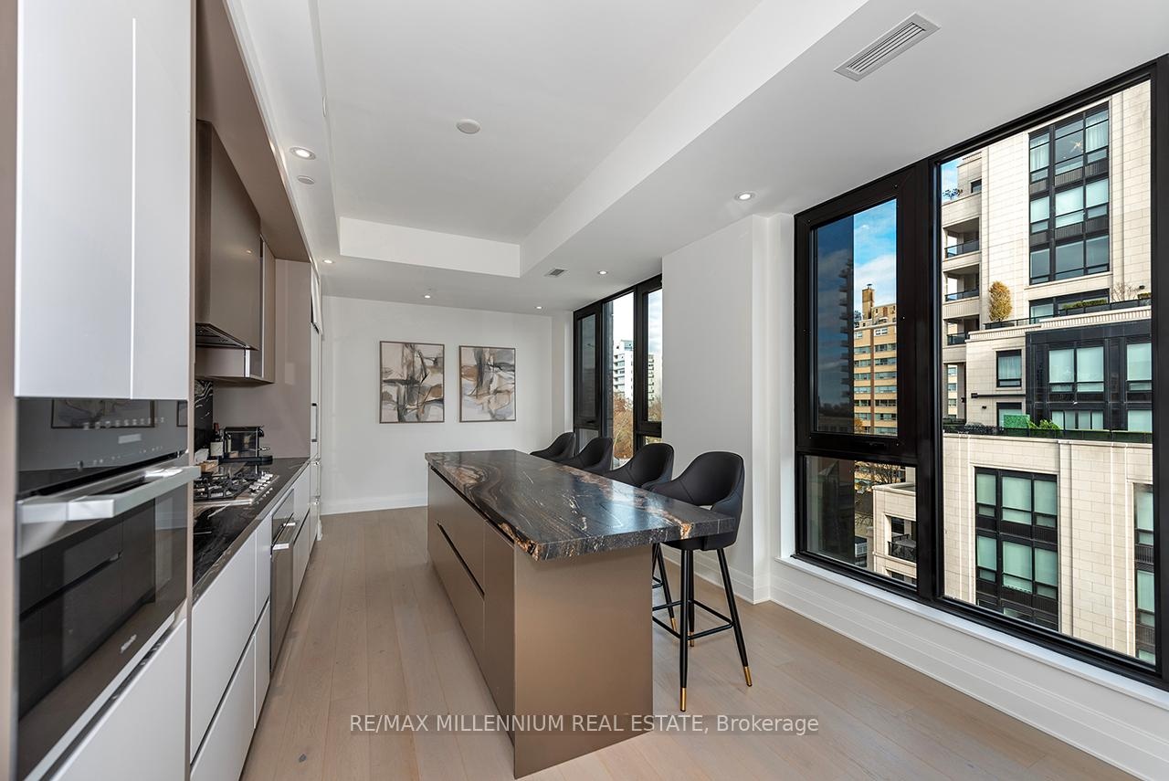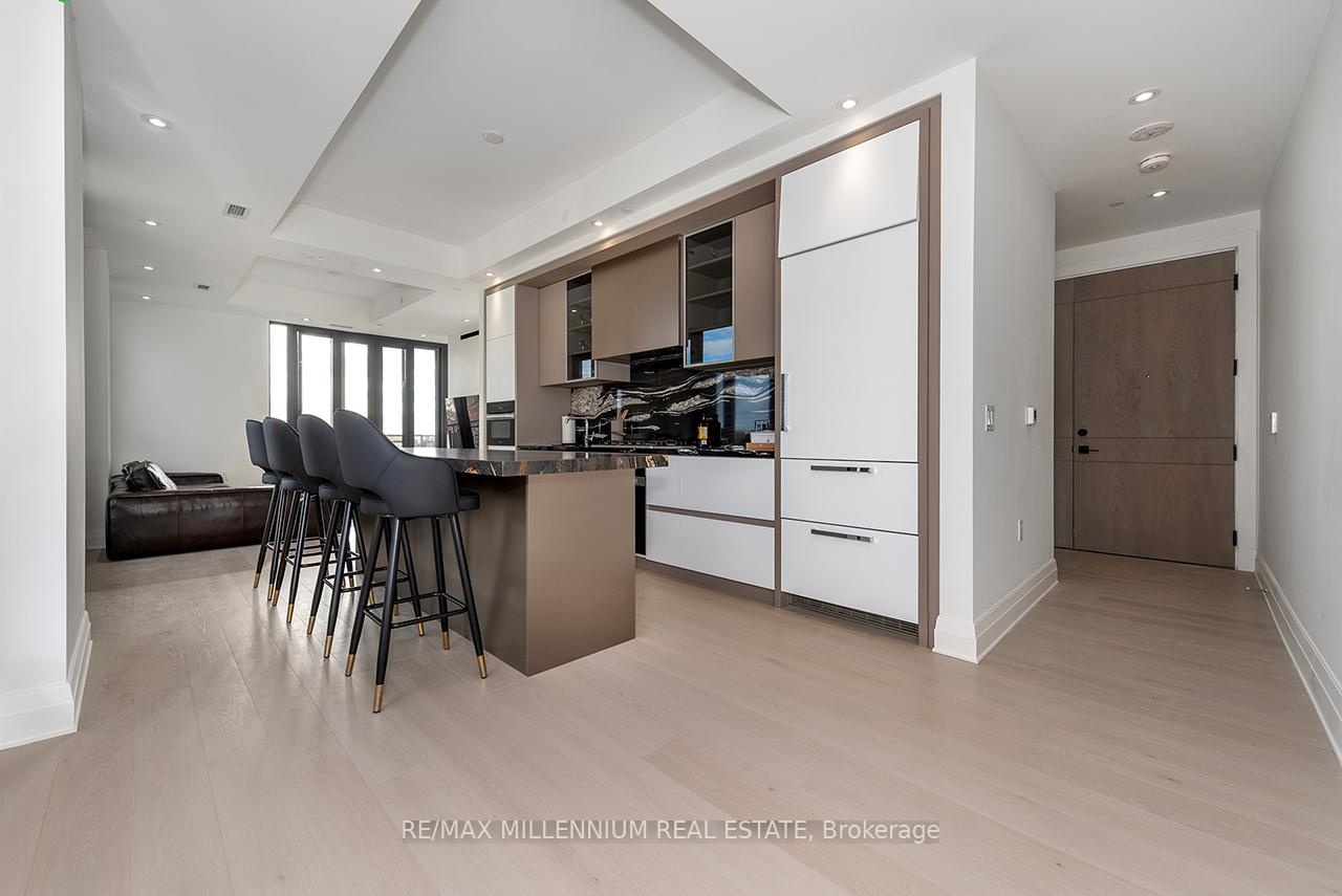 Fully furnished and ready to move in, this huge luxury one-bedroom suite with two bathrooms at Forest Hill Private Residences offers the ultimate in refined living. The expansive layout features designer finishes throughout, beginning with a welcoming foyer that leads into a sophisticated open-concept living and dining area. Floor-to-ceiling windows fill the space with natural light and open onto a large terrace with unobstructed views. The gourmet kitchen is equipped with top-of-the-line appliances, custom cabinetry, and an oversized island-ideal for both daily living and entertaining. The primary bedroom is a serene retreat, complemented by a spa-inspired ensuite.Residents enjoy five-star amenities including 24-hour concierge, valet service, porte-cochère entry, state-of-the-art fitness facilities, indoor pool with wet & dry saunas, private dining room, catering kitchen, wine storage, and beautifully landscaped garden spaces. A rare offering of luxury, convenience, and exclusivity-simply move in and enjoy.