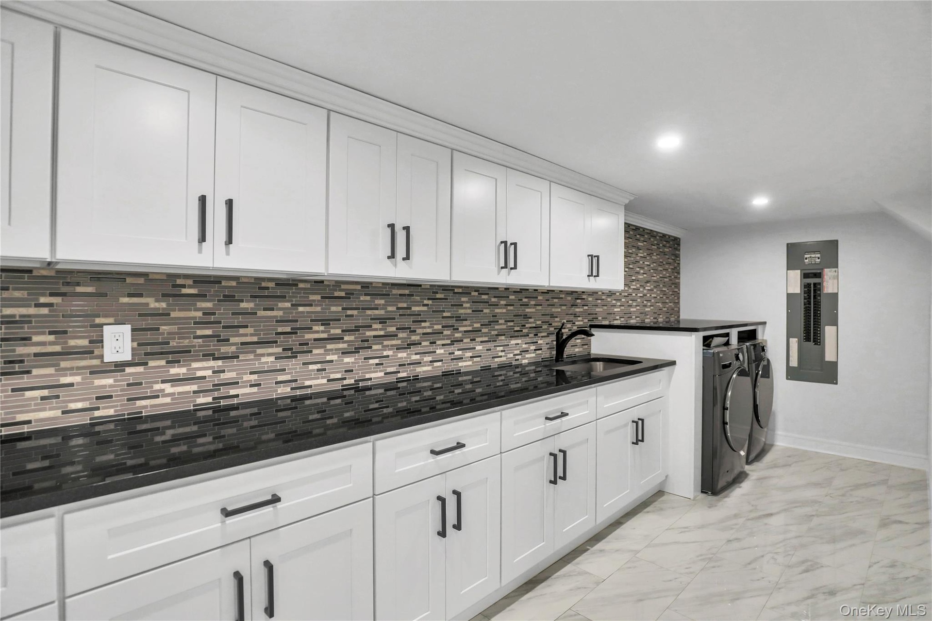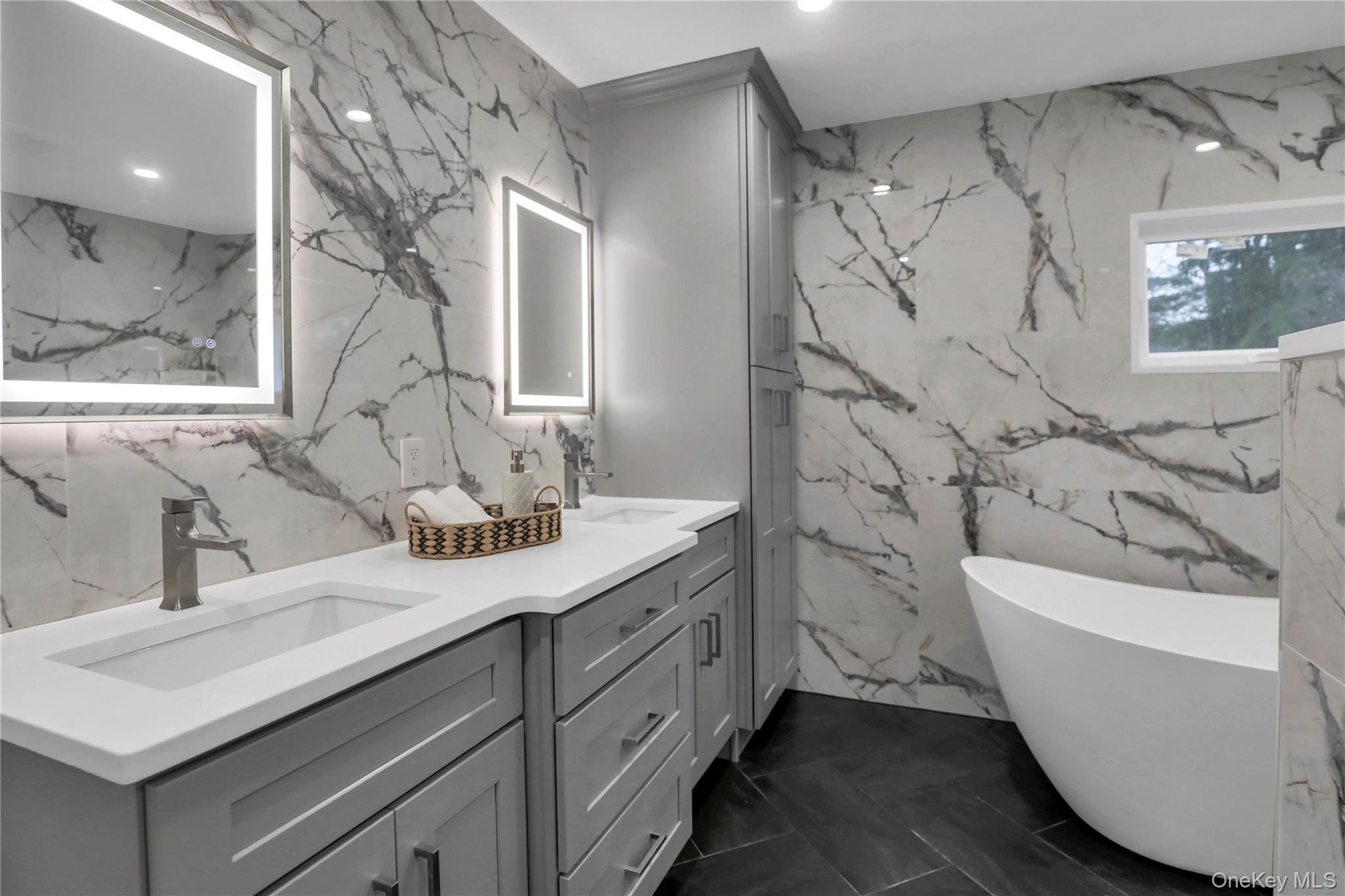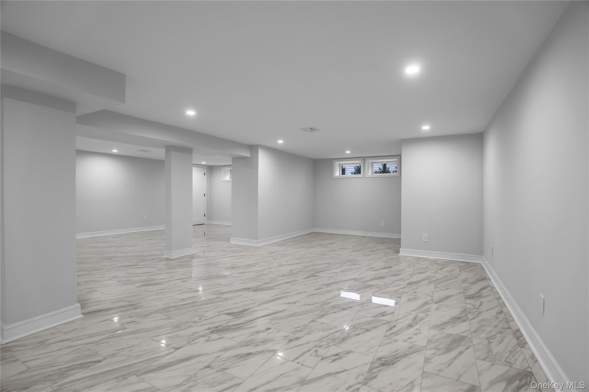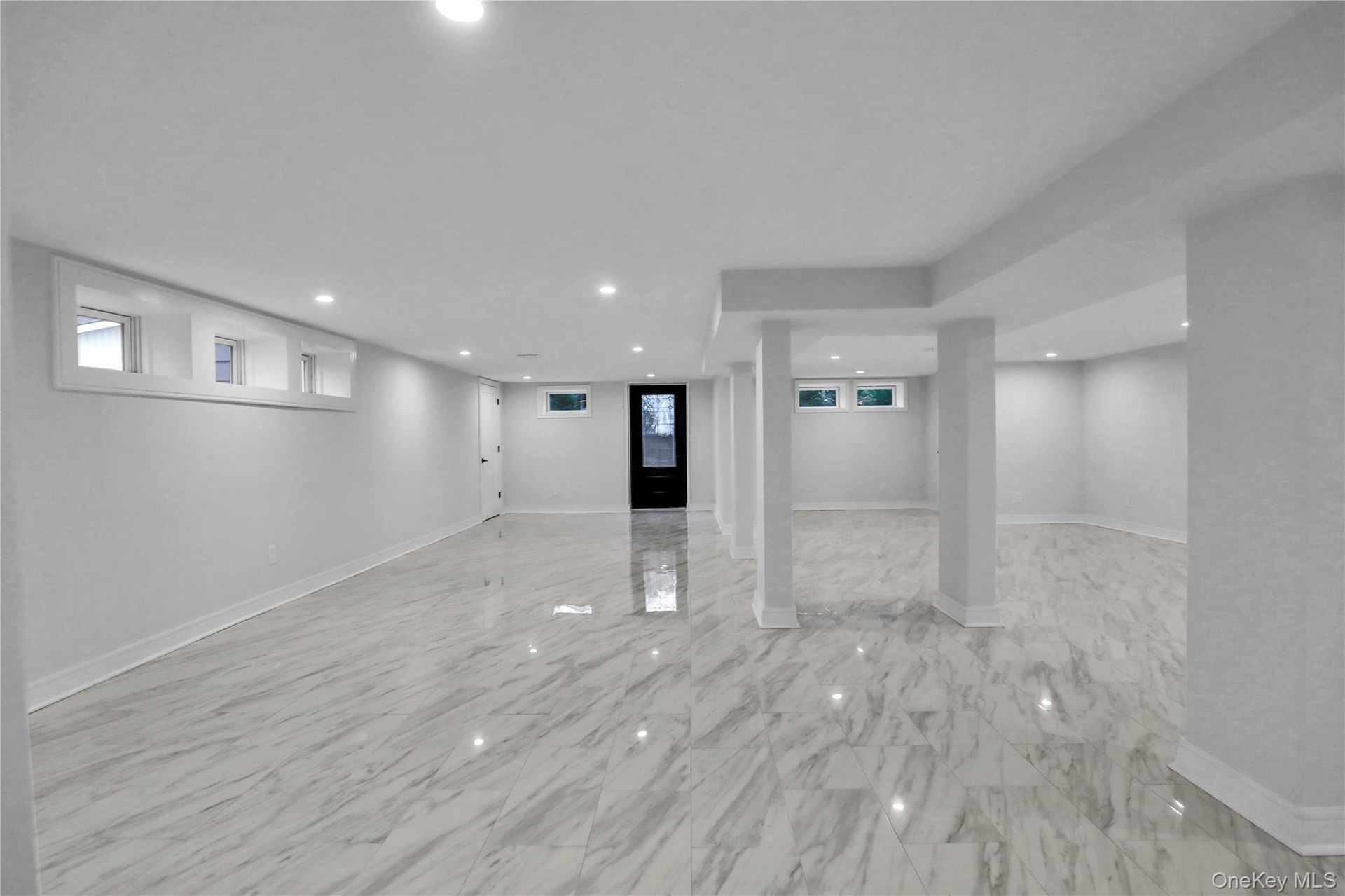 Welcome home to this expensive, completely renovated Modern Ranch, showcasing exceptional craftsmanship and premium materials throughout. This luxury residence features a bright open-concept layout with vaulted ceilings, NEW recessed LED lighting, NEW wide-plank oak hardwood floors, NEW crown moldings, NEW Anderson windows, and a stunning NEW modern fireplace in the den. The entirely NEW designer chef’s kitchen offers quartz countertops, a large island with GE Profile beverage center, stainless steel appliances, custom shaker cabinetry, subway tile backsplash, and elegant pendant lighting. The home offers three spacious bedrooms, including a large primary suite with bonus sitting area, walk-in closet, and a NEW spa-quality bath with heated floors, floor-to-ceiling marble-style tile, frameless glass shower, raindrop shower head, freestanding soaking tub, and LED mirrors. The Hallway NEW bath also features heated floors, floor-to-ceiling marble-style tile, and upscale fixtures. A fully finished walk-out lower level with NEW porcelain tile flooring, NEW recessed lighting, NEW multiple windows, and a private entrance provides exceptional flexibility for extended living, office use, or mother–daughter potential. Exterior upgrades include a NEW roof, NEW siding, a NEW driveway, NEW multiple paver patios, tiered steps, and a NEW in-ground pool liner and heater with NEW patio surround and NEW aluminum fencing. A detached 2-car garage and professionally landscaped grounds with a Hunter irrigation system complete the exterior appeal. Major system upgrades include a NEW Granby oil tank, Beckett burner, updated boiler, NEW HVAC air handler, PEX plumbing, updated 200-amp electric, and Lutron smart dimmers. Natural Gas on the street. A true luxury, fully renovated home is waiting for you to move in and enjoy.