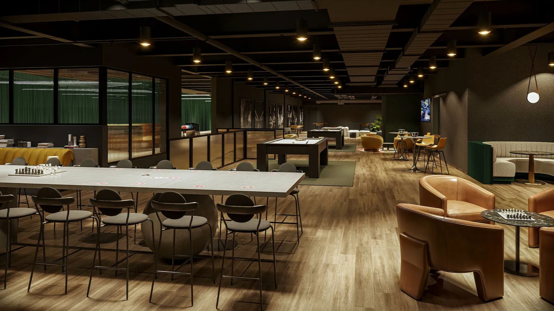 Multiple coworking areas and entertainment spaces