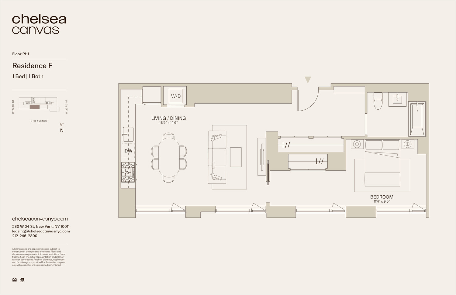 Experience the exceptional with carefully crafted amenities, including a club lounge with coworking spaces, a garden terrace, an expansive rooftop, and a fully-equipped fitness center. Located in the heart of Chelsea, Manhattan's most sought-after neighborhood, Chelsea Canvas offers endless discovery. Explore galleries, museums, and dining destinations. Wander the West Side and beyond with easy access to the A,C,E and 1,2,3 subway stations, The High Line, and Moynihan Train Hall.