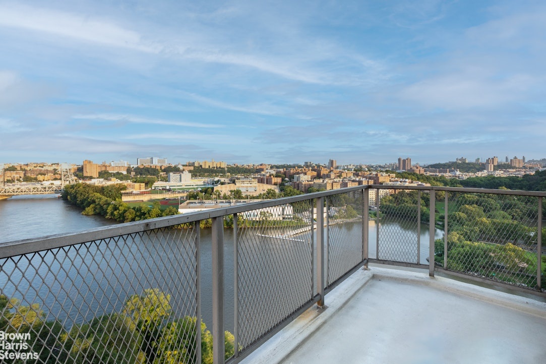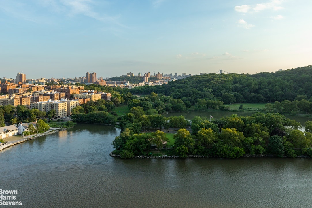 Immerse yourself in spectacular river views from every window of this south- and east-facing corner two-bedroom, two-bath apartment, complete with a private terrace. Located in the highly distinctive Blue Building at 2400 Johnson Avenue, this residence features an L-shaped living and dining area where expansive windows flood the space with natural light. Enjoy breathtaking views of Inwood Park, the Hudson River, the East River, and the Palisades. Sip a glass of wine as you soak in the stunning sunsets and the captivating NYC skyline as evening falls.