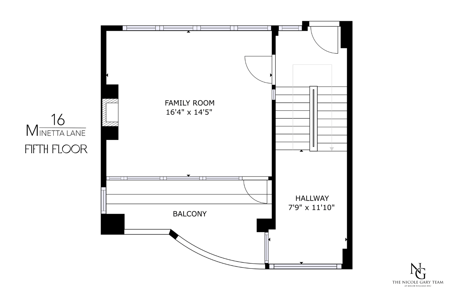 The Primary Suite (Fifth Level) is a true retreat, featuring a wood-burning fireplace, a Juliet balcony with stunning Southern & Northern views including the Empire State building & Freedom tower, projector screen and an en-suite bath with an oversized glass shower.