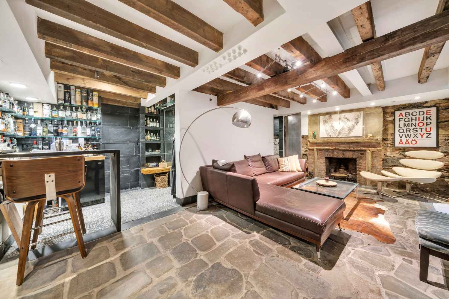 The residence is the result of a deeply philosophical, nature-inspired vision. Conceived by architect Adam Kushner, the home’s narrative is inspired by the subterranean Minetta Brook that flows beneath the neighborhood. This connection to the earth is physically manifested in the use of sustainable elements, including reclaimed wood and integrated solar panels. The striking facade features a prominent Gothic arch and a modern steel-and-ivy exterior, all while respectfully preserving the building's original structure..