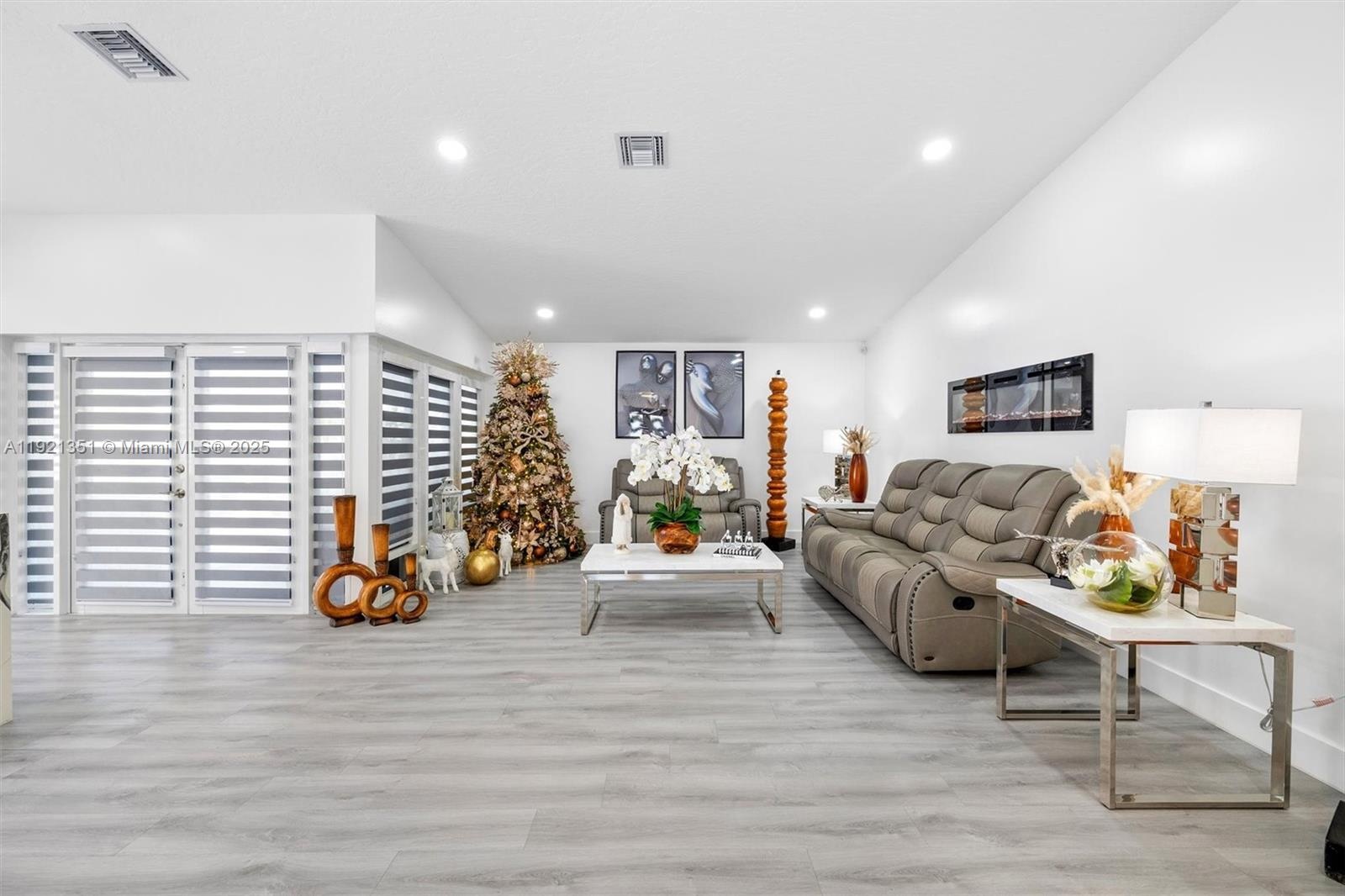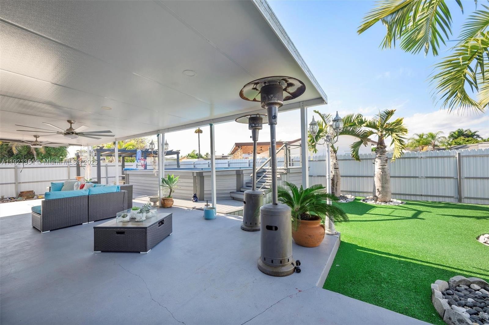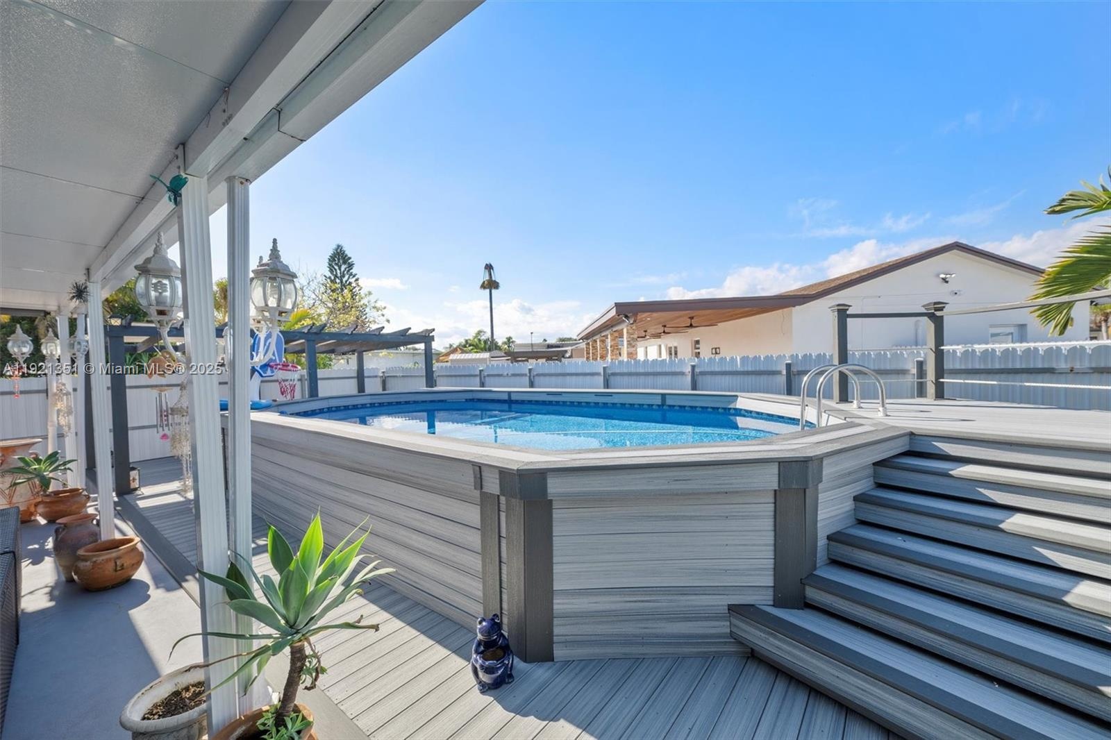 Beautifully updated 4-bedroom, 3-bath home with a den and separate laundry room. Enjoy peace of mind with a 2018 shingle roof. Full remodel completed in 2022, including electrical panel, plumbing, HVAC, water heater, impact windows/doors, and vinyl flooring. Modern kitchen with quartz countertops and stylish remodeled bathrooms. All bedrooms feature custom built-in closets. Outdoor living at its best with a fully equipped kitchen (gas cooktop + full-size refrigerator), saltwater above-ground pool with brand-new deck, hedges for privacy, and a professionally installed whole-house generator. Oversized slab-and-artificial grass driveway recently upgraded that fits more than 5 cars at the same time. Solar panels are owned and financed through GoodLeap (not PACE); buyer may assume with lender approval. IN-LAW SUITE with private entrance. Minutes from Turnpike (exit 9), top schools, shopping, restaurants, and more.