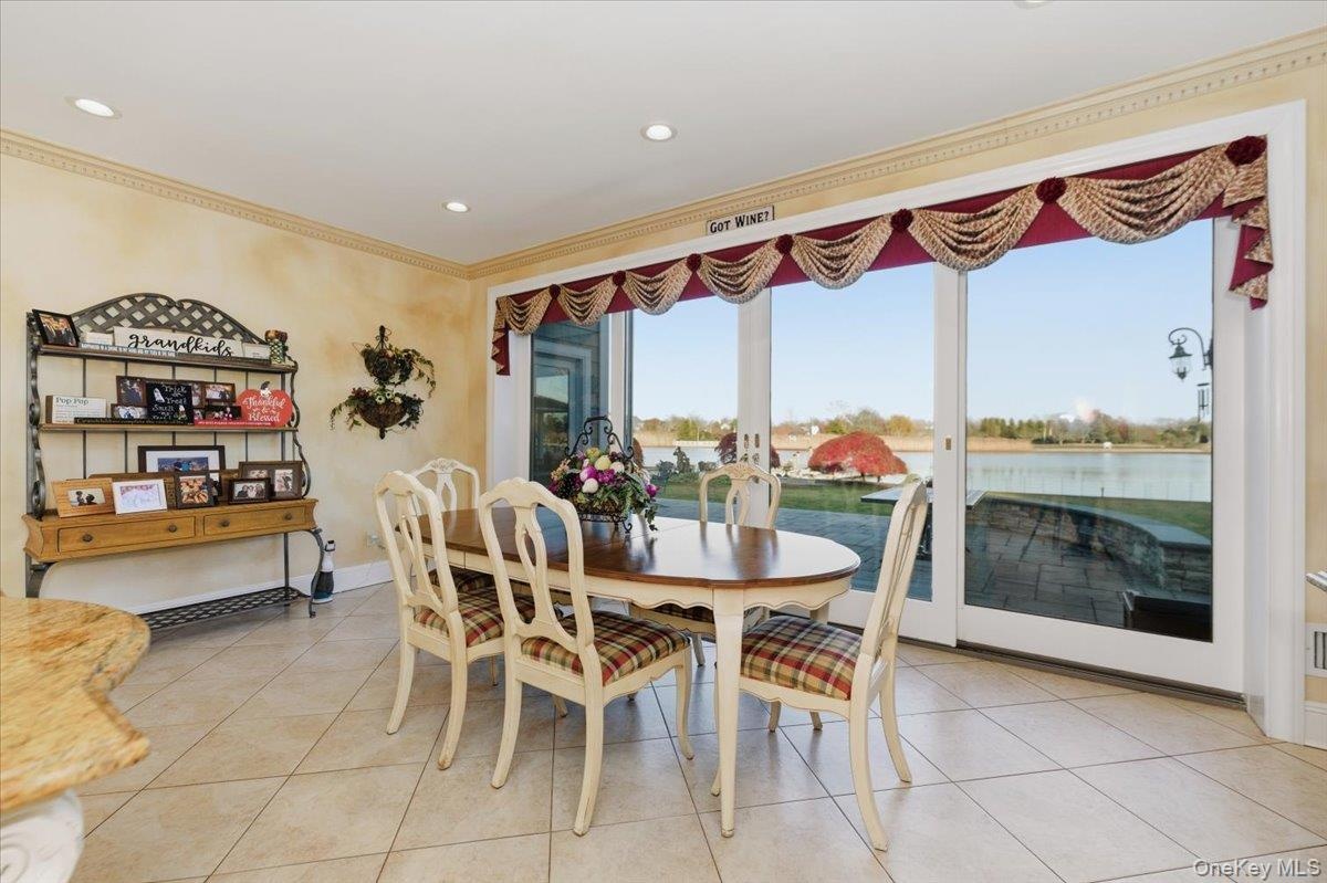 At the heart of the residence is a beautifully appointed chef’s kitchen complete with a center island seating and dining area plus a well-equipped butler’s pantry—with prep sink and additional wine refrigerator—opens to the formal dining room, where a gas fireplace adds warmth and charm. The inviting living room offers classic oak floors and a wood-burning fireplace, perfect for cozy evenings at home. Step outside to your private waterfront retreat, x zone location, offering 140 feet of sandy beach, a 22' x 40' boat slip, a pier with floating dock, and stunning views over the Carll’s River.