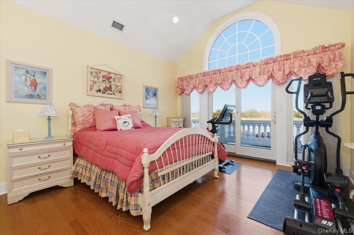 A grand two-story foyer with an elegant bridle staircase and exquisite raised-panel woodwork sets the tone for the home’s refined design. The entry features striking ceramic tile with an imported mosaic medallion, transitioning into oak floors with a herringbone inset and walnut border for added sophistication. The home offers multiple bedrooms, several boasting private balconies with serene views of the river.