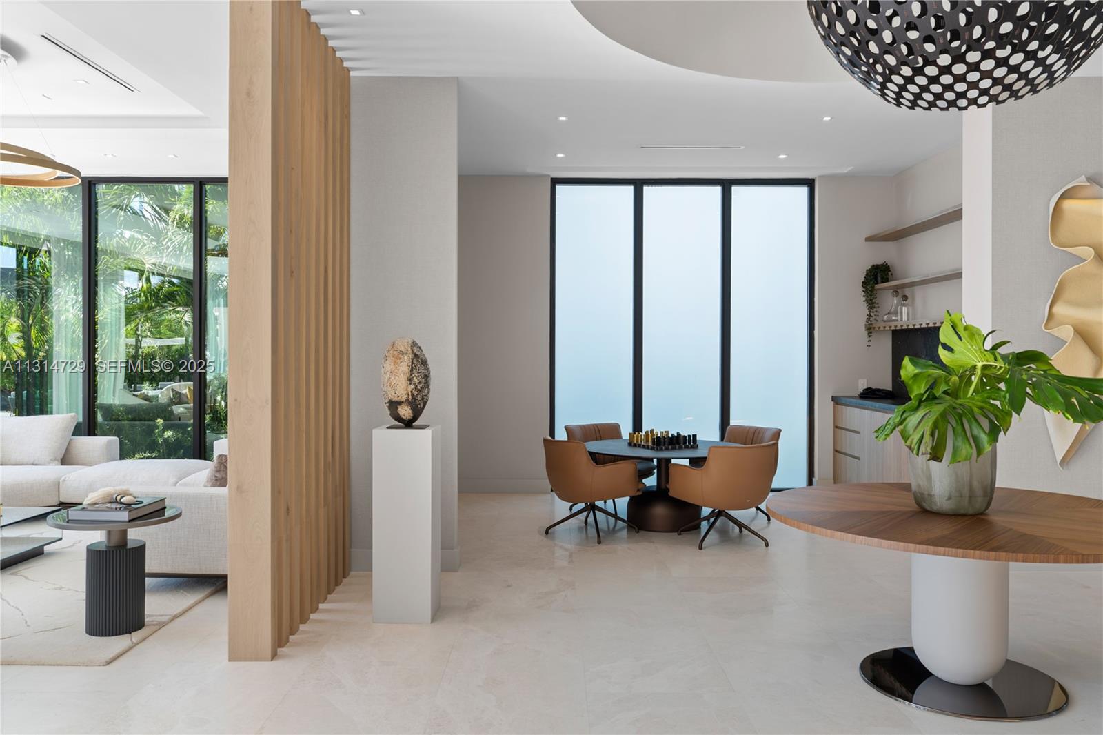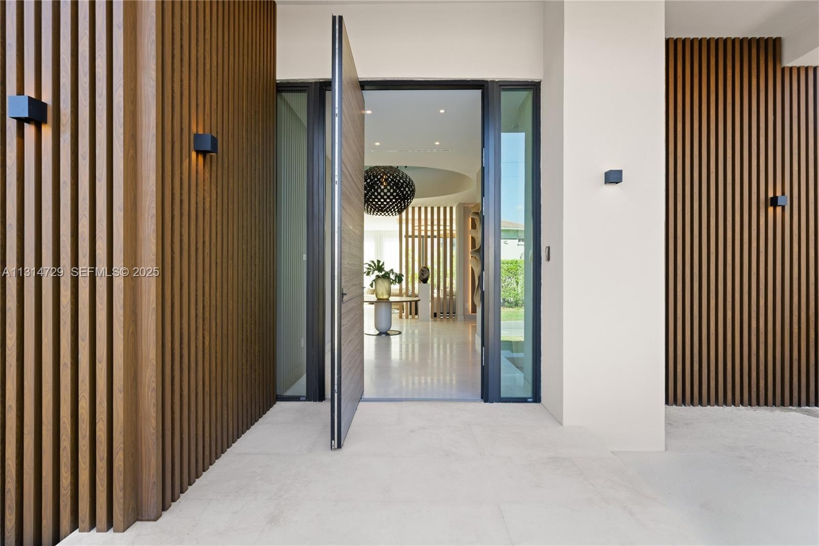 NEW BUILD ORGANIC MODERN WATERFRONT ESTATE IN THE HEART OF EASTERN SHORES! Modern Tropical Oasis in Light Natural Wood Encompassing 5 Bedrooms + 5 Baths + Powder Room in 5,796 Interior SF on 8,800 SF LOT with 80 FT of Waterfrontage. Enter into Open Floorplan with Calacatta Marble on Ground Floor. Enjoy Expansive Entertaining Spaces + Wine Cellar & Direct Water Views. Organic Wall Textures Throughout. Staircase Leads to Spacious Primary Suite Overlooking the Water. Custom Italian Kitchen Accented with Organic Light Wood with Oversized Island Countertop. Primary Bath with Hansgrohe & Duravit Fixtures + Rainshower. Deck Perfect for Entertaining with Heated Pool & Summer Kitchen. Minutes Away from Sunny Isles Beach, Aventura Mall, Dining & Oleta River State Park. Delivers Q2 of 2025.