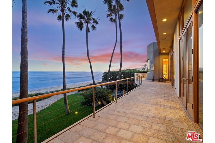 Experience resort-style living on one of Malibu's most iconic stretches of sand. This custom Richard Turner AIA-designed estate sits on approximately 90+ feet of prime Broad Beach frontage, offering exceptional privacy, refined craftsmanship, and effortless indoor-outdoor living. Beyond oversized wooden entry doors, a tranquil koi pond and immaculate landscaping welcome you into a sprawling central courtyard anchored by towering trees, lush greenery, and a stunning pool and spa that create the feel of a secluded retreat. A covered breezeway with a relaxed seating area leads to the beachfront lawn reminiscent of a luxury Hawaiian resort with a private sandy beach, grassy area, and a teak dining setup accented by palm trees. Inside, the home is thoughtfully designed with radiant floor heating, extensive custom woodwork, oversized windows, and dramatic ceiling heights throughout. The main living room features a double-sided fireplace and multiple seating areas flowing into a sun-filled dining space and a well-appointed chef's kitchen with a center island, Wolf range, and abundant storage including a large walk-in pantry. The upper-level west wing is dedicated to an oceanfront primary suite showcasing sweeping whitewater views through floor-to-ceiling windows, a fireplace, private deck access, and dual spa-style bathrooms - each with its own walk-in closet. An adjacent en-suite bedroom currently functions as an office and workout room. A courtyard-facing breezeway leads to the east wing, which includes two ocean-view en-suite bedrooms with a separate stairway for private access. On the lower level, this wing also features a secondary living area/media room with a wet bar and kitchenette. A detached guest suite situated across the courtyard provides a peaceful standalone retreat with a kitchenette and views of the pool and gardens. Additional amenities include an elevator, wine cellar closet, laundry room, and a 4-car garage. A rare opportunity to lease a timeless, architectural Broad Beach estate with luxurious amenities, privacy, and commanding ocean frontage - an unmatched setting to enjoy Malibu's coastal lifestyle.