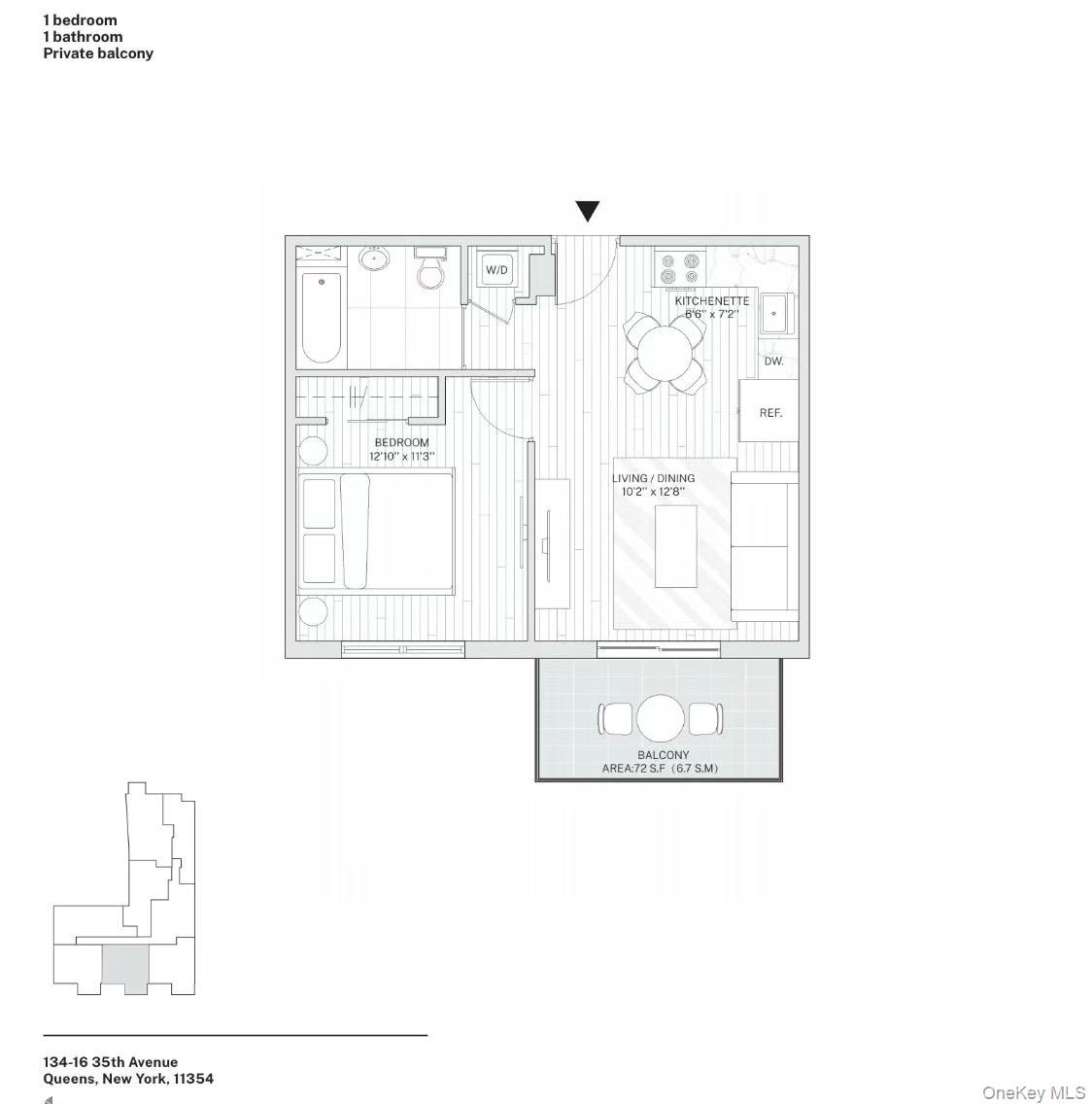 New development in the center of Flushing, Lr, Br, Kit and Bath, Hardwood floors throughout, customized cabinet, oversized windows, high end appliances, in unit washer and dryer, central AC. The building includes doorman, elevators, a gym, and a parking garage with valet services.