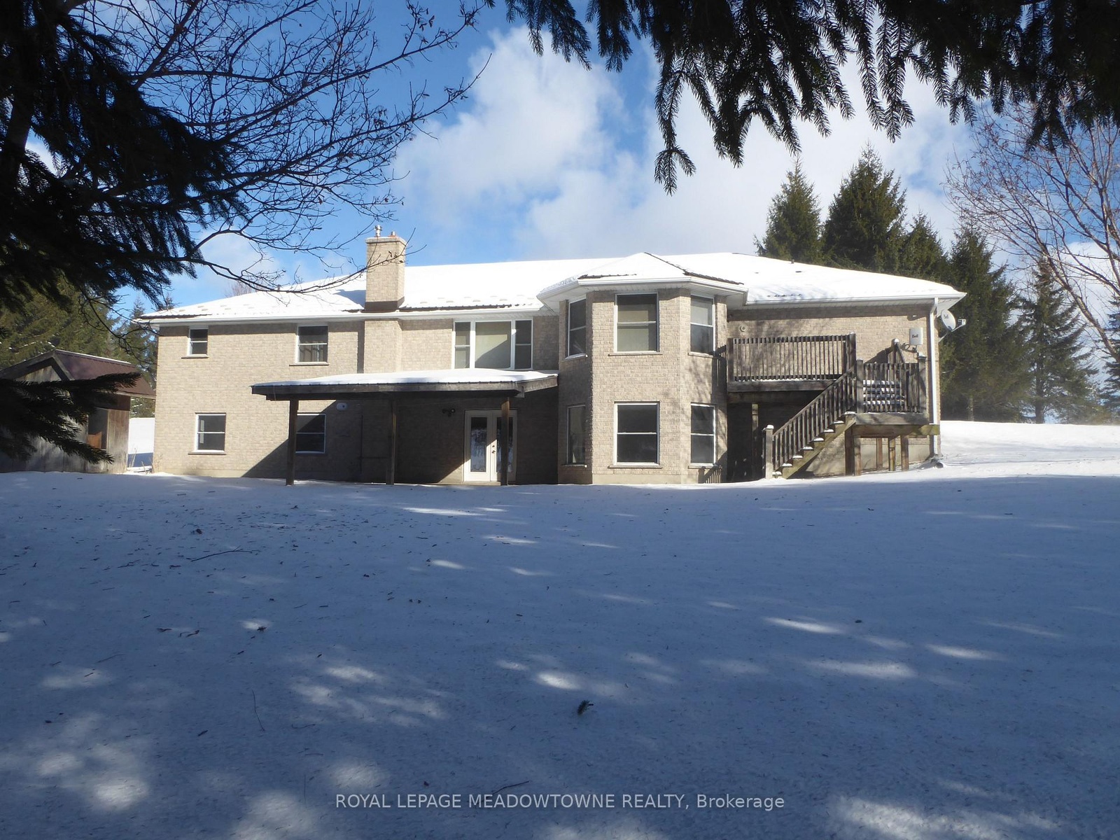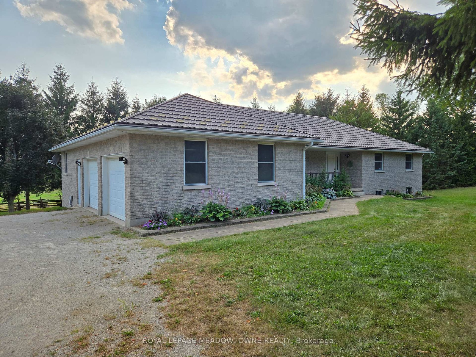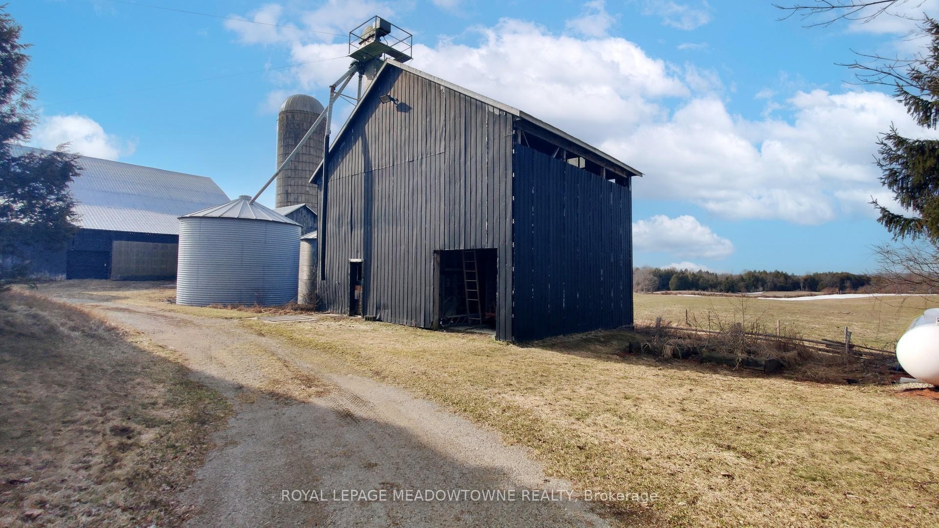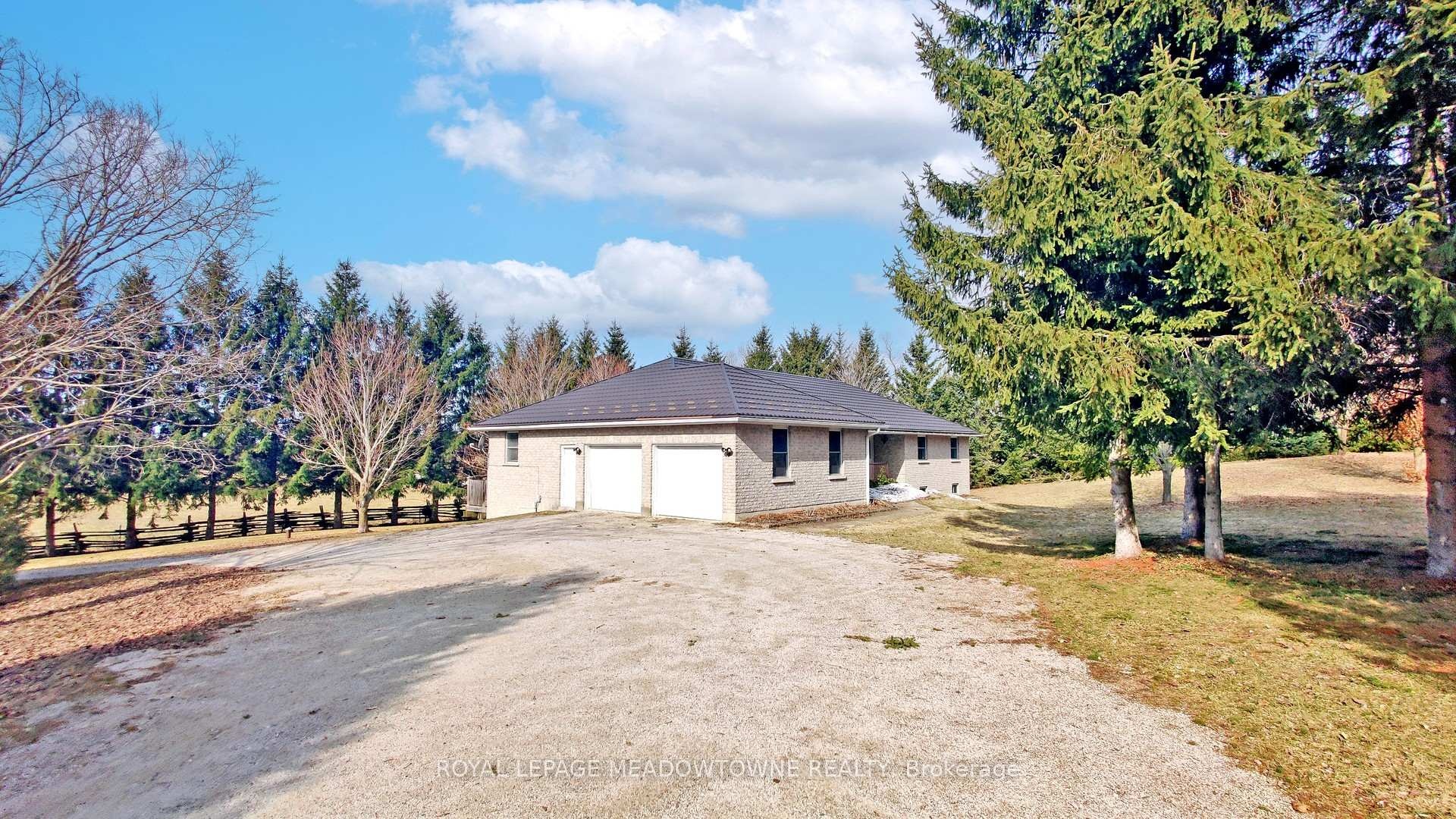 After five generations, this 98.89-acre farm is ready for its next family. Enjoy peaceful country living on a paved road with school bus service, just minutes to town and GO Transit. A rare opportunity to blend lifestyle, income, and farming. The 2001 custom-built brick and stone bungalow set well back and private from the road, provides 4,600 sq ft of living space with a walk-out lower level, ideally suited for a family, multi-generational use, a home-based business or renting. Main floor features a bright eat-in kitchen with centre island and walk-out to deck, formal dining room with pocket doors, open-concept great room, and spacious primary bedroom with ensuite and walk-in closet. Plus a convenient access to the attached 2 car garage and main floor laundry. The lower level includes a 2nd kitchen, 3-pc bath, 2nd laundry, private garage entry and an open concept living area with walk-out to a covered patio area which is perfect for in-law suite or income potential. Many updates include furnace and A/C (2024) and metal roof (2014). Plus 40 acres in workable land for cash crops, 25+ acres in grass for hay, plus a mature mixed forest with maple trees for syrup and private trails for walking, riding and ATV use. Extensive outbuildings include 48' x 288' former poultry broiler barn with heat and concrete flooring, 3,900+ sq ft majestic bank barn with stables for small animals and clean loft, and 40' x 80' drive shed with a concrete floor heated workshop and storage, silos and feed bins for farming, storage and income uses. Two entrances off the paved road give you flexibility for farm equipment access to the outbuildings from the house. Possible lot severance might be available (buyer to verify). The current OFA tax credits may not apply and the land is subject to HST. Two drilled wells serve the farm and house separately. Located in the Town of Erin with an Acton address, close to Acton shops and GO station, Georgetown, Guelph, Milton, and Rockwood.