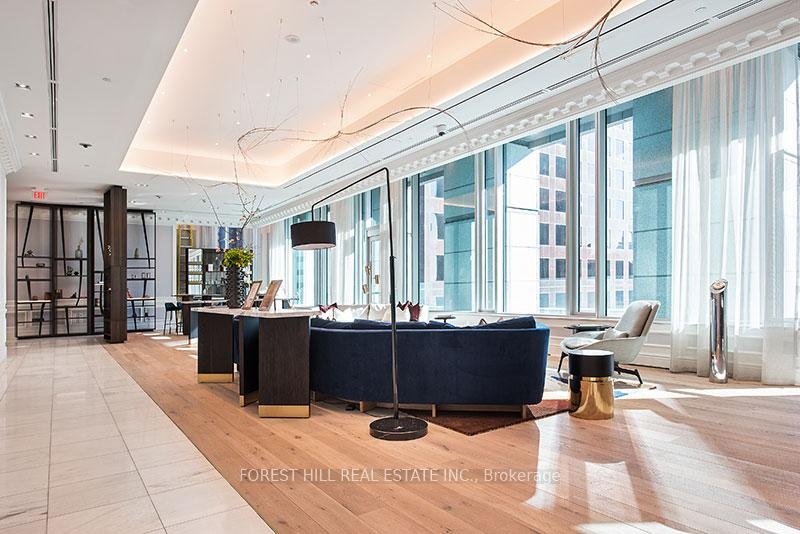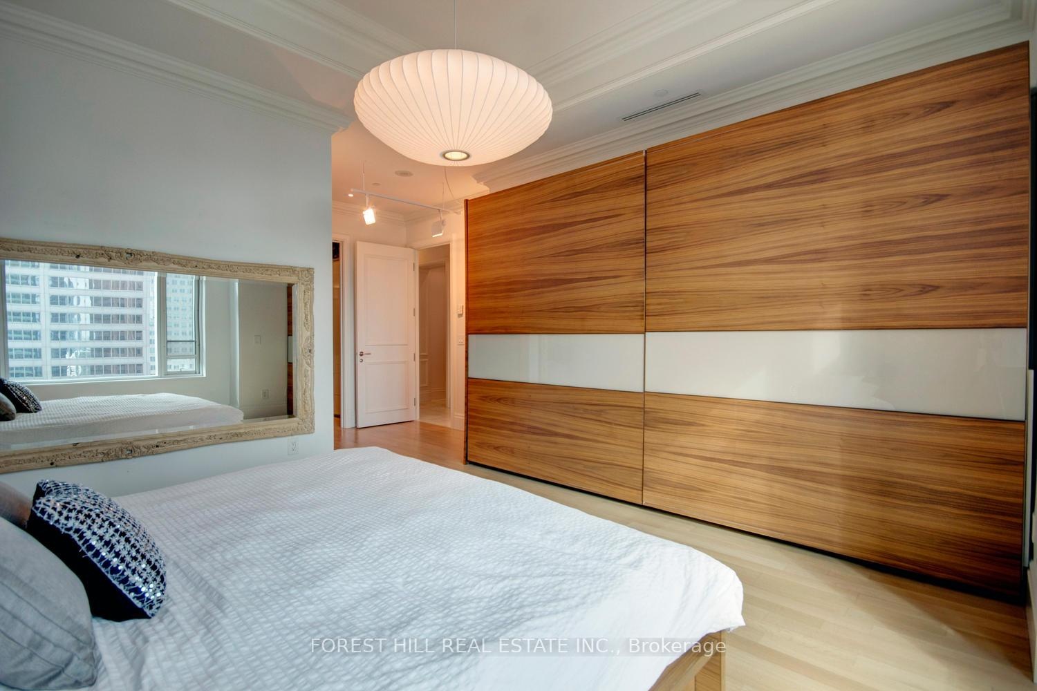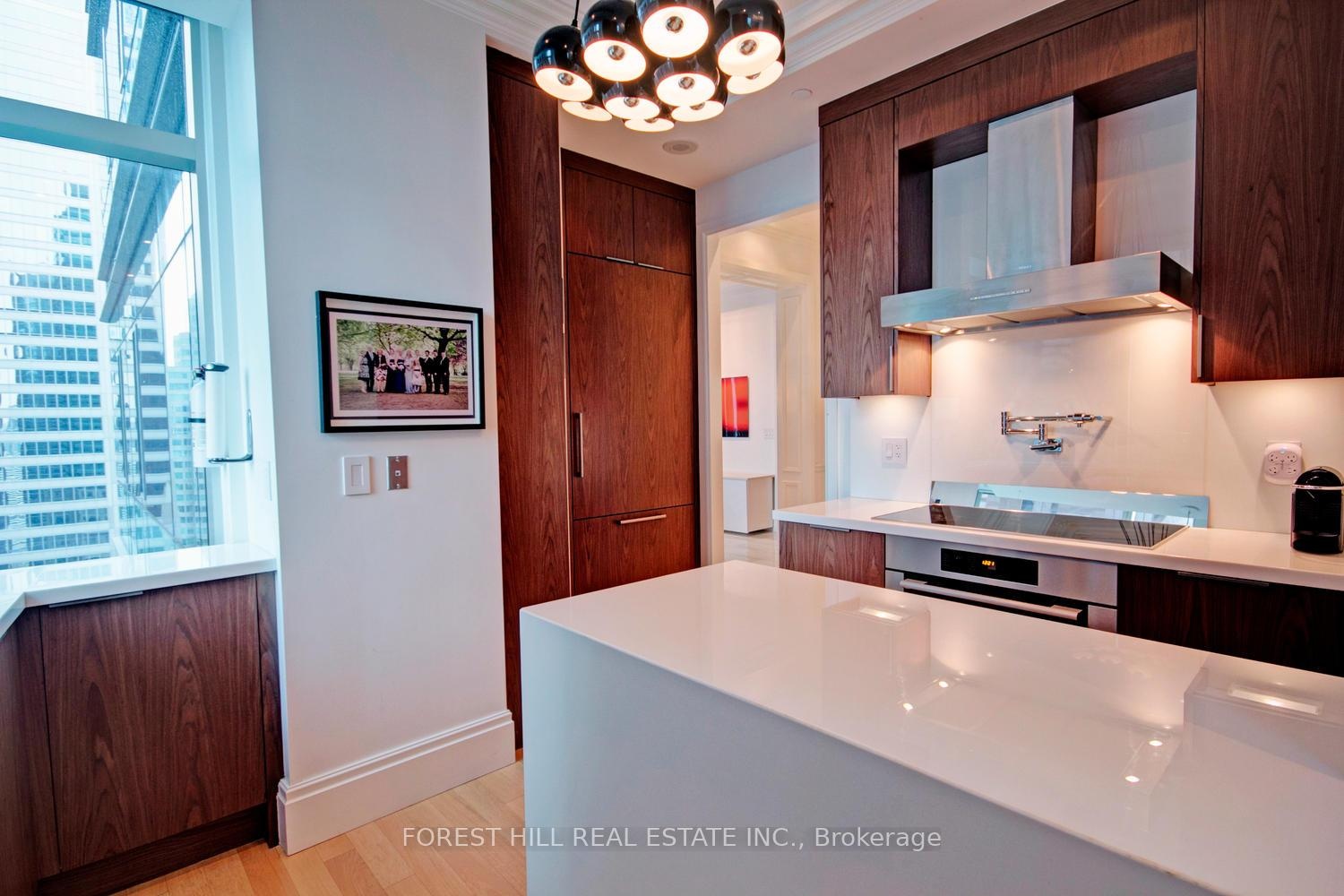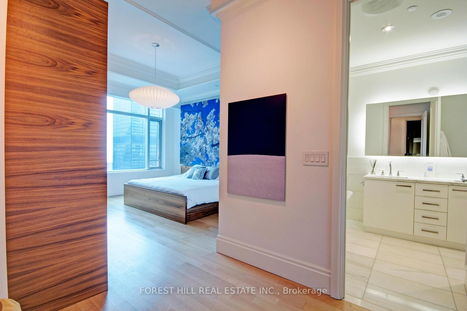 Fully Furnished Executive Condo At The St Regis Residences! Featured in Canadian Interiors Magazine with a One of a Kind Layout & Custom Floor Plan !. This Luxurious 2 Beds + 2 Baths Unit Also Boasts A Private Elevator Directly Into Your Vestibule. Thoughtfully Designed With Modern Finishes And Great Attention to Detail, Quality And Craftmanship! Located In the Heart Of The Financial District, PATH, Restaurants, Shopping and Much More. Some Key Features Include: 10' Hight Ceilings, Wireless Black Out Shades w Remote Control, Large Walk-In Closet, Re-designed Kitchen, Hardwood & Marble Flooring, Operating Windows That Overlook The City and CN Tower, WorkStation/Bar, Meile Appliances, Built in Cabinets, Walk-In Closet, This Condo Is One Of A Kind "04" Unit, Must See!!