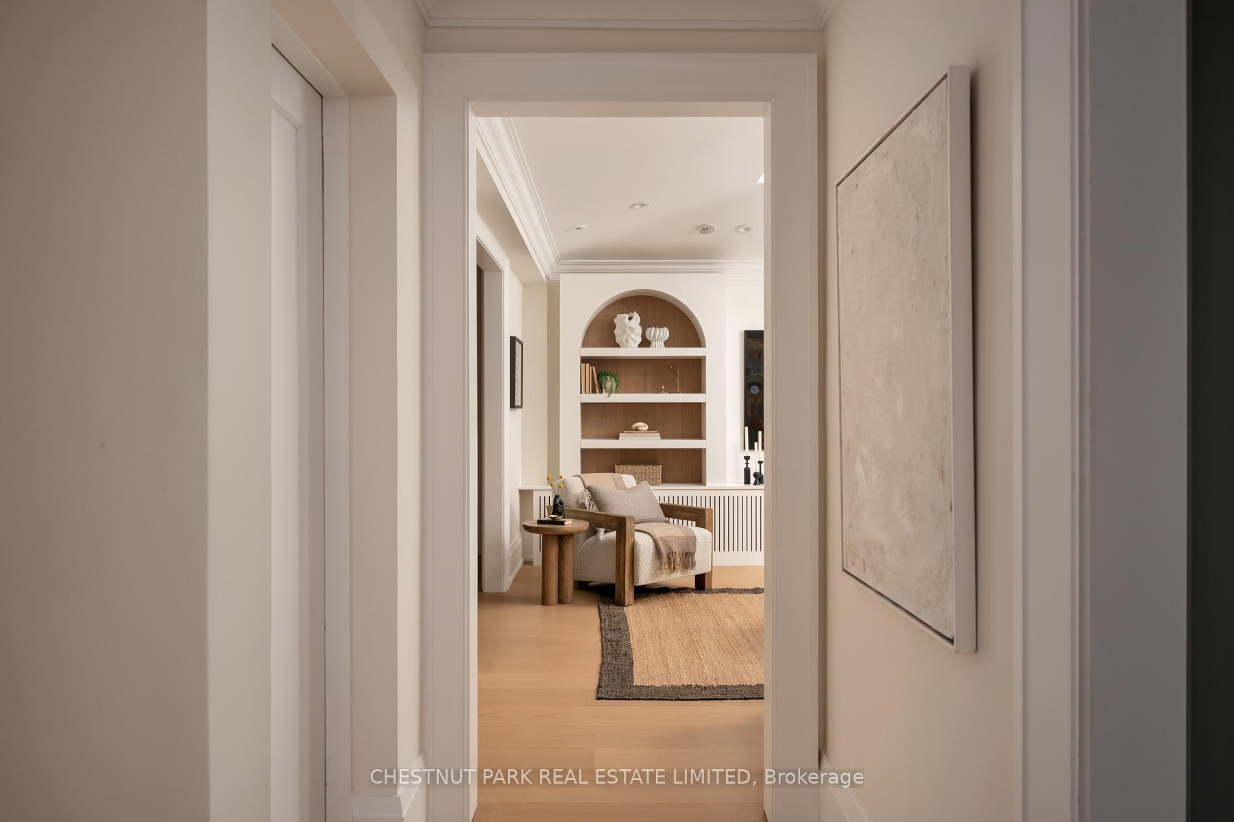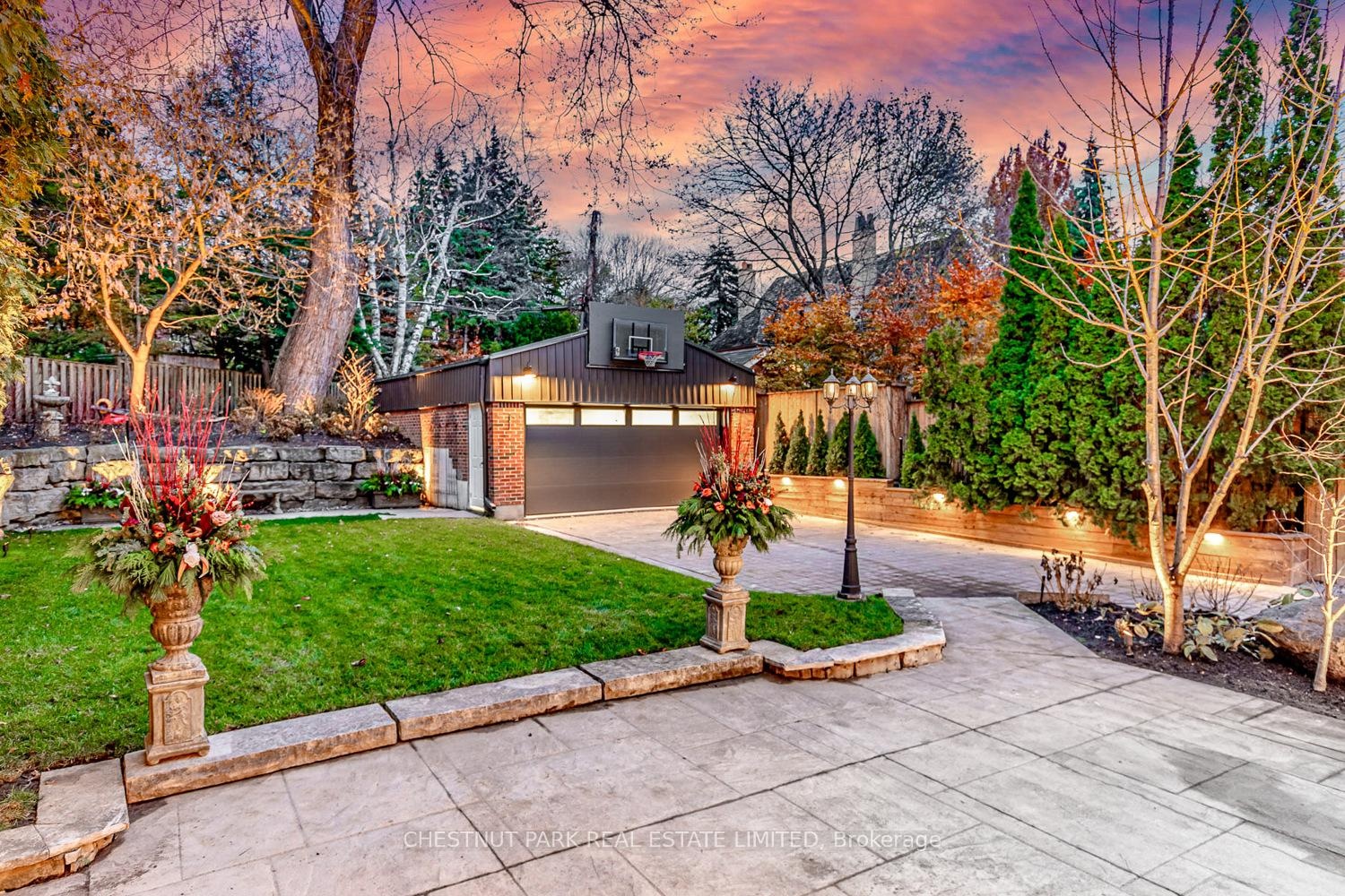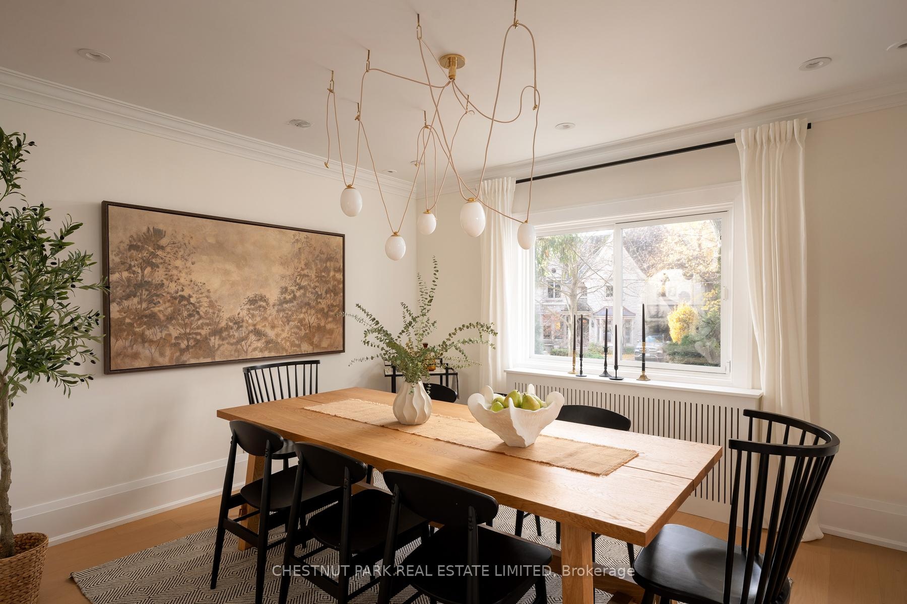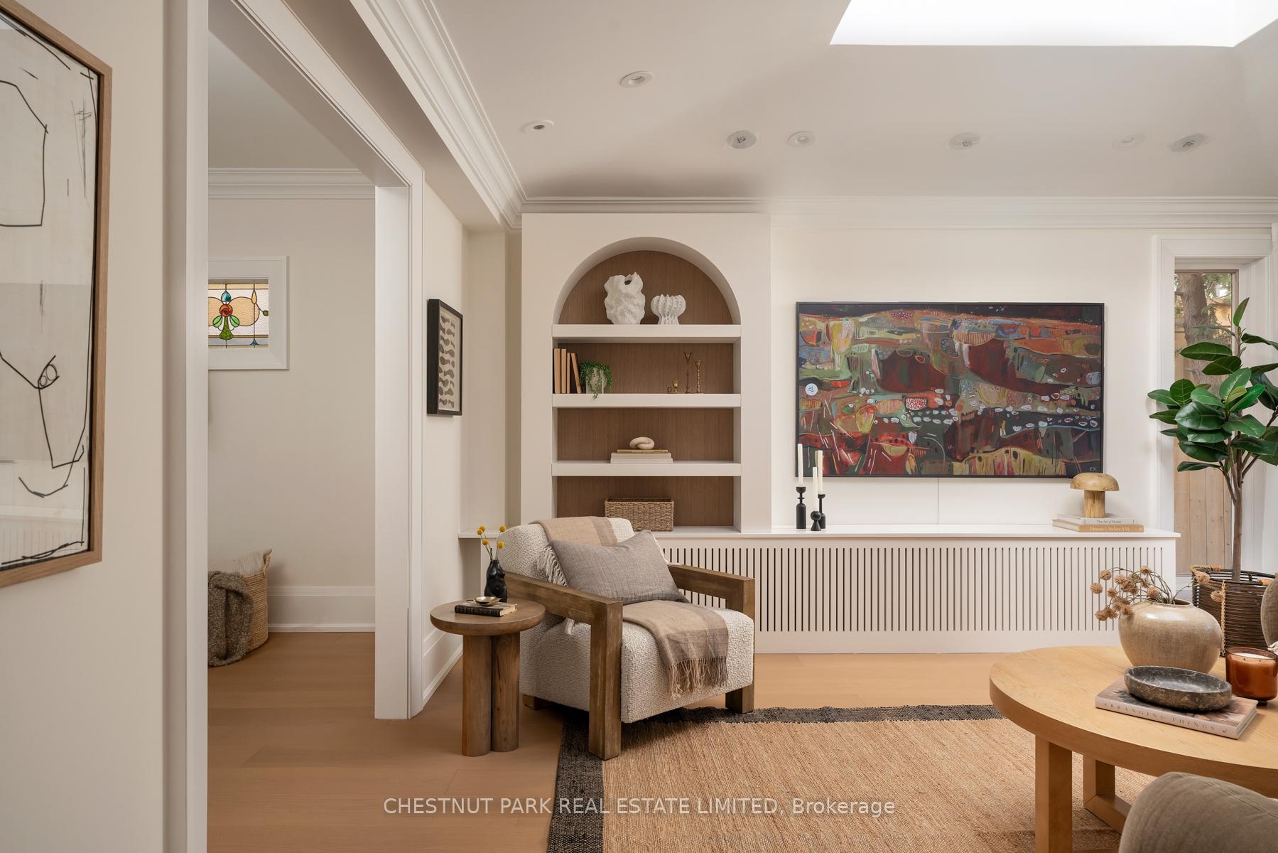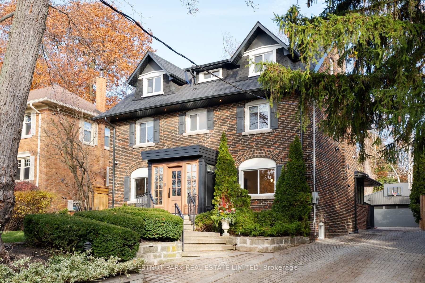 On the most coveted stretch of Weybourne Crescent, stands this Georgian home that feels lifted straight from the pages of Architectural Digest. Its presence is unmistakable: a manicured front garden frames the warm brick façade, enriched by symmetry, a detailed portico, a solid wood centre-hall door with glass inlays, and charming dormers that give the home its elegant, inviting personality. Inside, the story unfolds with a foyer finished in heated natural stone, a panelled oak-wood closet, and a skylight that fills the space with natural light. To the right, the formal dining room glows beneath a designer chandelier and flows seamlessly into the sun-filled kitchen with brand new panelled Fridge/Freezer, Dishwasher and built in oven, where refined finishes and a window-wrapped breakfast nook overlook the private backyard. Across the centre hall, the living room offers timeless charm with a gas fireplace, opening into a designer family room featuring a custom media wall, arched built-in, a dramatic skylight, and floor-to-ceiling windows framing the backyard oasis. Engineered white oak floors, pot lights, and integrated speakers elevate the entire main level. The second floor hosts a serene primary suite with a 5PC ensuite and walk-in closet, along with 2 additional bedrooms and a laundry closet. The third floor has two bright bedrooms with built-ins, adding rare architectural character. The lower level extends the home with two versatile rooms, a modern bath, a large laundry room, and a spotless utility space. Outdoor living shines with landscape lighting, smart irrigation, outdoor speakers, and rare parking for up to 9 cars, including a 2-car detached garage behind a remote-controlled gate. Steps to parks, the Lawrence Park Tennis Club, and close to Granite Club & Rosedale Golf Club, an easy walk to Yonge Street, Subway Station, and top schools, this home offers a lifestyle of charm, character, and modern family luxury on one of Toronto's most admired streets.