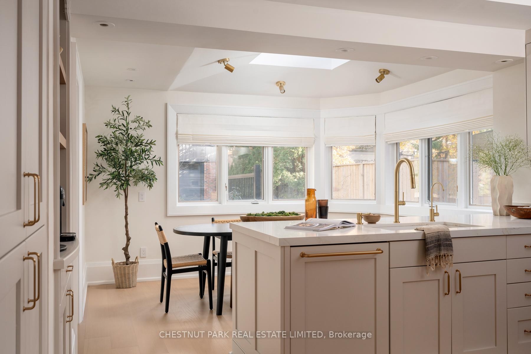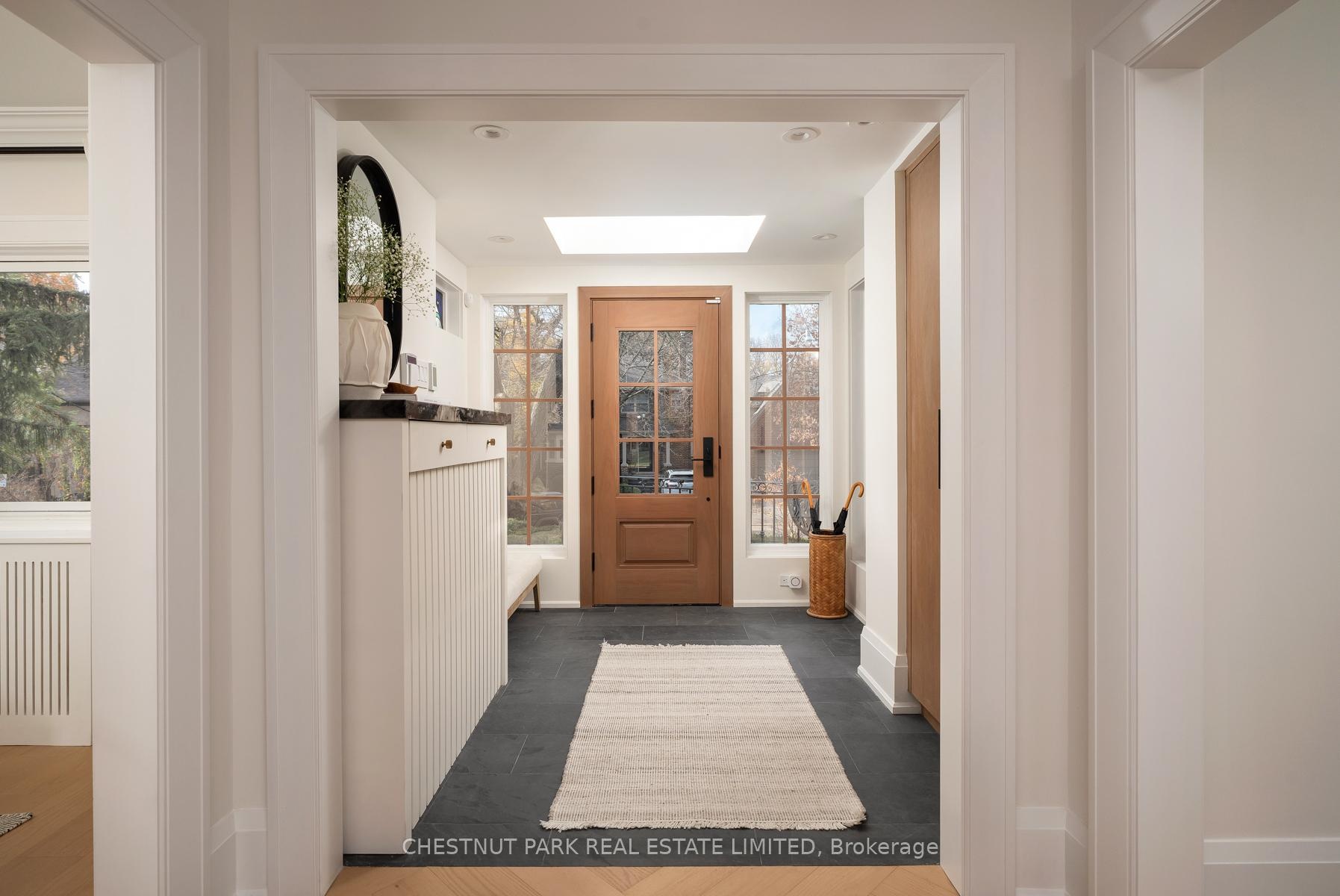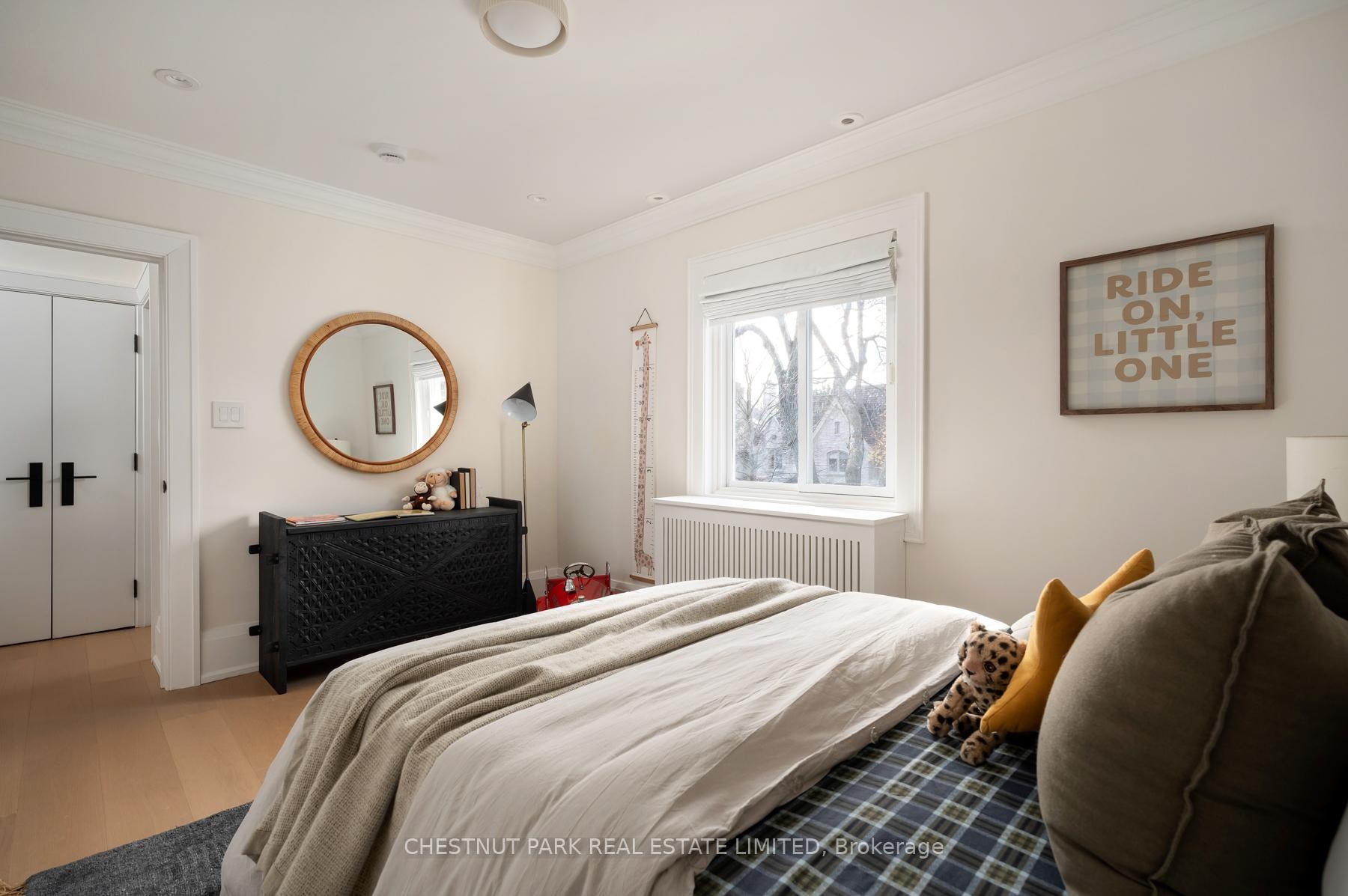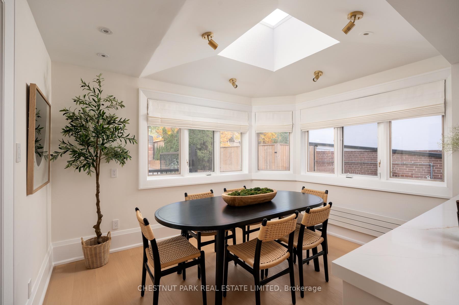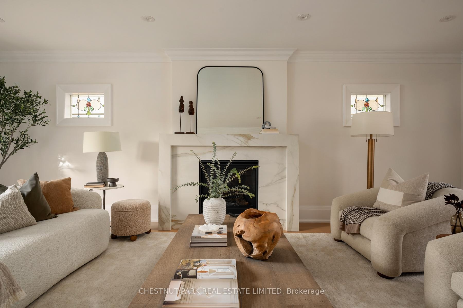 On the most coveted stretch of Weybourne Crescent, stands this Georgian home that feels lifted straight from the pages of Architectural Digest. Its presence is unmistakable: a manicured front garden frames the warm brick façade, enriched by symmetry, a detailed portico, a solid wood centre-hall door with glass inlays, and charming dormers that give the home its elegant, inviting personality. Inside, the story unfolds with a foyer finished in heated natural stone, a panelled oak-wood closet, and a skylight that fills the space with natural light. To the right, the formal dining room glows beneath a designer chandelier and flows seamlessly into the sun-filled kitchen with brand new panelled Fridge/Freezer, Dishwasher and built in oven, where refined finishes and a window-wrapped breakfast nook overlook the private backyard. Across the centre hall, the living room offers timeless charm with a gas fireplace, opening into a designer family room featuring a custom media wall, arched built-in, a dramatic skylight, and floor-to-ceiling windows framing the backyard oasis. Engineered white oak floors, pot lights, and integrated speakers elevate the entire main level. The second floor hosts a serene primary suite with a 5PC ensuite and walk-in closet, along with 2 additional bedrooms and a laundry closet. The third floor has two bright bedrooms with built-ins, adding rare architectural character. The lower level extends the home with two versatile rooms, a modern bath, a large laundry room, and a spotless utility space. Outdoor living shines with landscape lighting, smart irrigation, outdoor speakers, and rare parking for up to 9 cars, including a 2-car detached garage behind a remote-controlled gate. Steps to parks, the Lawrence Park Tennis Club, and close to Granite Club & Rosedale Golf Club, an easy walk to Yonge Street, Subway Station, and top schools, this home offers a lifestyle of charm, character, and modern family luxury on one of Toronto's most admired streets.