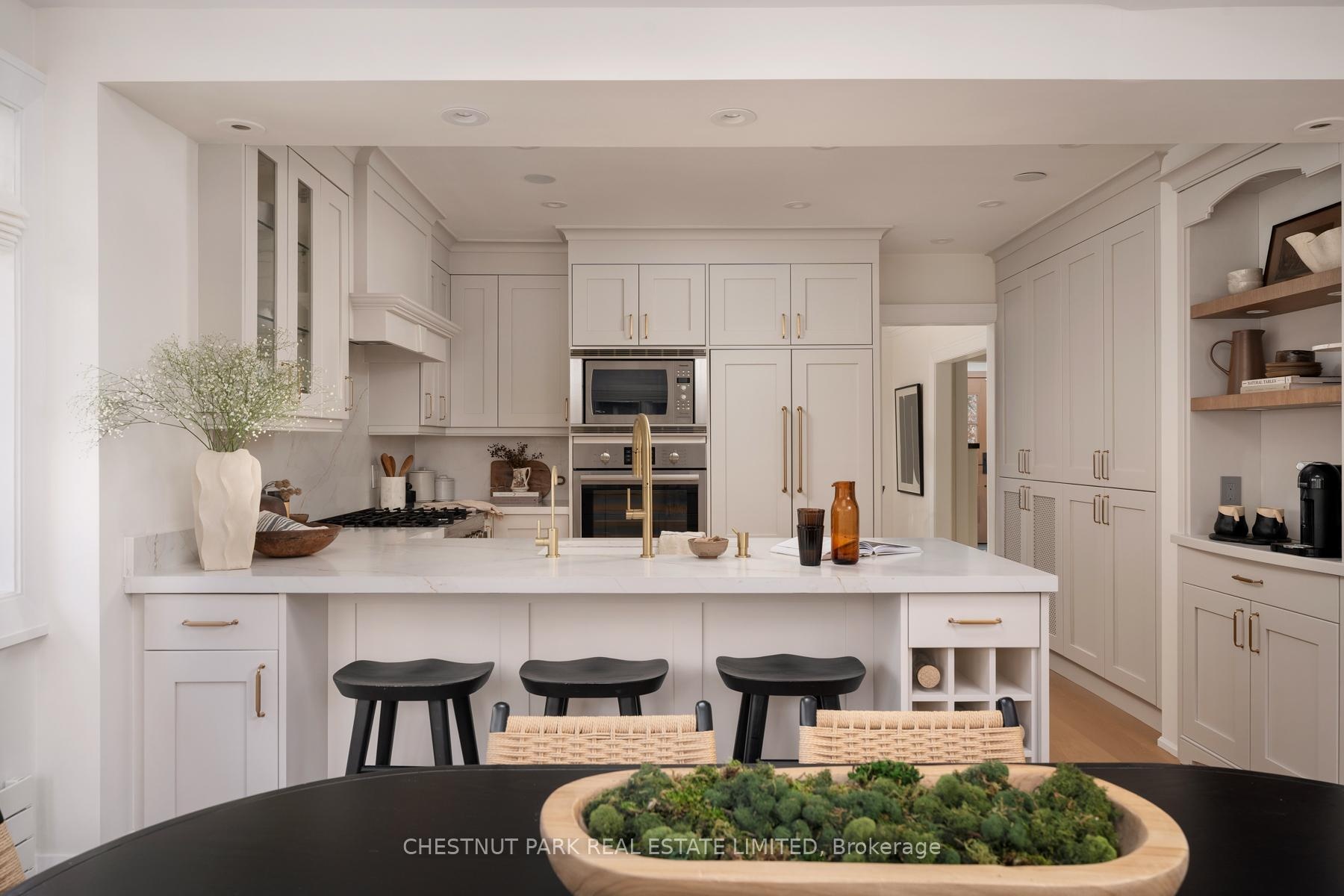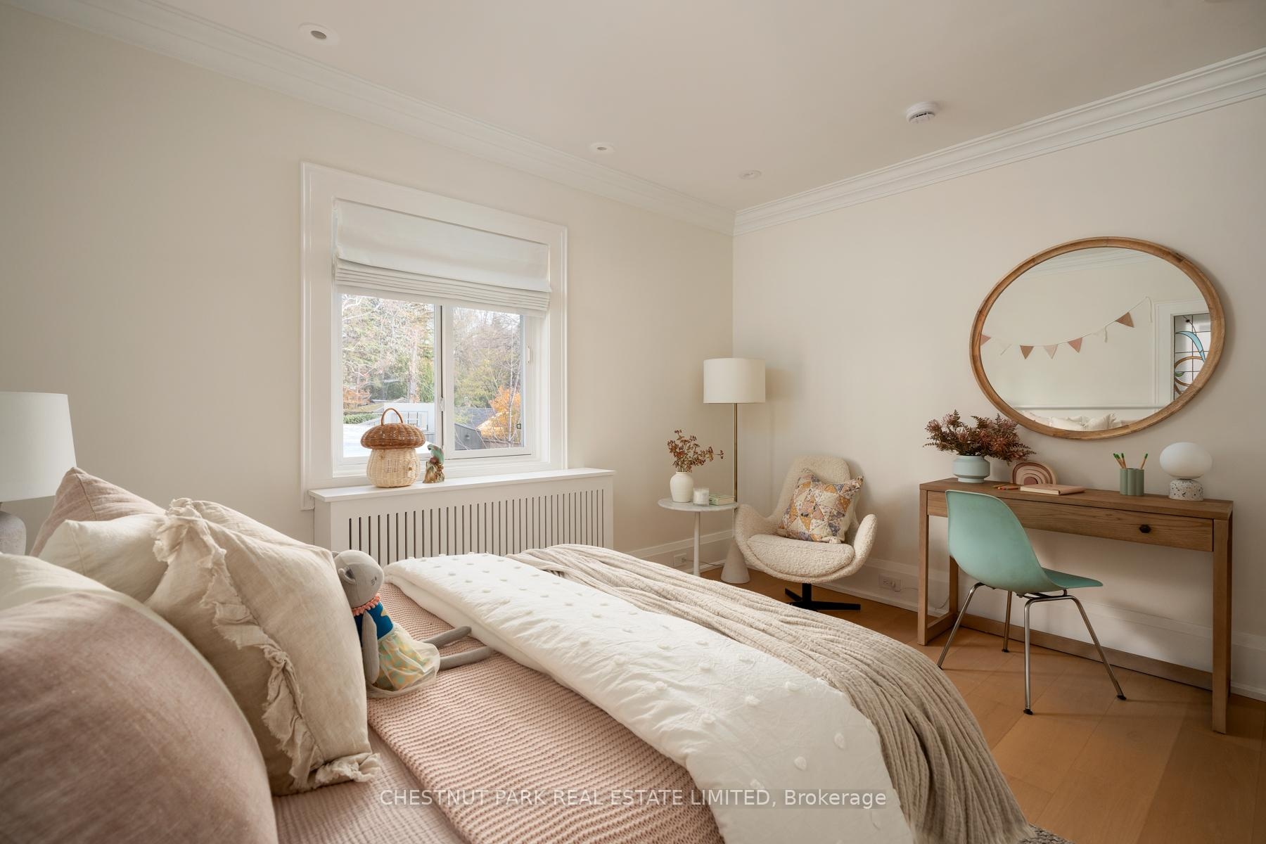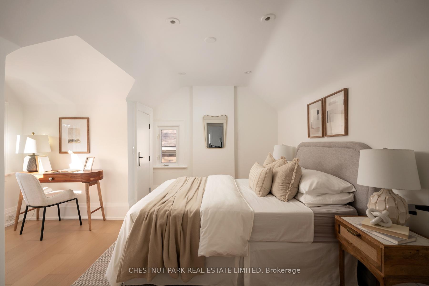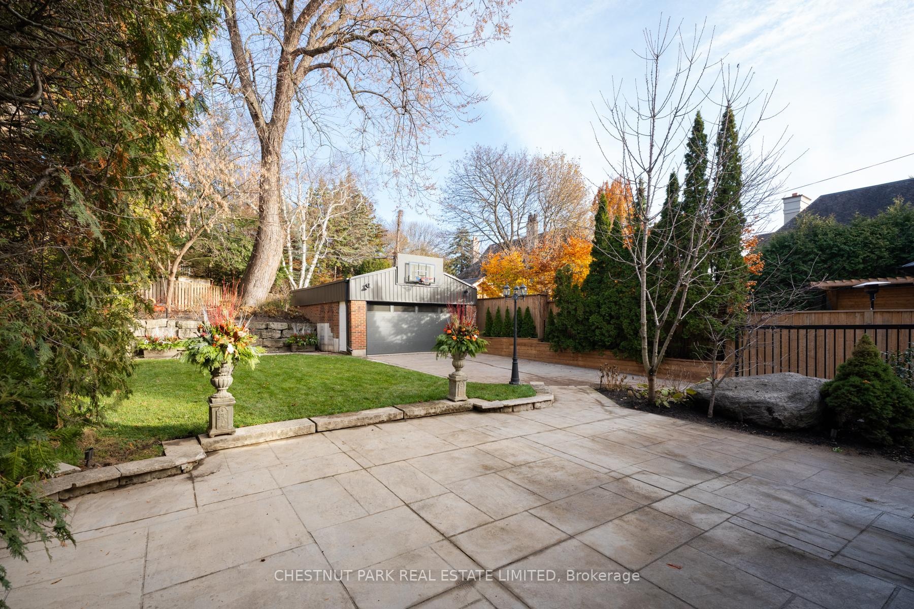 On the most coveted stretch of Weybourne Crescent, stands this Georgian home that feels lifted straight from the pages of Architectural Digest. Its presence is unmistakable: a manicured front garden frames the warm brick façade, enriched by symmetry, a detailed portico, a solid wood centre-hall door with glass inlays, and charming dormers that give the home its elegant, inviting personality. Inside, the story unfolds with a foyer finished in heated natural stone, a panelled oak-wood closet, and a skylight that fills the space with natural light. To the right, the formal dining room glows beneath a designer chandelier and flows seamlessly into the sun-filled kitchen with brand new panelled Fridge/Freezer, Dishwasher and built in oven, where refined finishes and a window-wrapped breakfast nook overlook the private backyard. Across the centre hall, the living room offers timeless charm with a gas fireplace, opening into a designer family room featuring a custom media wall, arched built-in, a dramatic skylight, and floor-to-ceiling windows framing the backyard oasis. Engineered white oak floors, pot lights, and integrated speakers elevate the entire main level. The second floor hosts a serene primary suite with a 5PC ensuite and walk-in closet, along with 2 additional bedrooms and a laundry closet. The third floor has two bright bedrooms with built-ins, adding rare architectural character. The lower level extends the home with two versatile rooms, a modern bath, a large laundry room, and a spotless utility space. Outdoor living shines with landscape lighting, smart irrigation, outdoor speakers, and rare parking for up to 9 cars, including a 2-car detached garage behind a remote-controlled gate. Steps to parks, the Lawrence Park Tennis Club, and close to Granite Club & Rosedale Golf Club, an easy walk to Yonge Street, Subway Station, and top schools, this home offers a lifestyle of charm, character, and modern family luxury on one of Toronto's most admired streets.