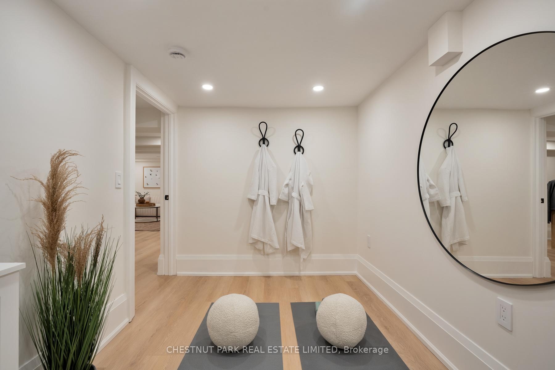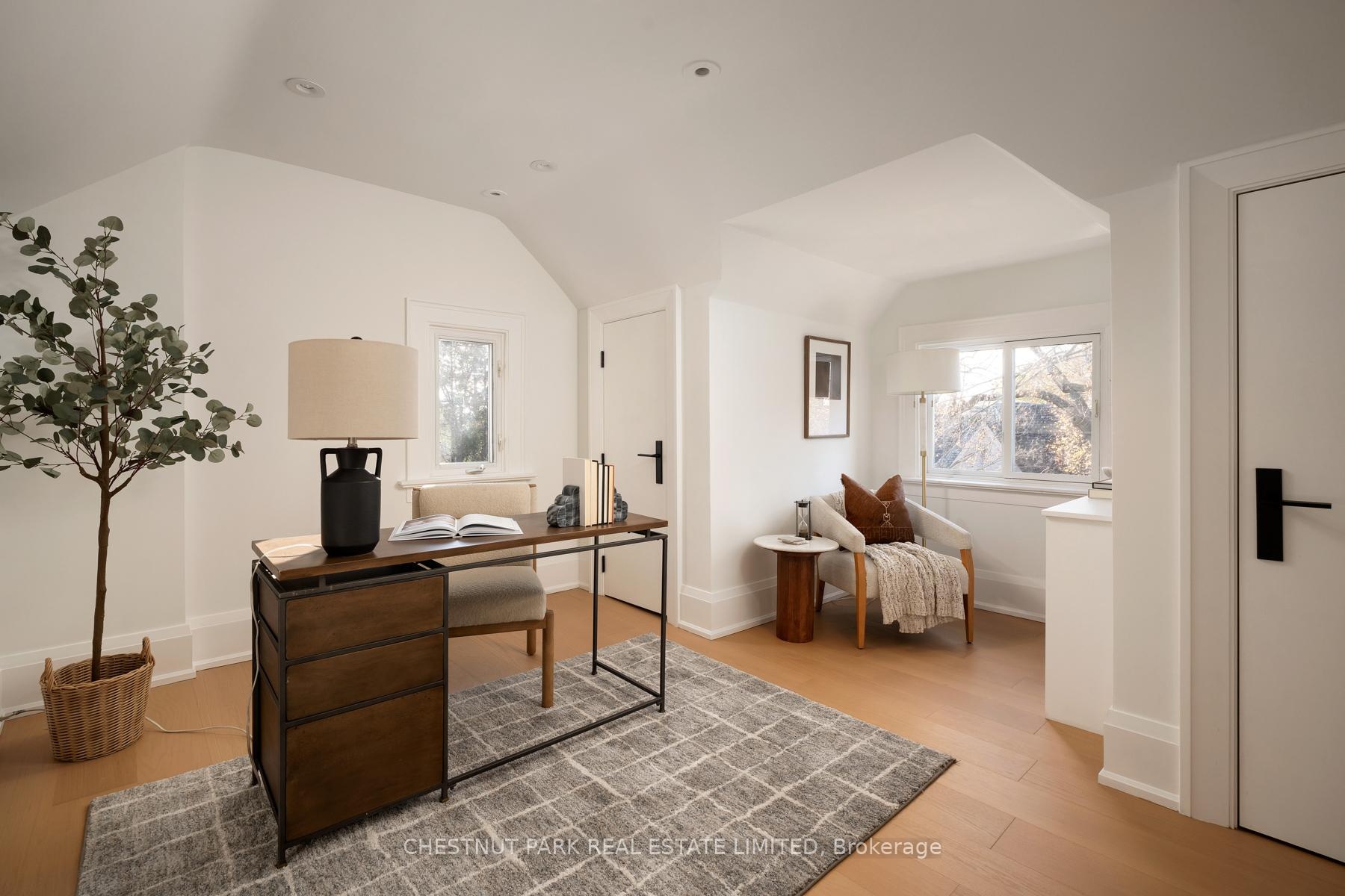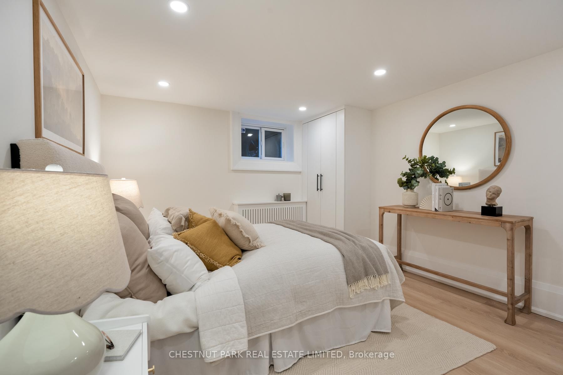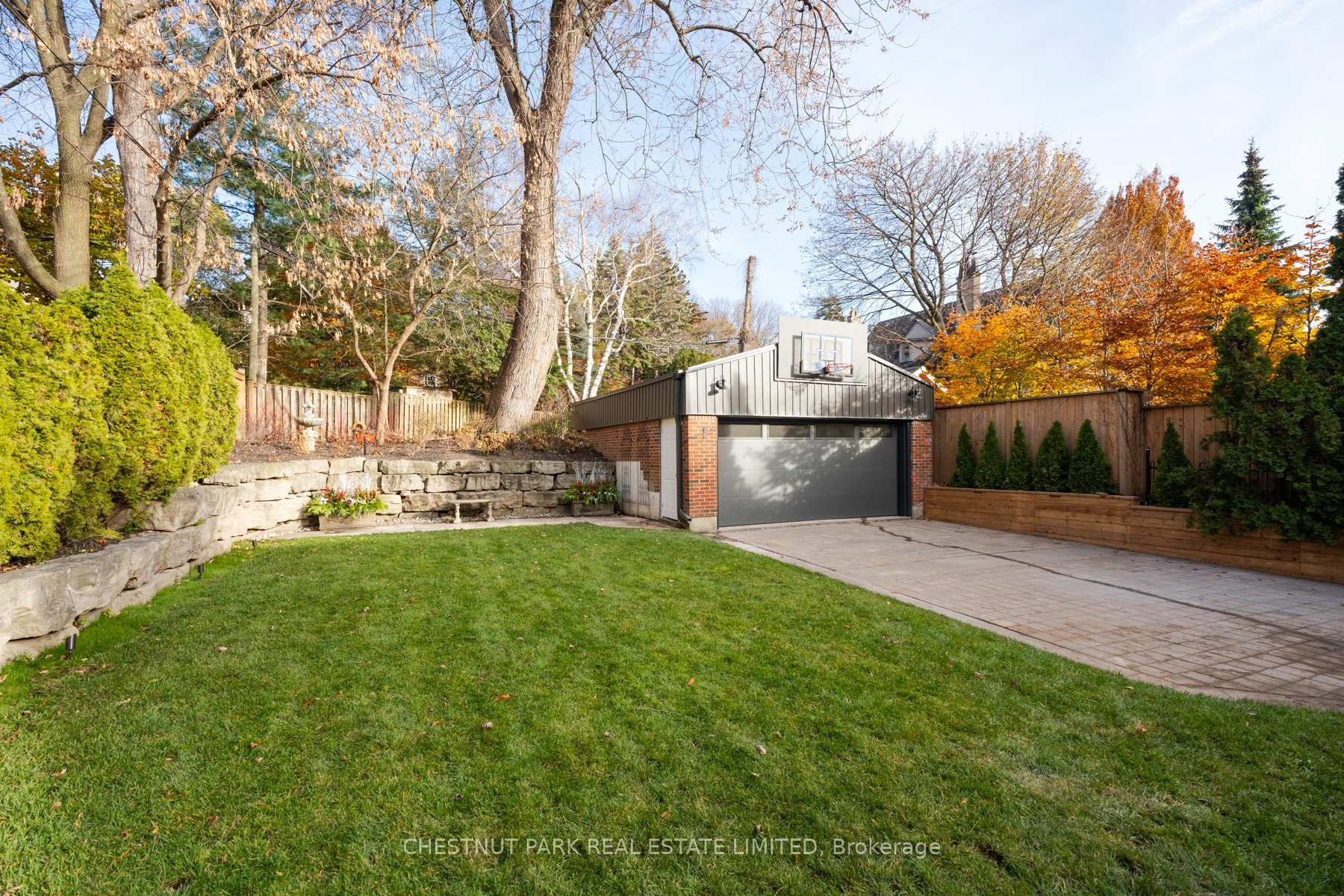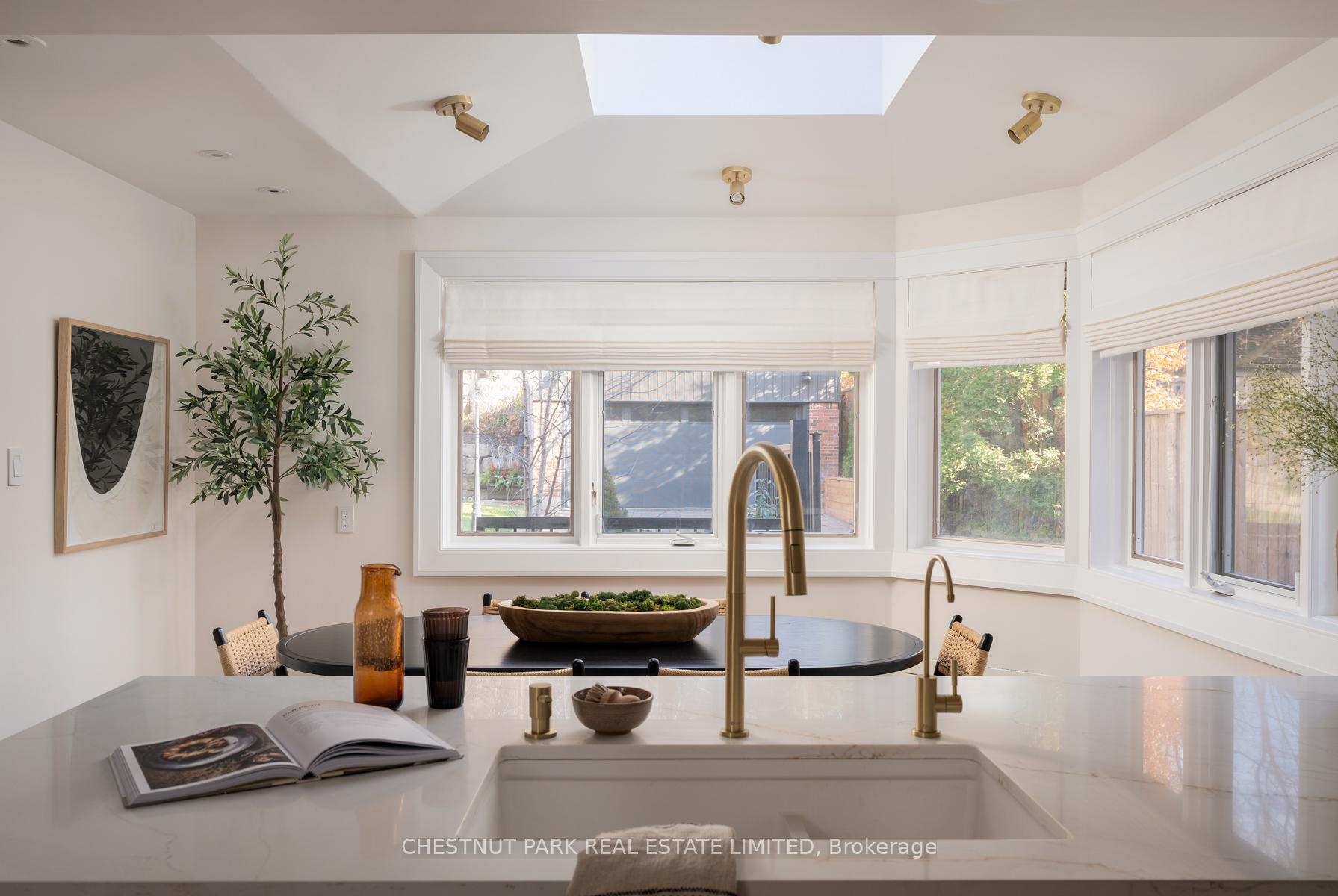 On the most coveted stretch of Weybourne Crescent, stands this Georgian home that feels lifted straight from the pages of Architectural Digest. Its presence is unmistakable: a manicured front garden frames the warm brick façade, enriched by symmetry, a detailed portico, a solid wood centre-hall door with glass inlays, and charming dormers that give the home its elegant, inviting personality. Inside, the story unfolds with a foyer finished in heated natural stone, a panelled oak-wood closet, and a skylight that fills the space with natural light. To the right, the formal dining room glows beneath a designer chandelier and flows seamlessly into the sun-filled kitchen with brand new panelled Fridge/Freezer, Dishwasher and built in oven, where refined finishes and a window-wrapped breakfast nook overlook the private backyard. Across the centre hall, the living room offers timeless charm with a gas fireplace, opening into a designer family room featuring a custom media wall, arched built-in, a dramatic skylight, and floor-to-ceiling windows framing the backyard oasis. Engineered white oak floors, pot lights, and integrated speakers elevate the entire main level. The second floor hosts a serene primary suite with a 5PC ensuite and walk-in closet, along with 2 additional bedrooms and a laundry closet. The third floor has two bright bedrooms with built-ins, adding rare architectural character. The lower level extends the home with two versatile rooms, a modern bath, a large laundry room, and a spotless utility space. Outdoor living shines with landscape lighting, smart irrigation, outdoor speakers, and rare parking for up to 9 cars, including a 2-car detached garage behind a remote-controlled gate. Steps to parks, the Lawrence Park Tennis Club, and close to Granite Club & Rosedale Golf Club, an easy walk to Yonge Street, Subway Station, and top schools, this home offers a lifestyle of charm, character, and modern family luxury on one of Toronto's most admired streets.