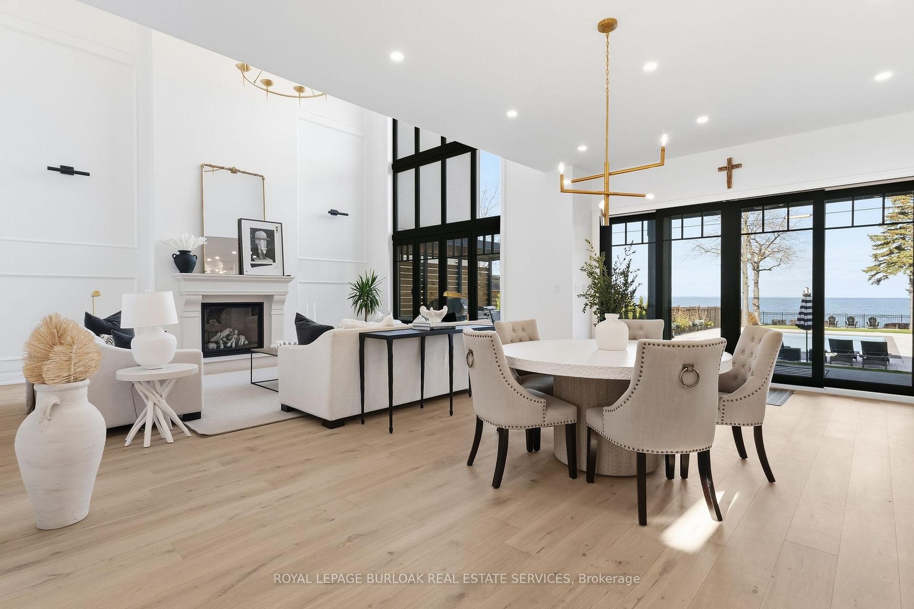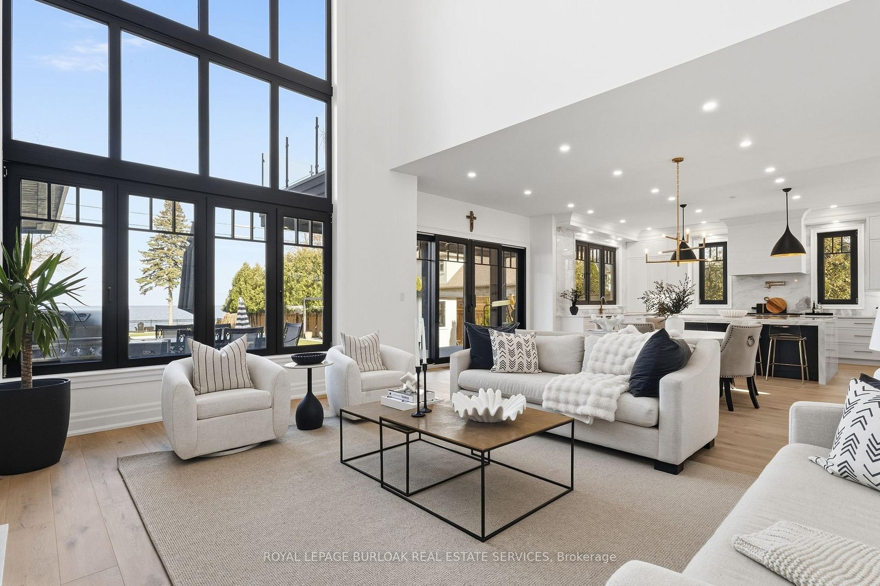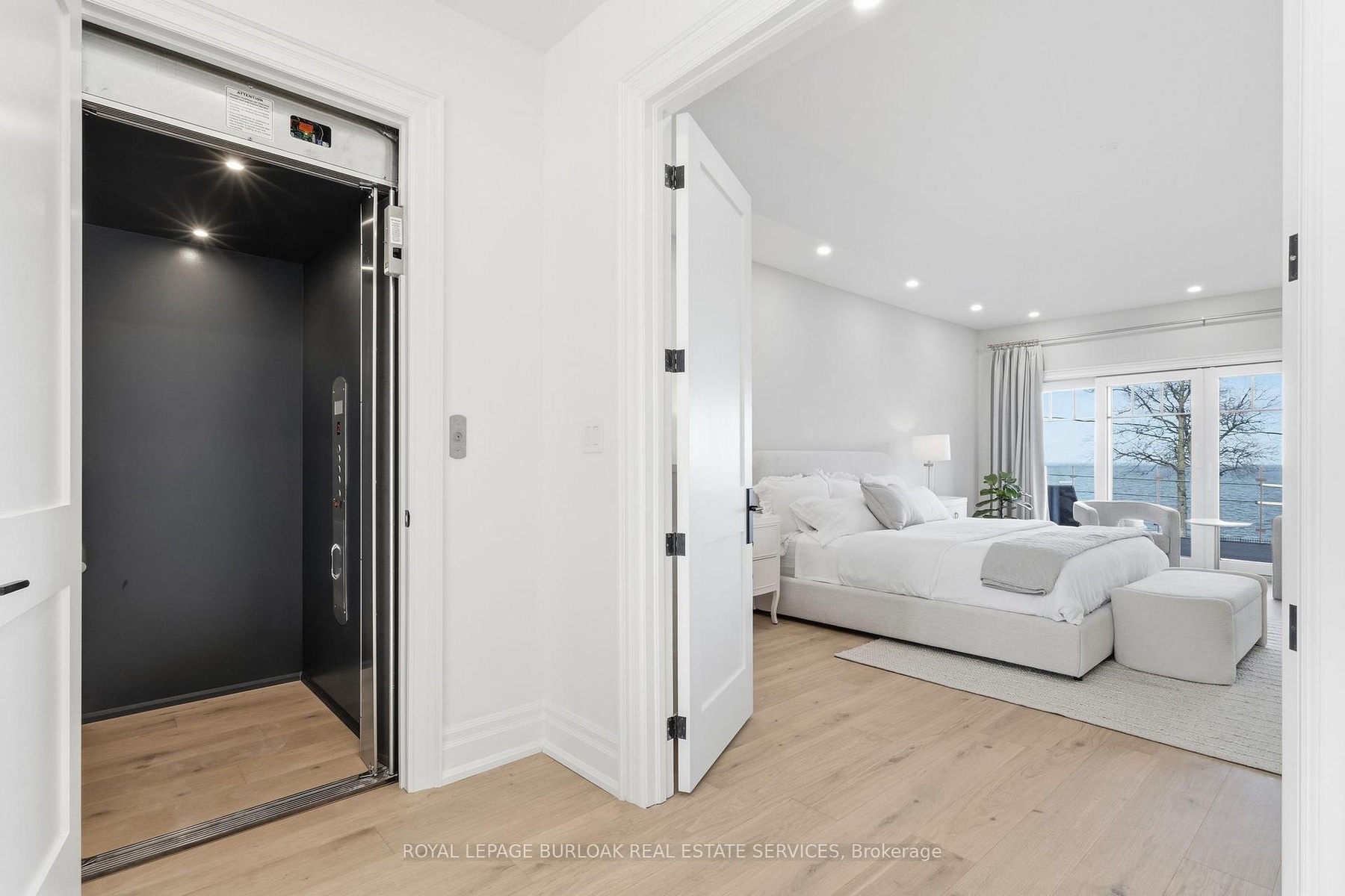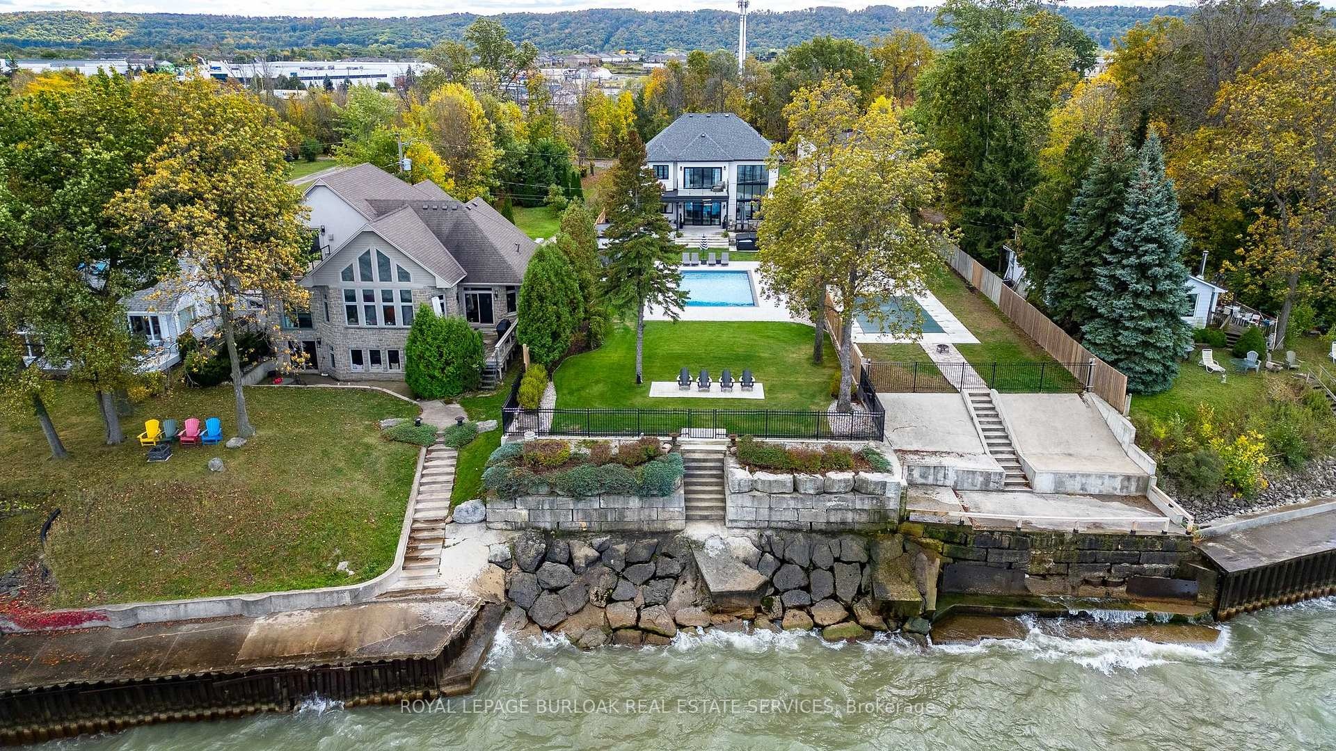Welcome to an extraordinary custom-built waterfront residence offering luxury, craftsmanship, and breathtaking views at every turn. Designed with top-of-the-line finishes throughout, this home showcases soaring 20-foot ceilings in the great room, expansive windows that frame the water, and a seamless blend of elegance and comfort. The chef's kitchen is a true showpiece, featuring premium appliances, refined cabinetry, a service pantry -perfect for both everyday living and entertaining. The spa-like primary suite offers a serene retreat with stunning views, a beautifully appointed ensuite, and a spacious walk-in closet. Generously sized bedrooms provide comfort and privacy for family and guests. Step outside to your own resort-style oasis, complete with an inground saltwater heated pool overlooking the shoreline. Covered outdoor spaces and meticulously landscaped grounds create the ideal setting for relaxation or gatherings in every season. An elevator provides effortless access to all three levels, enhancing convenience and accessibility. The 3-car garage, spacious mudroom, and main-floor laundry add exceptional functionality, making daily living as comfortable and practical as it is luxurious.