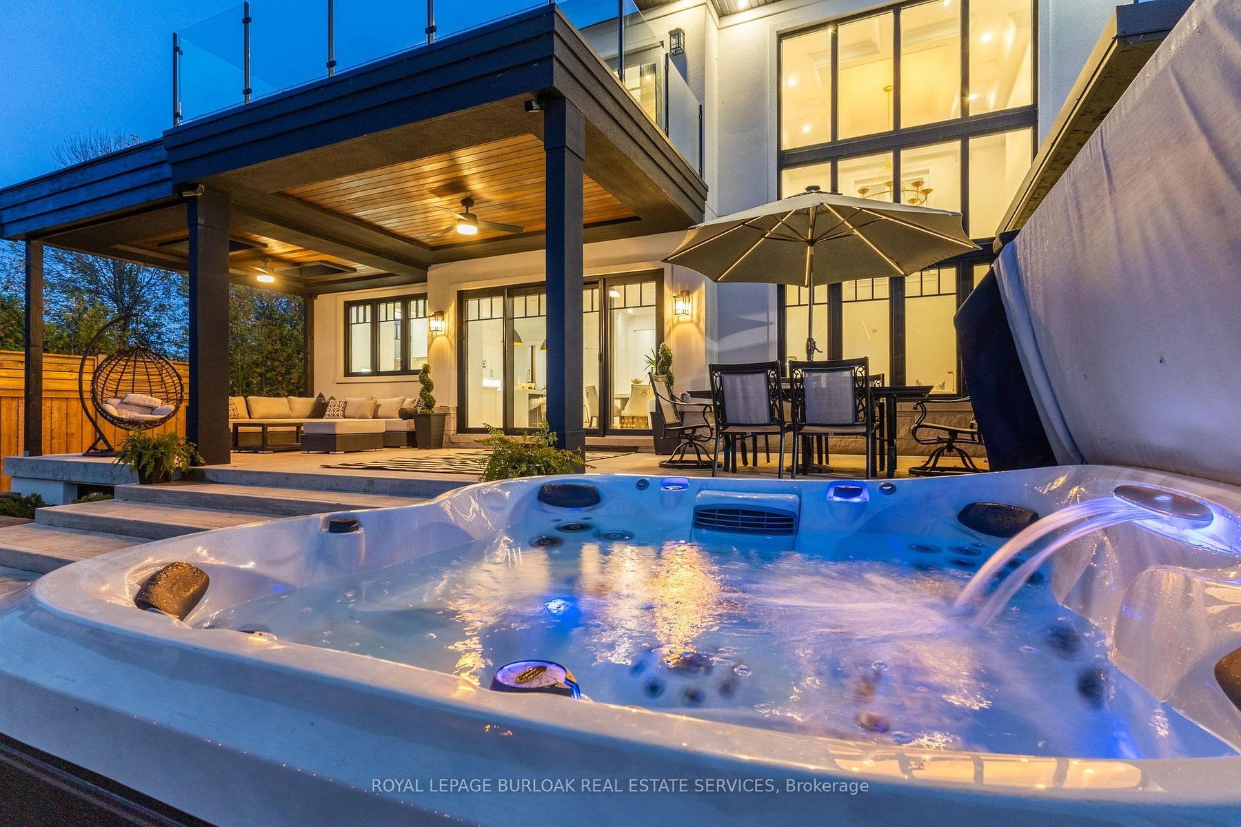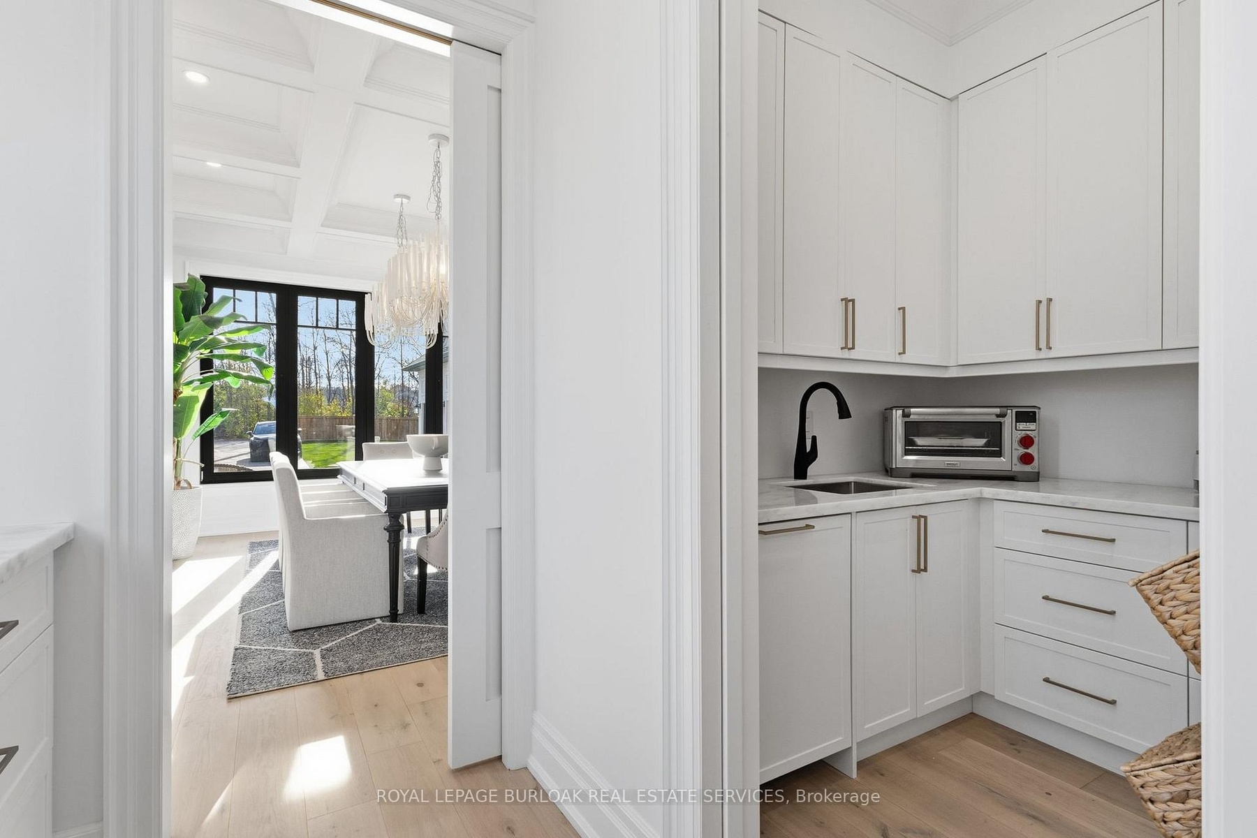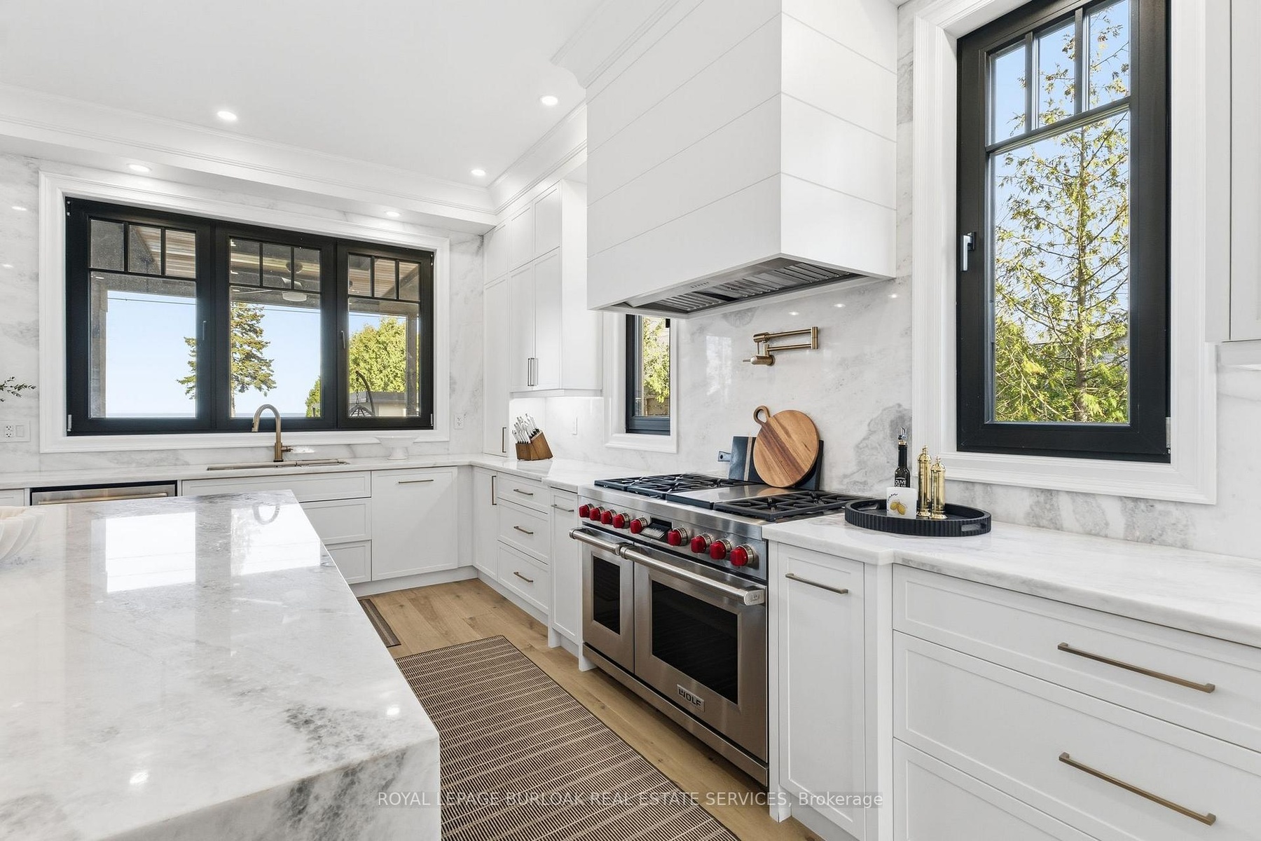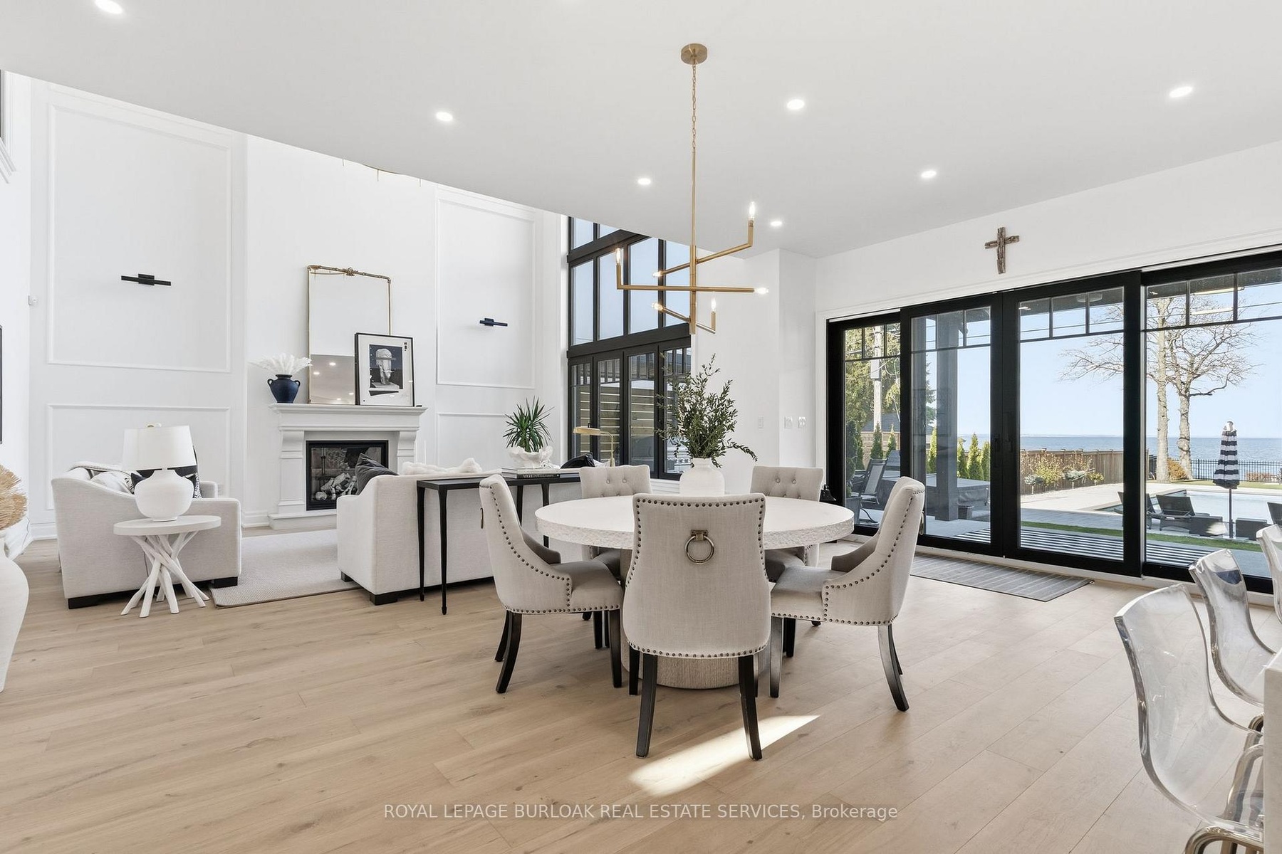 Welcome to an extraordinary custom-built waterfront residence offering luxury, craftsmanship, and breathtaking views at every turn. Designed with top-of-the-line finishes throughout, this home showcases soaring 20-foot ceilings in the great room, expansive windows that frame the water, and a seamless blend of elegance and comfort. The chef's kitchen is a true showpiece, featuring premium appliances, refined cabinetry, a service pantry -perfect for both everyday living and entertaining. The spa-like primary suite offers a serene retreat with stunning views, a beautifully appointed ensuite, and a spacious walk-in closet. Generously sized bedrooms provide comfort and privacy for family and guests. Step outside to your own resort-style oasis, complete with an inground saltwater heated pool overlooking the shoreline. Covered outdoor spaces and meticulously landscaped grounds create the ideal setting for relaxation or gatherings in every season. An elevator provides effortless access to all three levels, enhancing convenience and accessibility. The 3-car garage, spacious mudroom, and main-floor laundry add exceptional functionality, making daily living as comfortable and practical as it is luxurious.