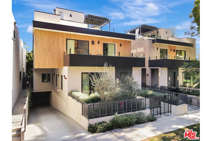 Introducing a NEWLY CONSTRUCTED contemporary/modern townhouse (2025), ideally positioned on one of West Hollywood's most sought-after streets. This exceptional residence embodies a refined blend of timeless architectural design, elevated finishes, and modern luxury living, offering approximately 1,862 sq ft of thoughtfully curated living space. This private, gated home features 3 spacious bedrooms and 2.5 impeccably designed bathrooms. A dramatic foyer opens to a sprawling, light-filled open-concept floor plan designed to maximize natural light and volume. Soaring ceilings and expansive picture windows define the main living areas, where formal living and dining spaces are enhanced by sophisticated architectural details, ideal for both intimate gatherings and grand-scale entertaining with a wine closet, fireplace. At the heart of the home lies a state-of-the-art chef's kitchen, showcasing custom cabinetry, a sleek waterfall-edge island, premium appliances, and designer fixtures that deliver both culinary excellence and striking visual appeal. The second level hosts three beautifully appointed bedrooms and two luxurious bathrooms, each finished with bespoke materials. The primary suite serves as a true sanctuary, featuring dual vanities, an oversized walk-in shower, and a custom dressing room/closet with high-end built-ins and a fireplace. The rooftop deck elevates outdoor living with city views, creating the perfect backdrop for al fresco dining, morning coffee, or evening relaxation. Additional highlights include designer lighting, two side-by-side parking spaces in a gated garage with an EV charger, large dedicated storage, an in-unit laundry area, and paid solar panels. This turnkey modern masterpiece offers sophistication, comfort, and privacy-just moments from the finest shopping, dining, and amenities West Hollywood has to offer. Monthly HOA dues cover water and gardening. A truly exceptional offering in one of the city's premier locations. AN ABSOLUTE MUST-SEE.