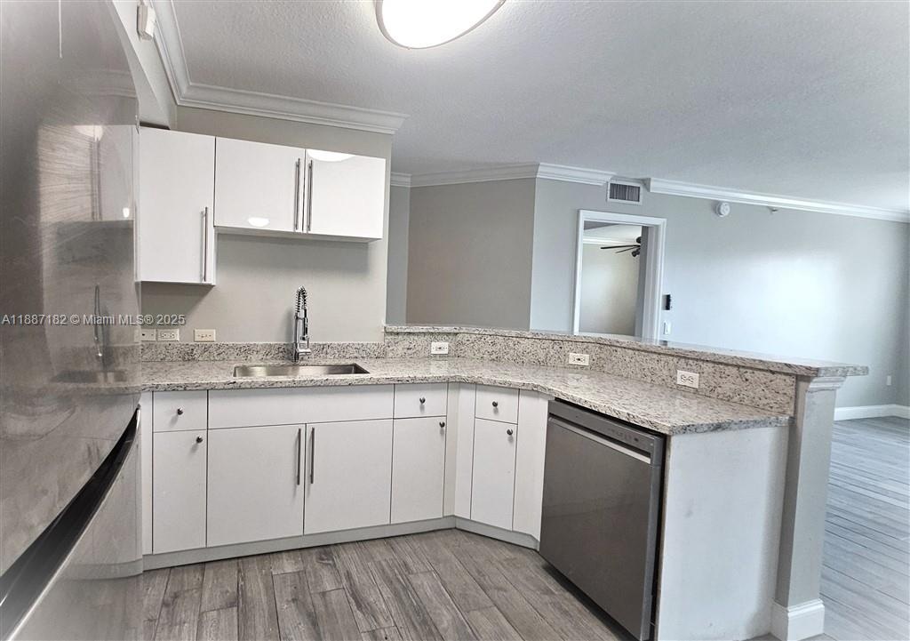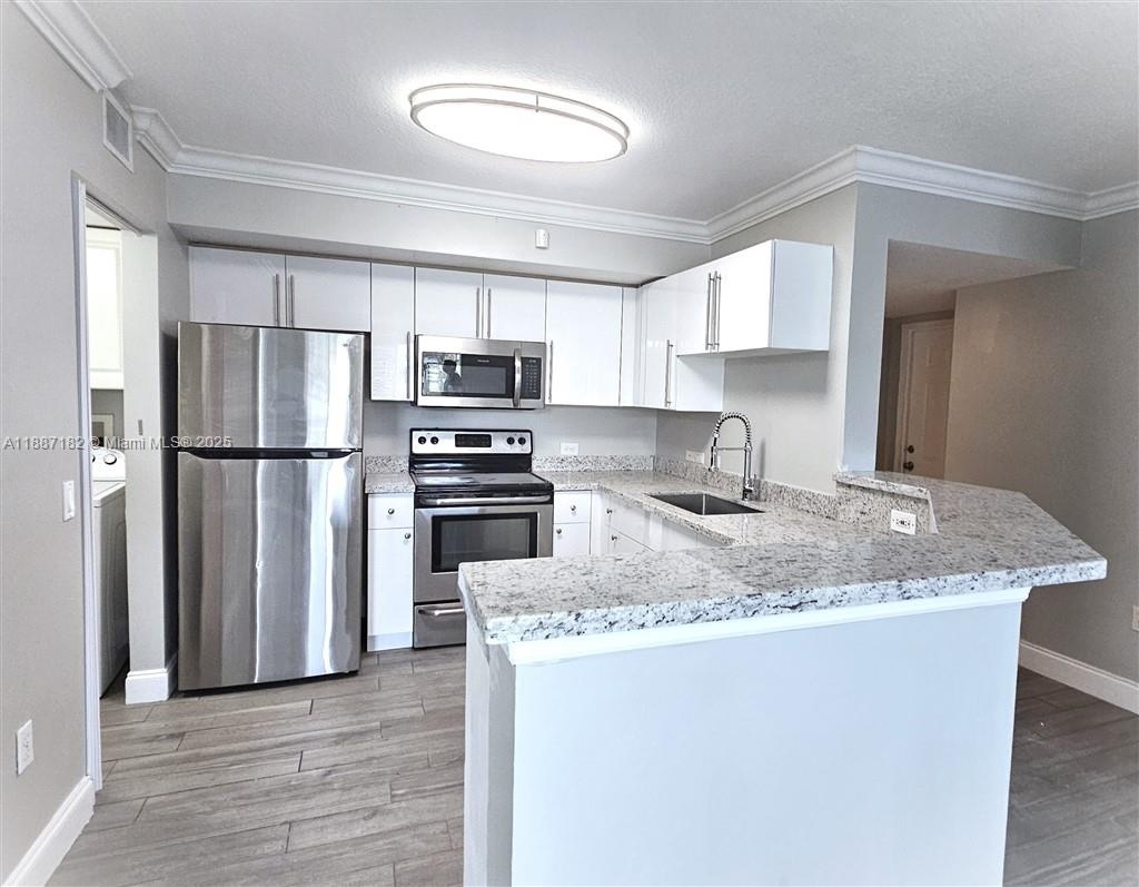 2nd floor lake & pool view with garage unit at Mirabella Villa Del Sol. Water and cable are included. ALL IMPACT WINDOWS AND DOORS! This charming unit has wood looking porcelain tile floor throughout, full complement of stainless-steel appliances. Washer dryer inside the unit. Complex features gate, pool, jacuzzi, fitness, playground, volleyball and basketball court. Community closes to schools, shopping, restaurants.