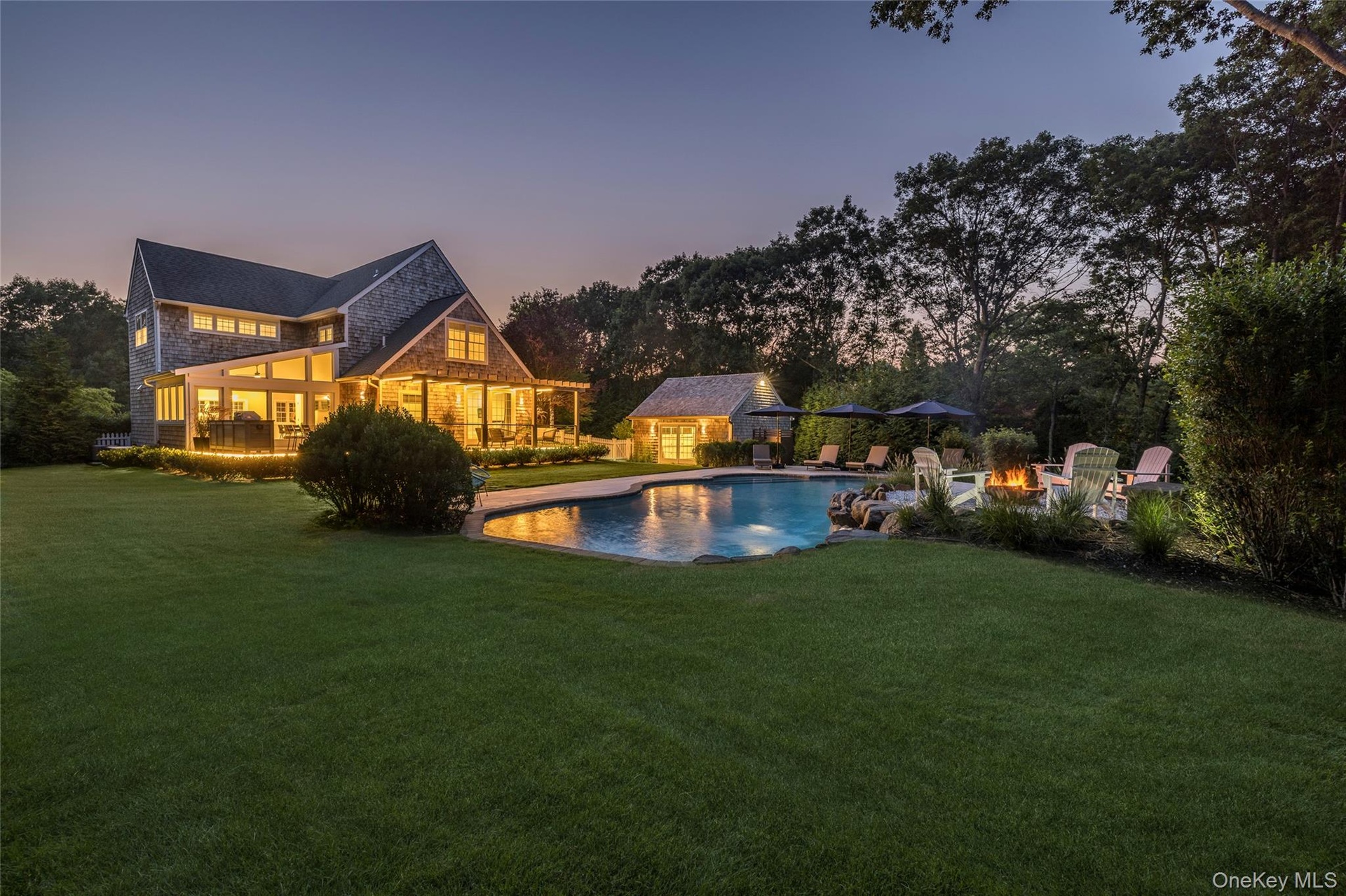 BEING SOLD TURN-KEY (art-work not included) Conceived by award-winning architect Joseph Eisner, AIA, LEED AP, and newly completed to perfection, this modern masterpiece is the latest creation of a preeminent home design aficionado, featured in prominent publications and sought-after by the most discerning. Nestled in a quiet, coveted cul-de-sac, 20 Cove Neck Lane boasts an incomparable location, resting moments from beautiful Fish Cove, minutes to Southampton Village, North Sea Harbor, Peconic Bay and pristine ocean beaches, as well as the Southampton Youth Services Fitness Center and Tennis Club. Set on a lush .84 acres of elevated grounds, the exquisite 4-bedroom 4.5-bathroom gem abuts 10 acres of reserve land for the ultimate peace and privacy. An expansive 4375 square feet of luxurious living space is met by serene and stunning outdoor environs that afford a perfect backdrop for entertaining. Lounge and dine alfresco on the generous wood deck with a built-in grill and fridge, or enjoy summer swims in the sparkling in-ground pool. Refined interiors are light, bright and spacious, offering gorgeous views of greenery and an open-concept layout for the host. The wonderful great room with wide-plank wood floors and a sleek wood-burning fireplace is complemented by a lovely dining alcove enveloped by windows. The brand new state-of-the-art kitchen is tailored to the chef, styled in white with abundant cabinetry, stone countertops, and a large island with extra seating. A sky-lit sunroom with a ceiling fan and tile flooring extends the kitchen/party area, offering huge sliding glass doors leading to the pool and outdoor oasis. Among the additional highlights are primary suites on 2 levels (one accessing the deck and pool), 3 additional guest rooms, all new high-end spa baths, a newly-added finished lower level, full laundry room with storage, refreshing outdoor shower, and oversized detached 2-car garage. Every detail of this exceptional upscale home has been thoughtfully considered for optimal aesthetics, functionality, and sustainability. Topping the allure is the premier address, in close proximity to all the attractions of Southampton, Bridgehampton, Sag Harbor and Water Mill, and an easy commute to Manhattan!