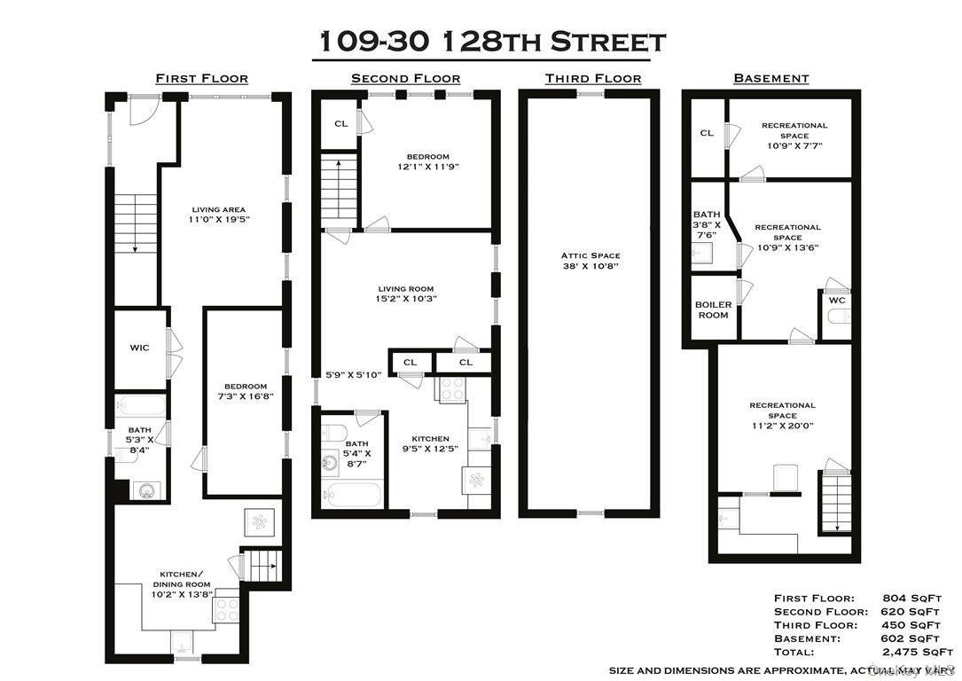 Welcome to 109-30 128th Street, a spacious and well-maintained detached two-family home offering exceptional versatility, comfort, and investment potential in the heart of South Ozone Park. Spanning approximately 2,475 sq ft across three levels plus a finished basement, this property provides an ideal layout for end-users, investors, or extended families seeking additional space.The first-floor unit features a generous living area, an eat-in kitchen, a full bathroom, and a large bedroom with a walk-in closet—perfect for privacy and convenience. The second-floor unit includes a bright living room, two bedrooms, a full bathroom, and its own well-sized kitchen, offering a comfortable and functional residence for rental income or extended family. A massive third-floor attic space adds even more potential, offering 38 feet of open, finished space ideal for storage, office use, or future customization (where permitted). The finished basement includes multiple recreation rooms, a bathroom, a laundry area, and a boiler room, providing valuable added living and storage space with both interior and exterior access. Outside, the property includes a private backyard and sits on a quiet residential block conveniently located near shopping, dining, schools, and major transportation options including the A train, LIRR, and local bus routes. With easy access to the Belt Parkway, Van Wyck Expressway, JFK Airport, and neighborhood amenities, this home delivers the perfect combination of convenience, comfort, and opportunity. Whether you're searching for a residence with rental income potential or a multi-generational living setup, 109-30 128th Street stands out as a rare offering in a high-demand neighborhood.