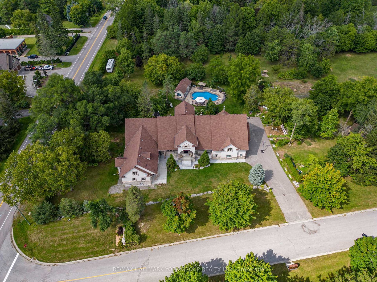 Step beyond the ordinary and into an architectural opus a custom estate of approx. 10,000 sq. ft. poised upon 6 acres of manicured landscape and untamed natural beauty. This double-lot masterpiece is not merely a home; it is a statement an intersection of luxury, privacy, and visionary investment.Highlights: 9 sculpted bathrooms, 4 bespoke kitchens, Multiple fireplaces each its own gathering ritual, Soaring 10+ ft. ceilings, framed by solid 8 doors. Custom cabinetry, artisan woodwork, and natural stone details. A grand procession of 16 parking spaces. Sanctuaries within are a private, self-contained 3-bedroom nanny suite, inground pool & cabana, conceived for lavish entertaining. Gardens bursting with fruit trees, curated for the modern Edenist. Private woodland trails alive with wildlife - an ode to the outdoors. This is not a residence. It is a realm. A stage for grand soirees, a retreat for quiet meditation, a canvas upon which the extraordinary is lived daily. Too many photos to share explore every corner in the virtual tour! Imagine the possibilities and place your own designer stamp at 2 Kingswood Dr.