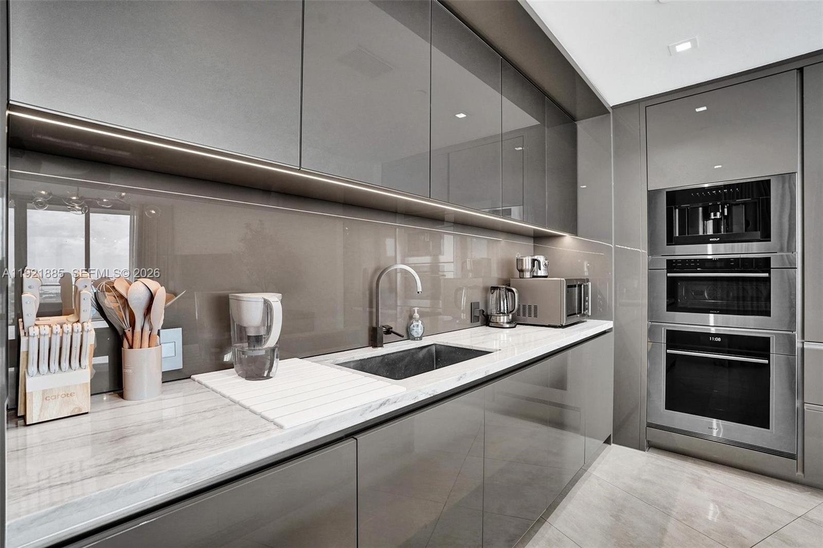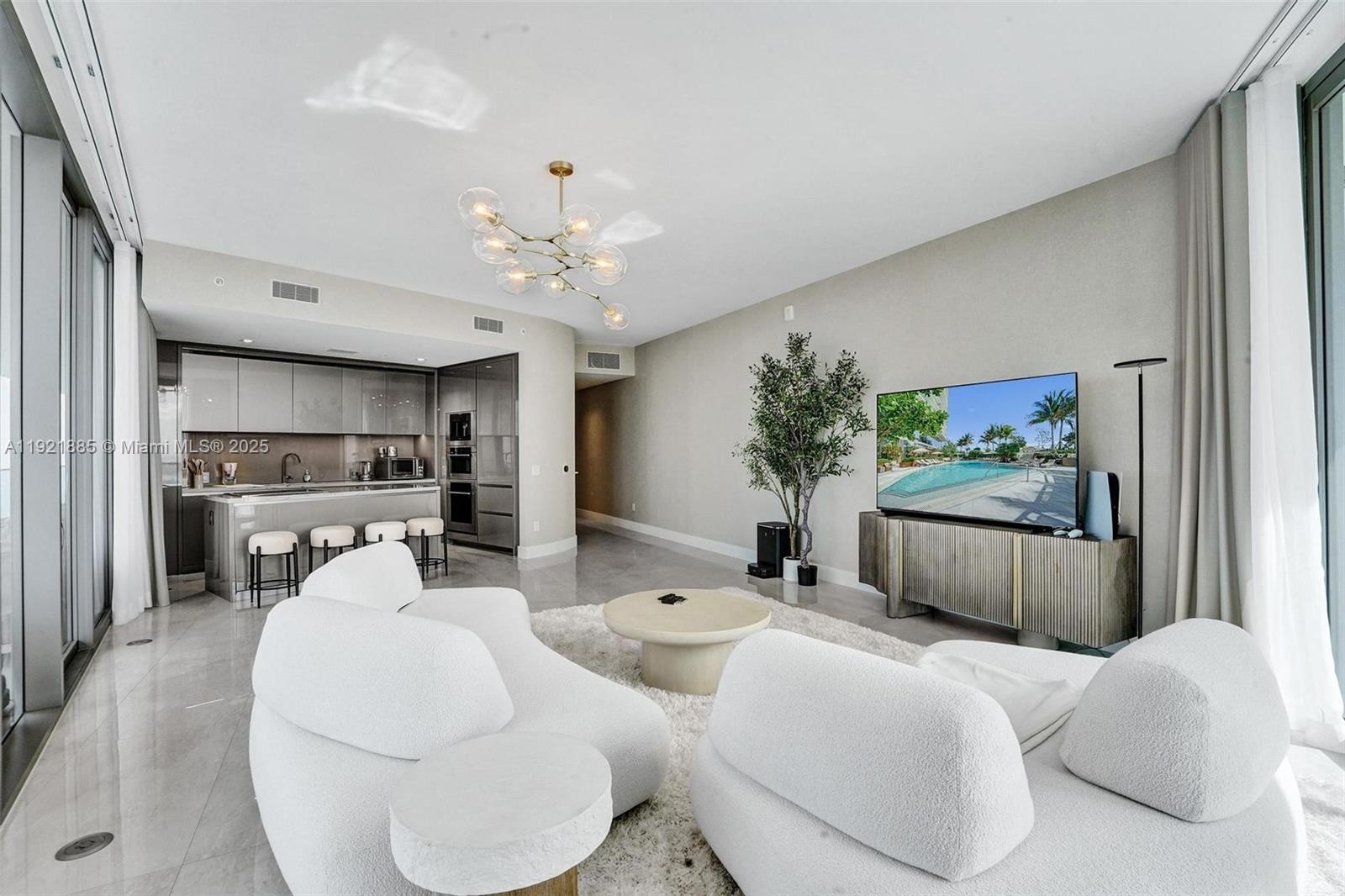 Open-concept interior features a signature Armani Casa kitchen with top-of-the-line appliances, spa-style bathrooms, and refined custom finishes throughout.