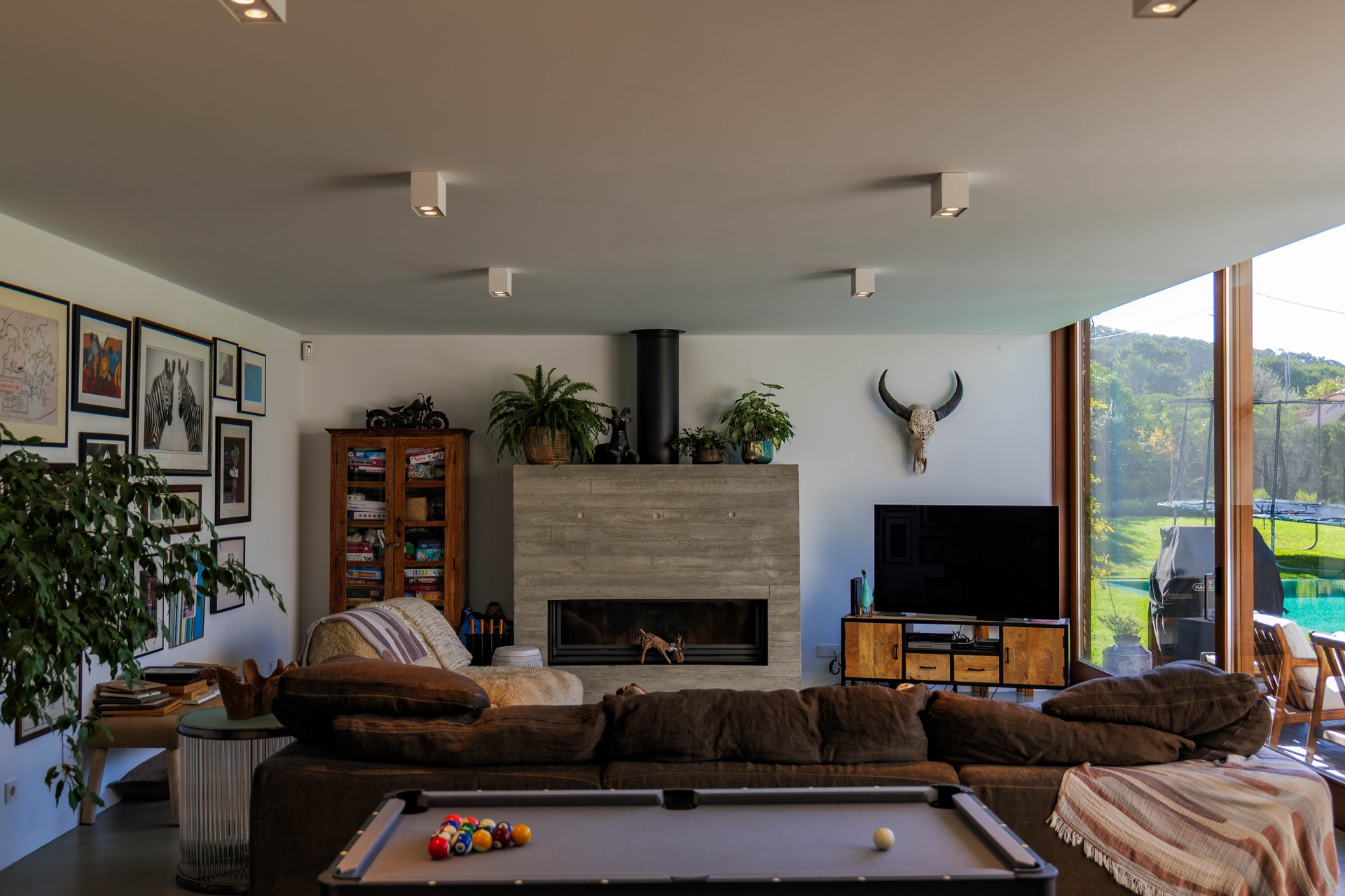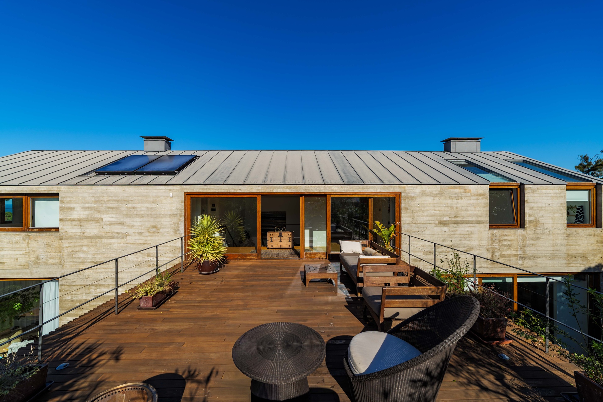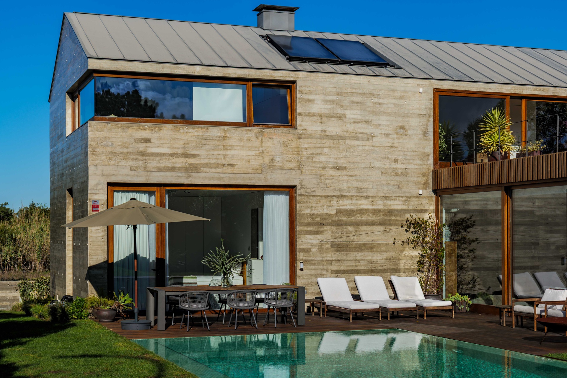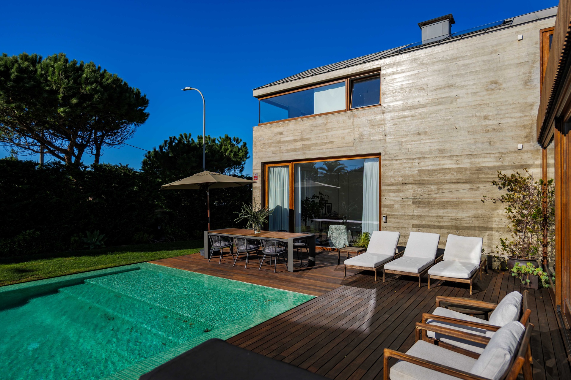 Featuring 4 spacious suites, the home was designed to maximise comfort and luminosity, with large windows framing the surrounding green areas and the ocean. The social areas flow seamlessly to the garden and swimming pool, creating the perfect setting for indoor–outdoor living.