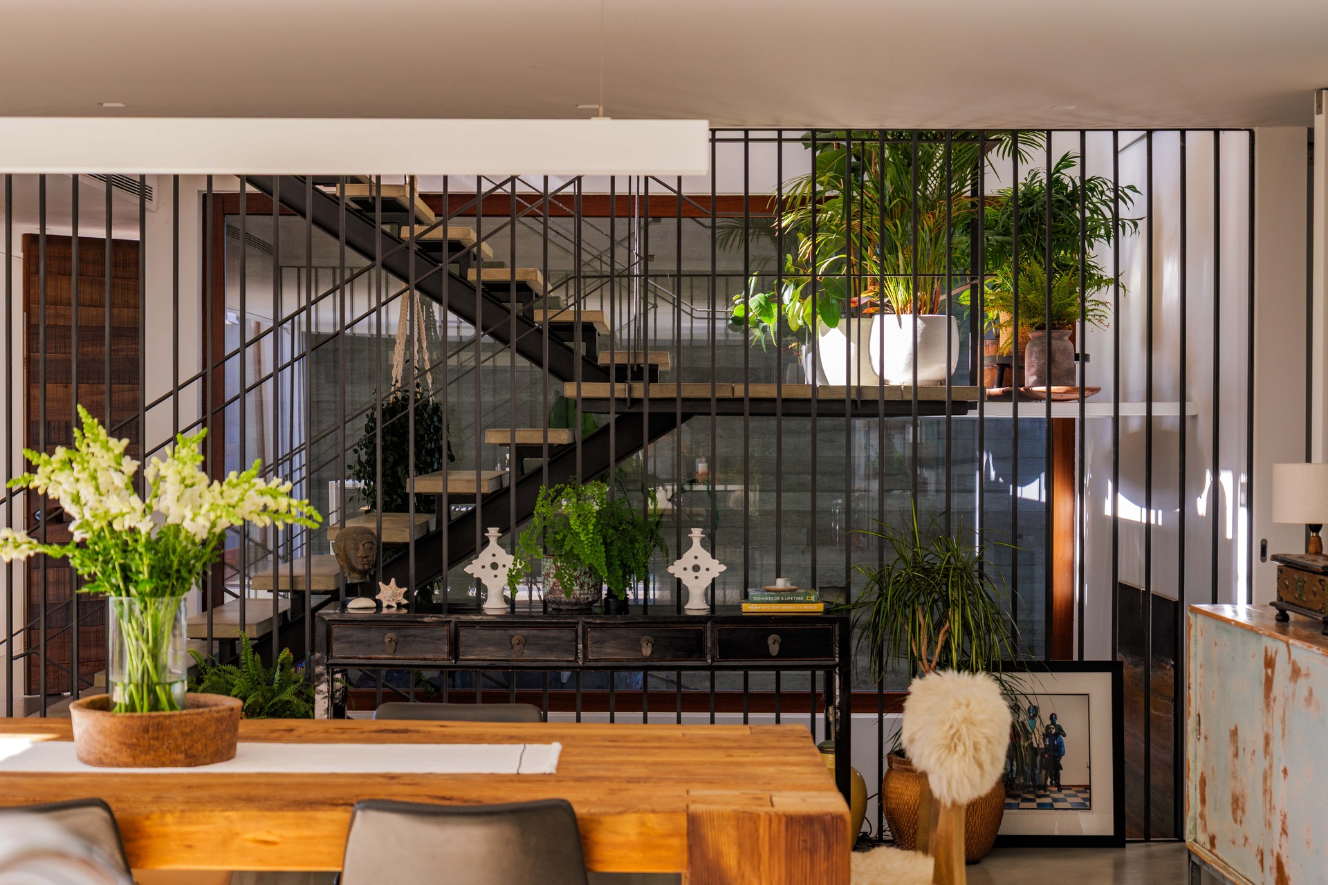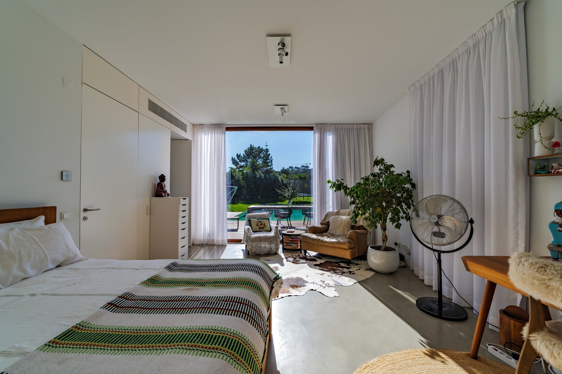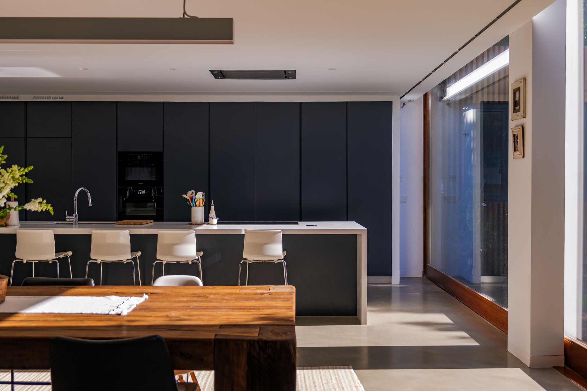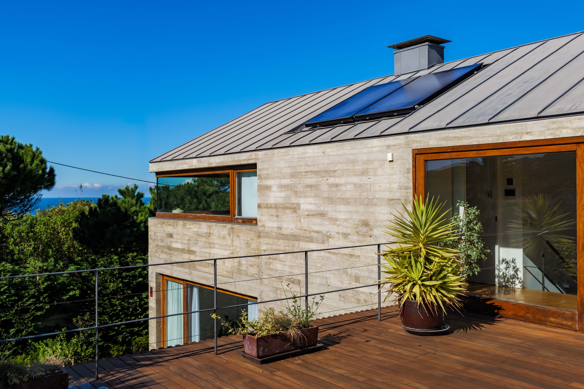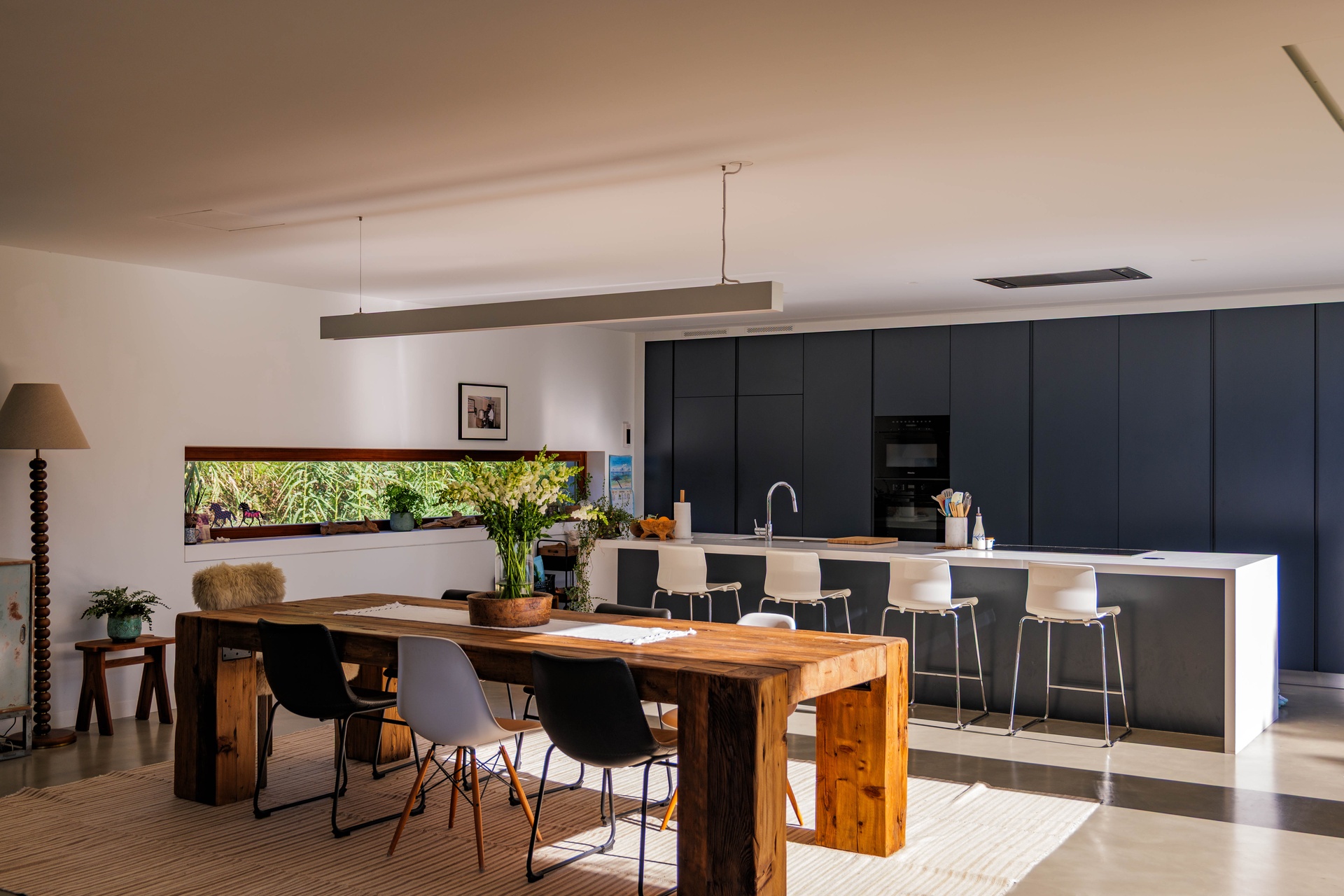 Featuring 4 spacious suites, the home was designed to maximise comfort and luminosity, with large windows framing the surrounding green areas and the ocean. The social areas flow seamlessly to the garden and swimming pool, creating the perfect setting for indoor–outdoor living.