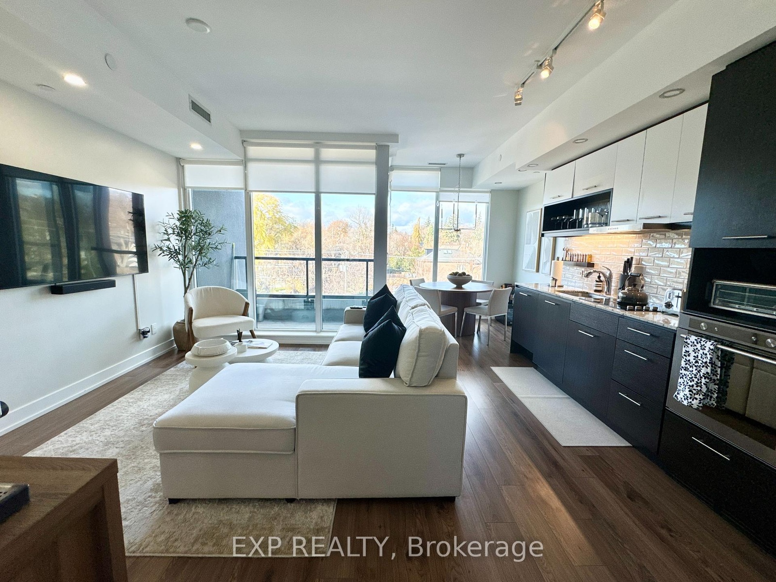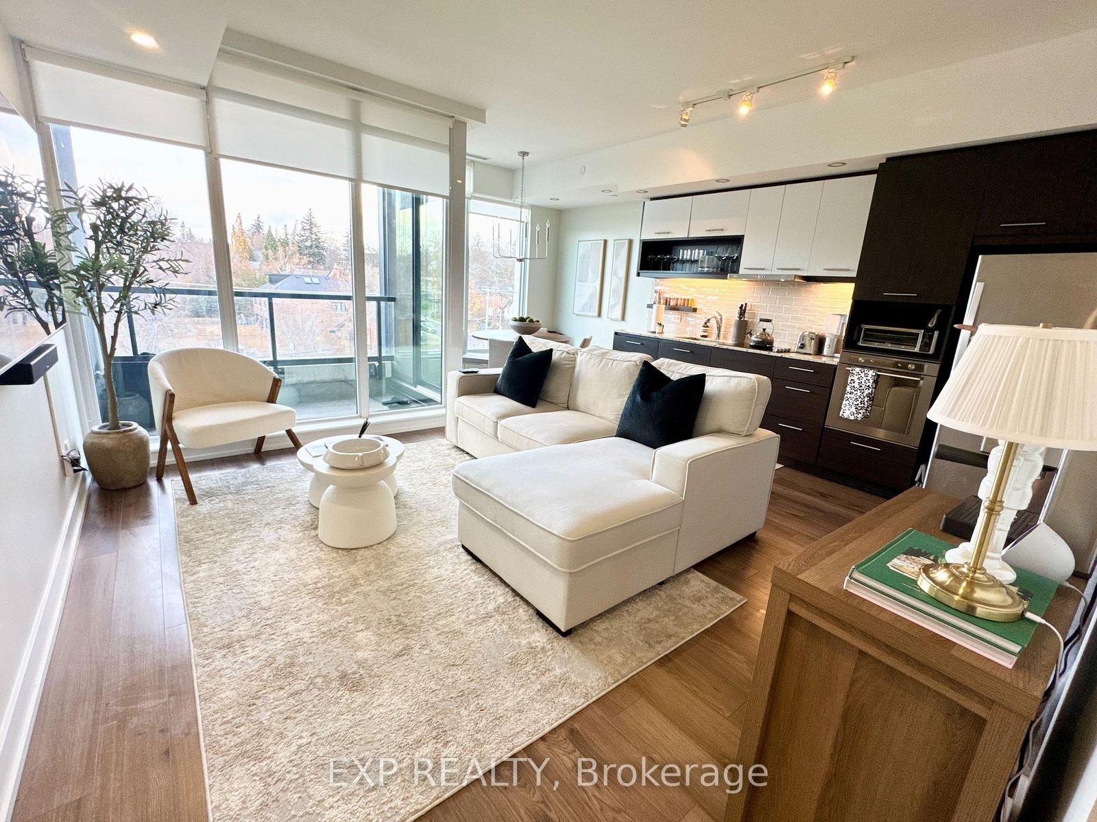 Beautiful and bright 1 Bedroom + Den suite in a boutique low-rise building in the highly sought-after Humewood-Cedarvale community (Toronto C03). Offering 615 sq ft of functional open-concept living with floor-to-ceiling windows, abundant natural light, and a private walk-out balcony. Interior features include 7" laminate wood flooring throughout, 9 ft ceilings, a modern kitchen with granite counters, grey subway tile backsplash, ample cabinetry, countertop stove, wall oven, stainless steel fridge and sink, and chrome single-lever faucet. Finished with upgraded pot lights and modern light fixtures. Spacious den ideal for home office, guest space, or additional living area. Located in one of Toronto's most desirable midtown pockets, this property offers exceptional convenience. Steps to Cedarvale Park, the Cedarvale Ravine Trail, St. Clair West Village, shops, cafés, boutiques, restaurants, and all everyday amenities. Walking distance to St. Clair West Station, the Eglinton Crosstown LRT, grocery stores, and top-rated schools. A perfect location for professionals and those seeking an urban lifestyle with a residential neighbourhood feel. Premium building amenities include a full fitness centre, party/meeting room, guest suite, rooftop patio, concierge/security, and stylish modern common areas. Boutique, well-maintained, and highly convenient living in the heart of midtown.