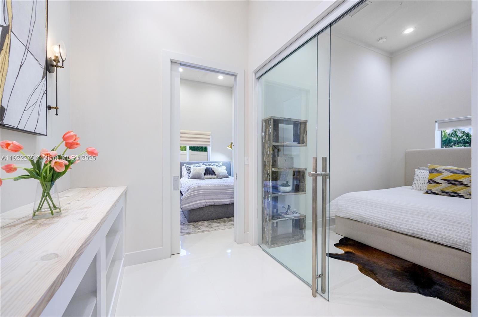 Hidden behind a majestic century tree, this Wilton Manors waterfront masterpiece delivers an unforgettable “wow” the moment you step inside. Turnkey and fully furnished if desired, this 4 bedroom, 4 full bathroom contemporary home, giving you instant cash flow from day one. Soaring 9+ ft ceilings, an open floor plan and gigantic hurricane-impact sliding glass walls span the entire width of the house, framing unobstructed water views and flooding every room with natural light. The result is a powerful sense of nature flowing through the home—sky, palms and canal reflections feel like part of your living room.