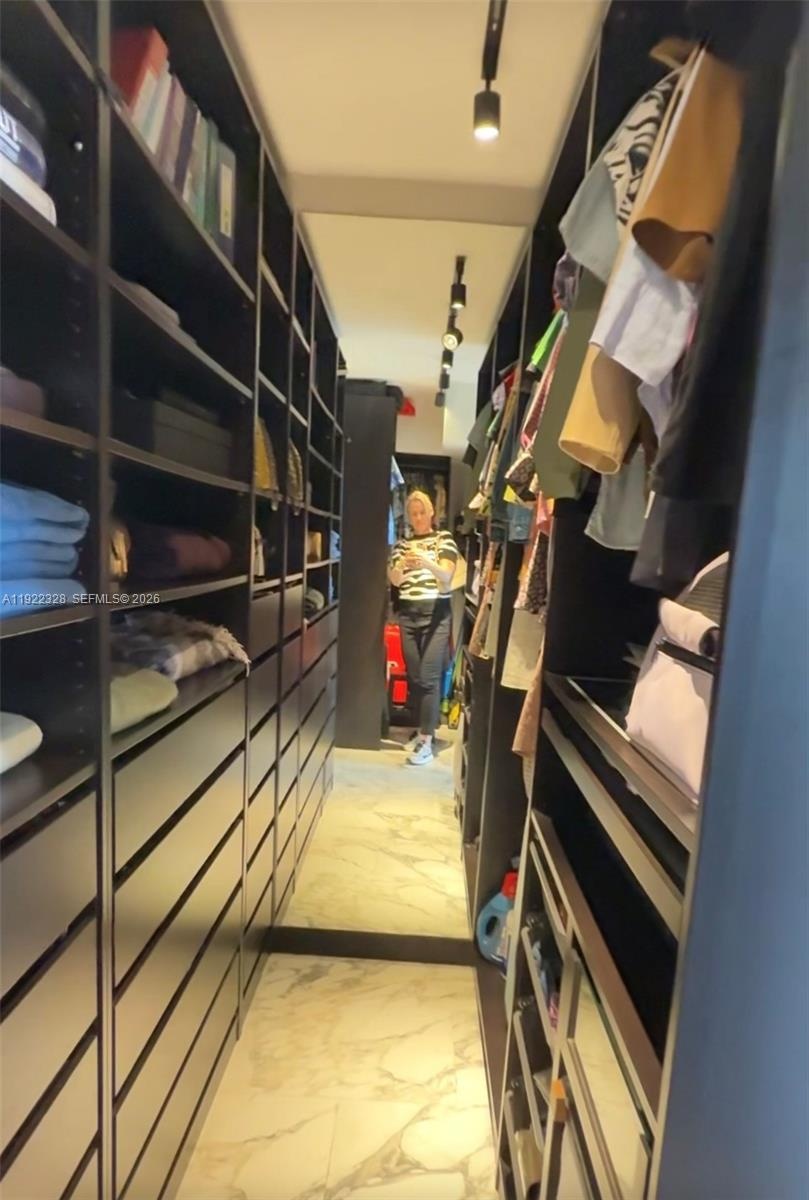 Oversized energy-efficient, hurricane-impact floor-to-ceiling windows and balcony door maximize natural light and ensure year-round comfort. Open kitchen concept, custom cabinetry of natural wood and stone-effect finishes for a contemporary feel, natural Breccia Marble countertops and Samsung built-in appliances. Oversized built-out closet, guest bathroom w/cast-stone sink, Hansgrohe fixtures & frameless glass. Primary bath with Silestone “Charcoal Soapstone,” thermostatic shower & smart glass enclosure. Smart sound surround system, video security system.