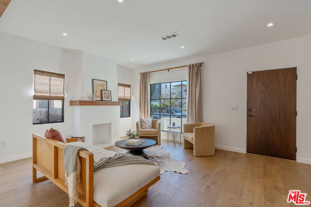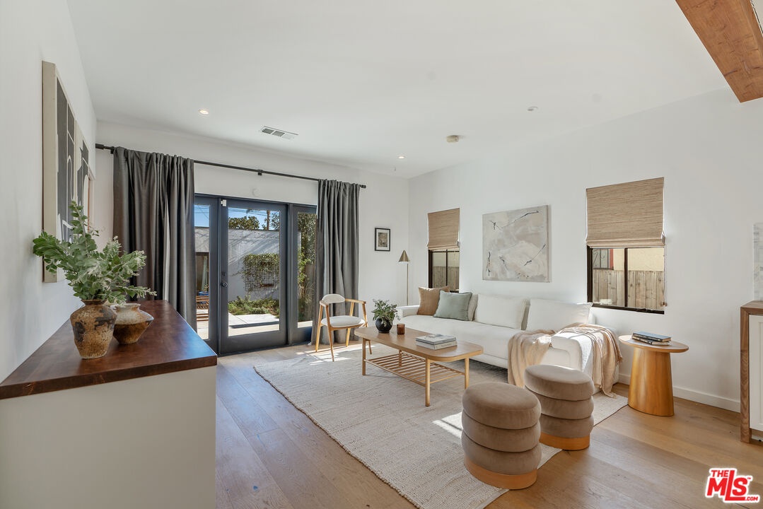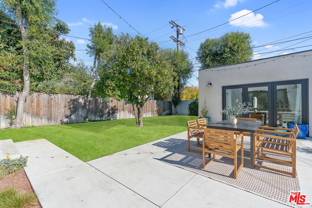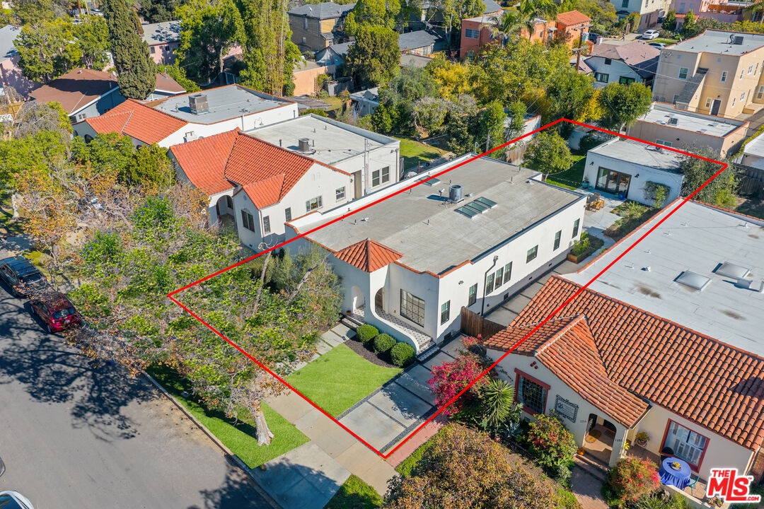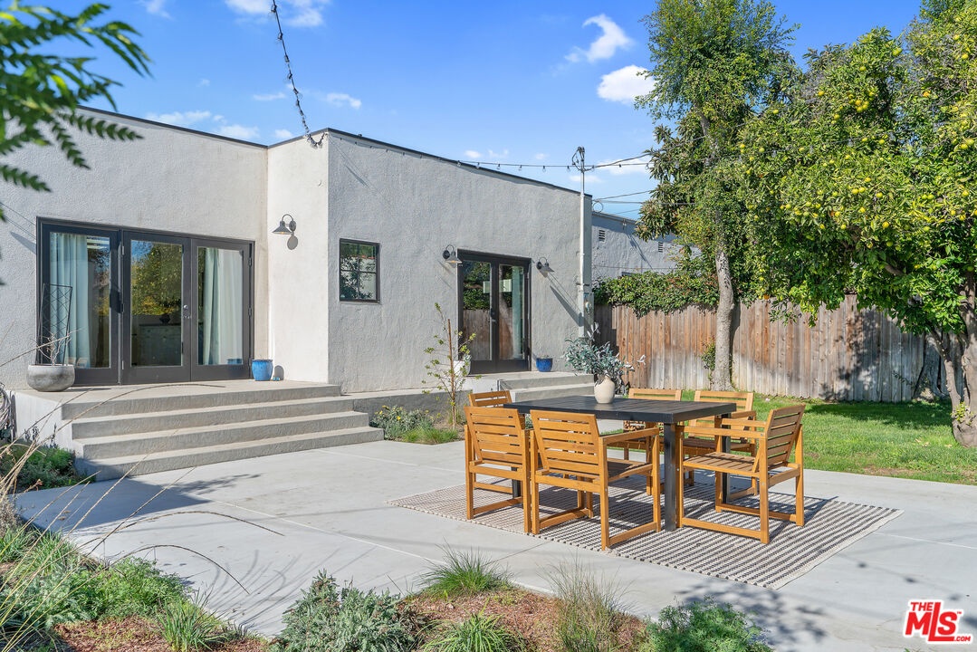 Refined Modern Spanish Retreat in the Heart of Los Angeles! This exquisite 3-bedroom, 2.5-bath residence captures the essence of timeless Spanish architecture, reimagined with contemporary sophistication. Behind a hand-carved wooden door awaits an expansive open-concept layout created for effortless living and entertaining. The chef's kitchen is a true showpiece, featuring Cafe appliances, a dramatic 5'x9' Carrara marble island and a large walk-in pantry. The adjoining great room opens seamlessly to a lush, private, generously sized backyard, an inviting setting for outdoor dining and gatherings. The primary suite offers a serene escape, appointed bath with mosaic Nero Marquina marble floors, a freestanding soaking tub, a skylit walk-in shower and French doors to the patio. Two additional bedrooms, a stylish hall bath and powder room complete the carefully planned interior. A detached Guesthouse with kitchen, bedroom/office area and bath provides extra space for living and studio creativity. Reimagined with newer systems, Nest thermostat, EV charger and pre-wiring for security cameras, this residence harmonizes modern comfort with ageless elegance. Including a well-designed spacious storage shed at the back of the property. Discover the perfect blend of usability and functionality crafted from durable materials. This shed offers storage solutions with the convenience of organization. Ideally situated near renowned dining, outstanding shopping and just a short drive to the beaches and freeways. Create your California lifestyle. 1280 S Sycamore Avenue a captivating blend of beauty, craftsmanship and luxury living in one of Los Angeles' most desirable neighborhoods. Some photos are virtually staged.