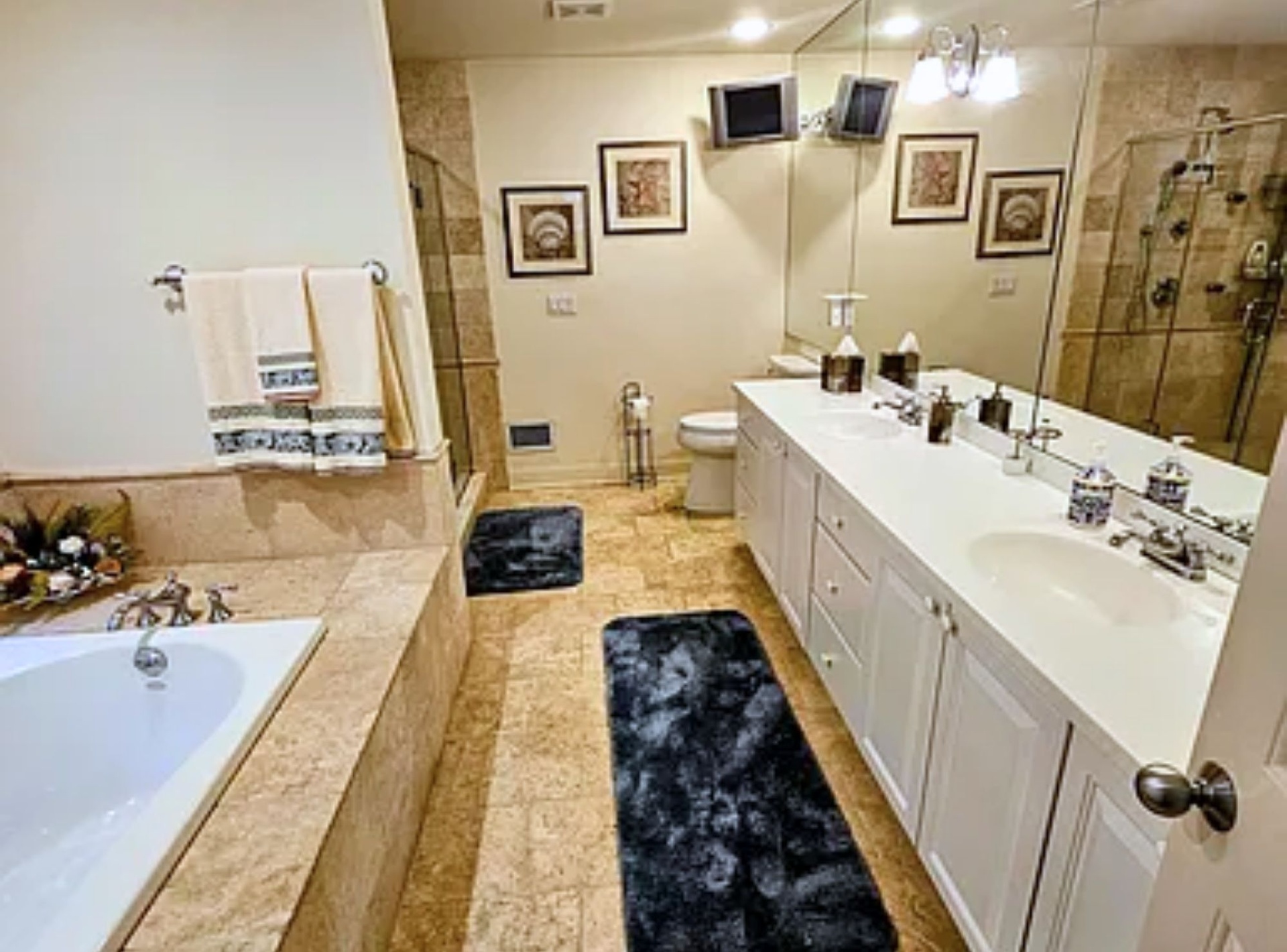 *Master Bedroom #1 faces pool and backyard, king size adjustable bed, power recliner, His/her closets, Master bathroom with jacuzzi tub, large walk-in shower with dual shower heads, His/her sinks