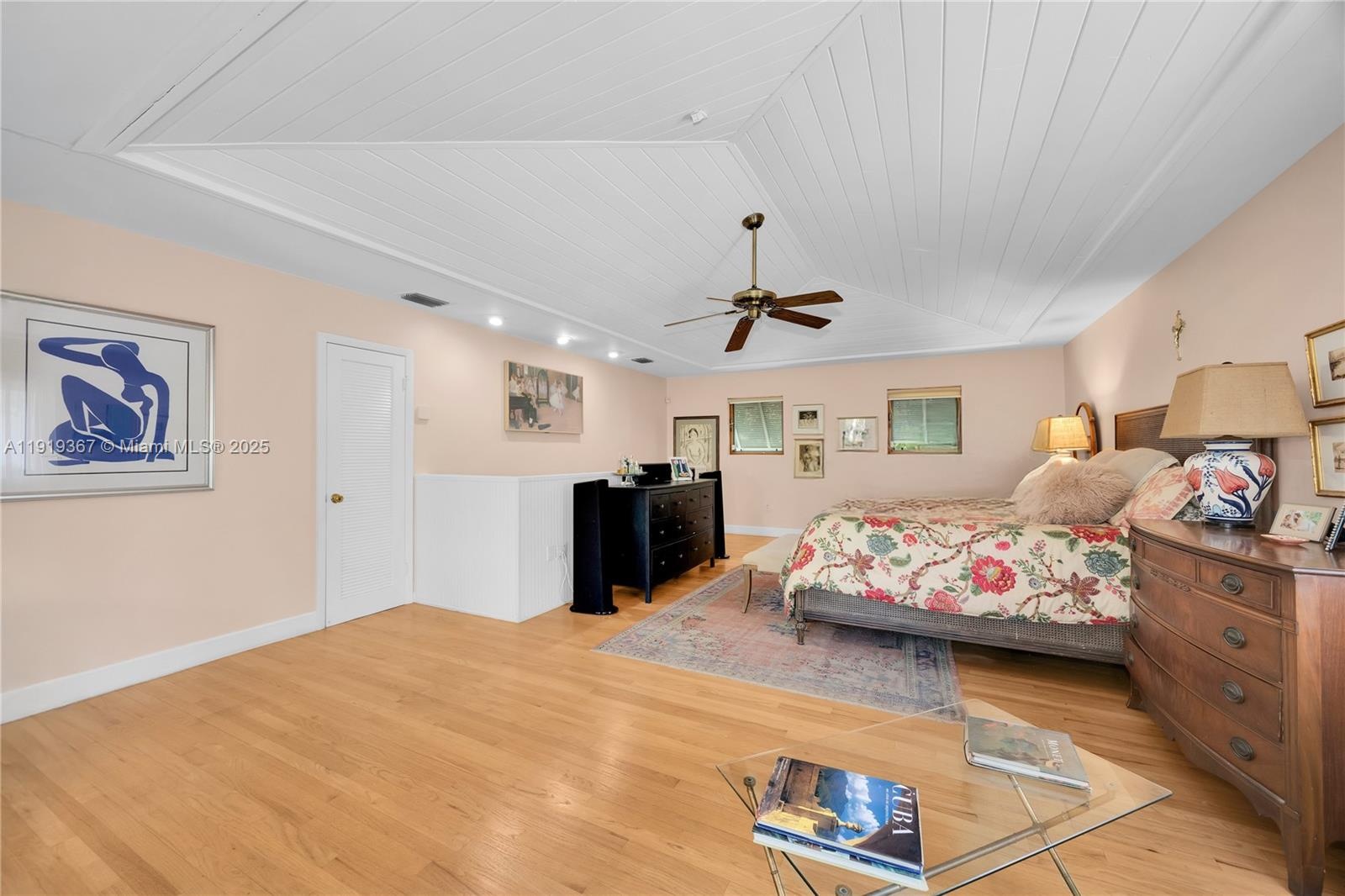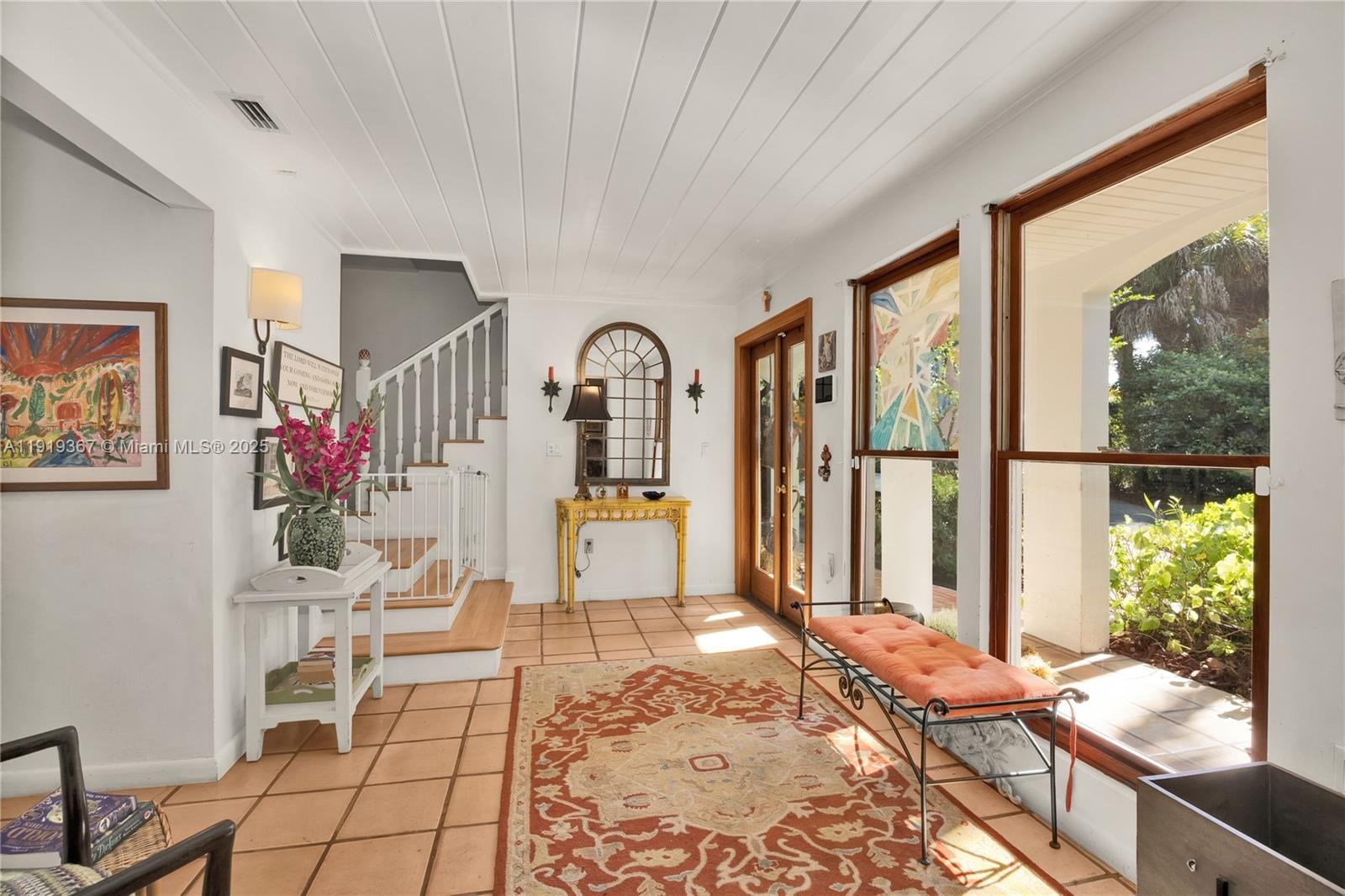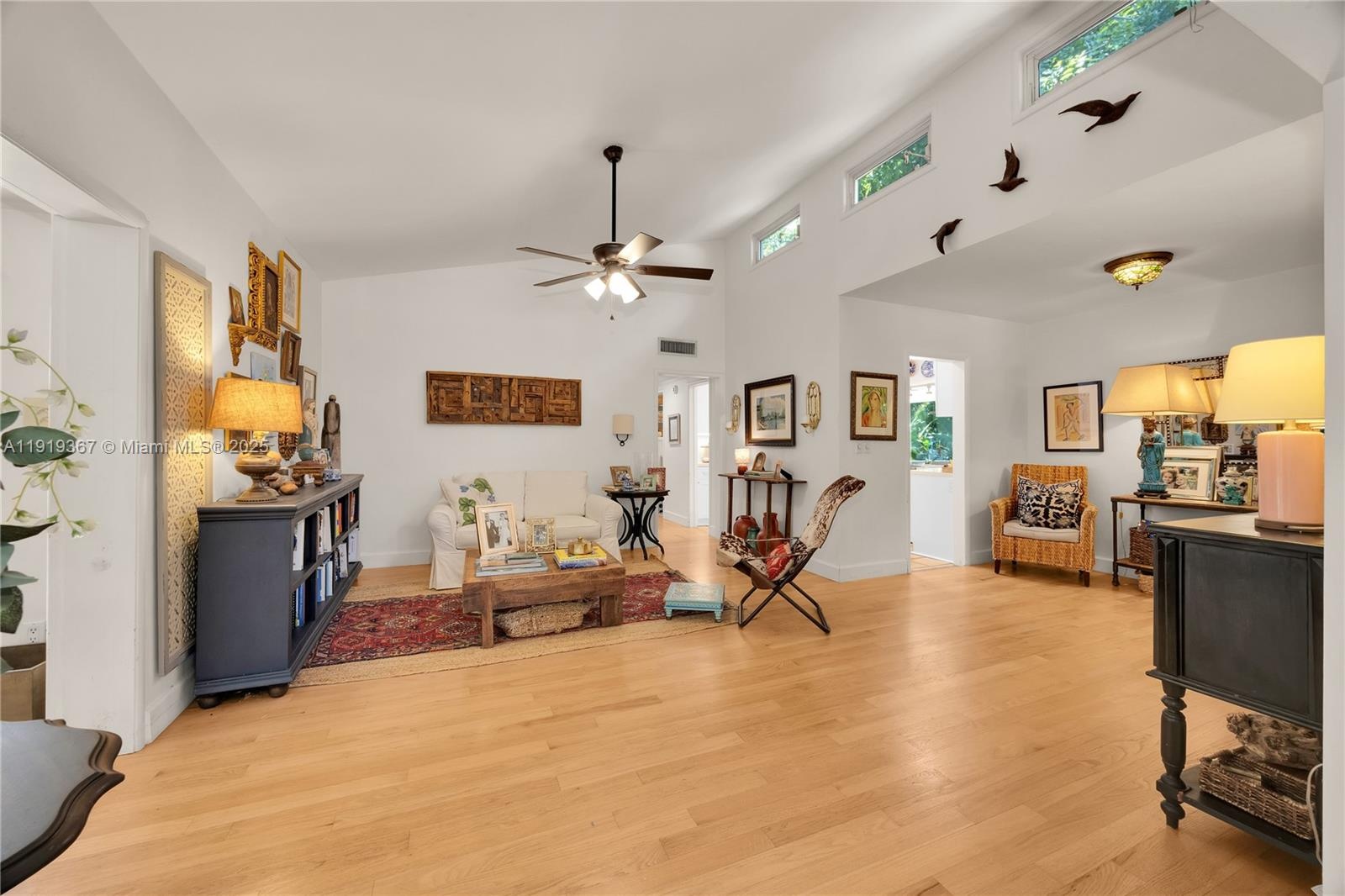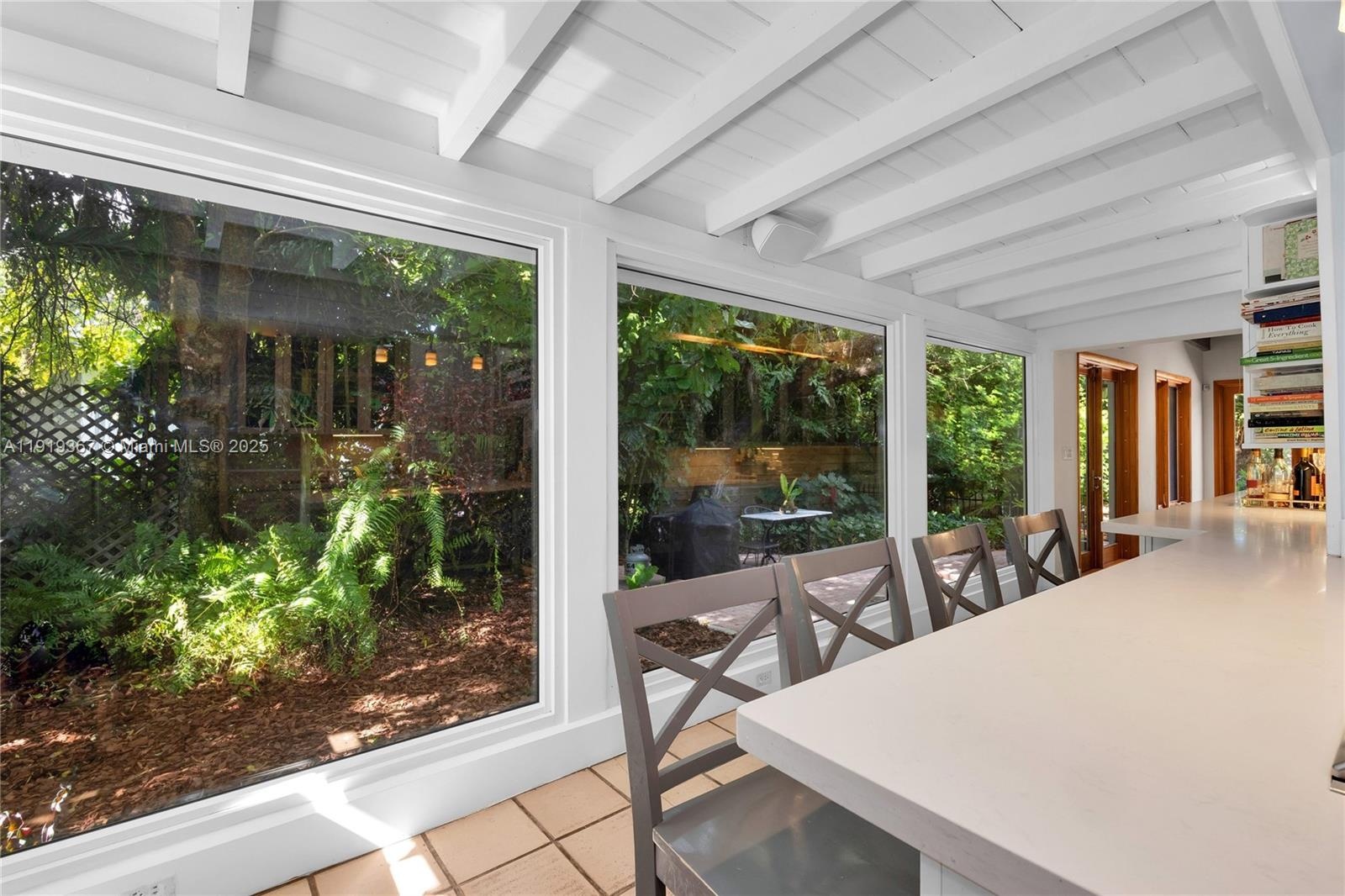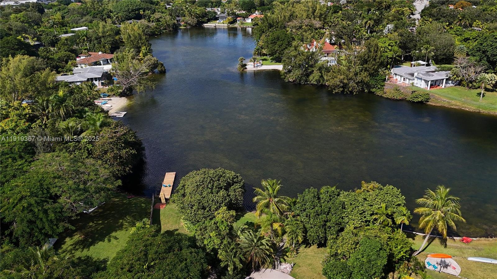Discover this exceptional 5-bedroom, 3-bath home on a lush 16,459 Sq Ft lot, the house is beautifully positioned on an elevated parcel with a pathway down to your own floating dock and vistas across Coral Lake. The stunning great room with white oak floors and floor-to-ceiling windows and open beam ceiling is a light-filled space ideal for gathering friends and family. The recently updated kitchen has lots of workspace including an open butler’s pantry and counter seating. The spacious dining area beckons for long Sunday brunches, spontaneous dinner parties or an inspiring work space. Upstairs, the primary suite is your personal treehouse retreat—a screened balcony where the lake reveals itself, a spa-like renovated bath with glass-enclosed shower and a spacious walk-in closet. Four additional bedrooms (one w ensuite bath) and 2 baths are located on first floor. The spacious backyard and tree-shaded 16,459 sq ft lot offers freedom to roam and play. Keep fishing poles at the ready so kids can fish off the dock while you settle into the Adirondack chairs with a good book, watch the breezes dance across the water. 3 AC zones, Newer Roof, Foyer entrance, corner lot. Large outside storage space. Mostly impact windows doors (there are shutters for the openings that are not impact). Minutes to downtown South Miami, Coral Gables, and University of Miami. This one is special--don't miss it.