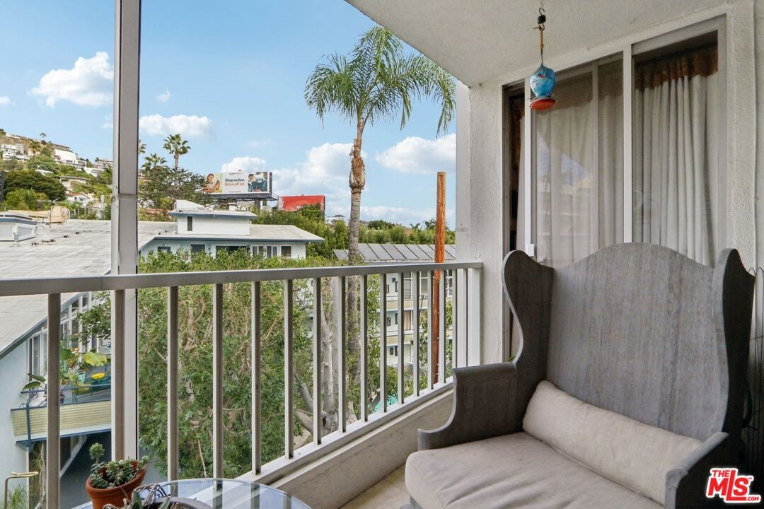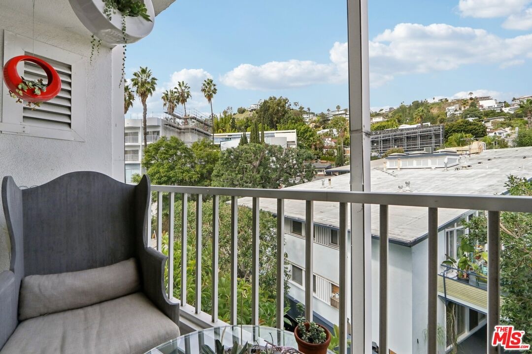UNBEATABLE TOP-FLOOR VIEWS! Welcome to West Hollywood's iconic Sunset Penthouse building, a stunning example of Mid-century modern architecture designed by renowned architect Frank P. Schneider. This charming two-bedroom condo, located just below Sunset Blvd, is a top-floor northeast corner unit situated beside the elevator, creating the impression of a private lift that delivers you straight into your penthouse retreat. FEATURING a bright, open floor plan with high ceilings and hardwood laminate floors, the home boasts a floor-to-ceiling glass wall that opens onto a large private balcony overlooking the beautiful Hollywood Hills. The spacious living and dining areas, complete with a wet bar and chef's kitchen, provide the perfect setting for entertaining. ADDITIONAL HIGHLIGHTS include recessed lighting, central heating and air conditioning, washer/dryer hook-ups, two side-by-side covered parking spaces, extra storage, and access to a rooftop terrace with panoramic 360-degree views ideal for sunset toasts with friends on the sundeck. PRICED UNDER $1 million, this home presents a fantastic opportunity for first-time buyers to enter the market in style. Its prime location offers exceptional walkability to Sunset Strip, La Cienega, and Santa Monica Blvd, just blocks from the area's best restaurants and nightlife. A home this special in such a sought-after setting is truly one of a kind! JUST A FEW STEPS DOWN THE STREET, you'll find William S. Hart Park & Off-Leash Dog Park, a cozy, tree-lined retreat where dogs enjoy off-leash play beneath shady oaks. The park sits on the former estate of silent-film star William S. Hart (who donated his home to Los Angeles as a public park), giving the place a unique sense of history and charm. Its gated, peaceful setting feels like a hidden oasis perfect for residents who want a nearby spot for their pups to romp or meet neighbors while staying right in the heart of West Hollywood with proximity to the Sunset Tower hotel.