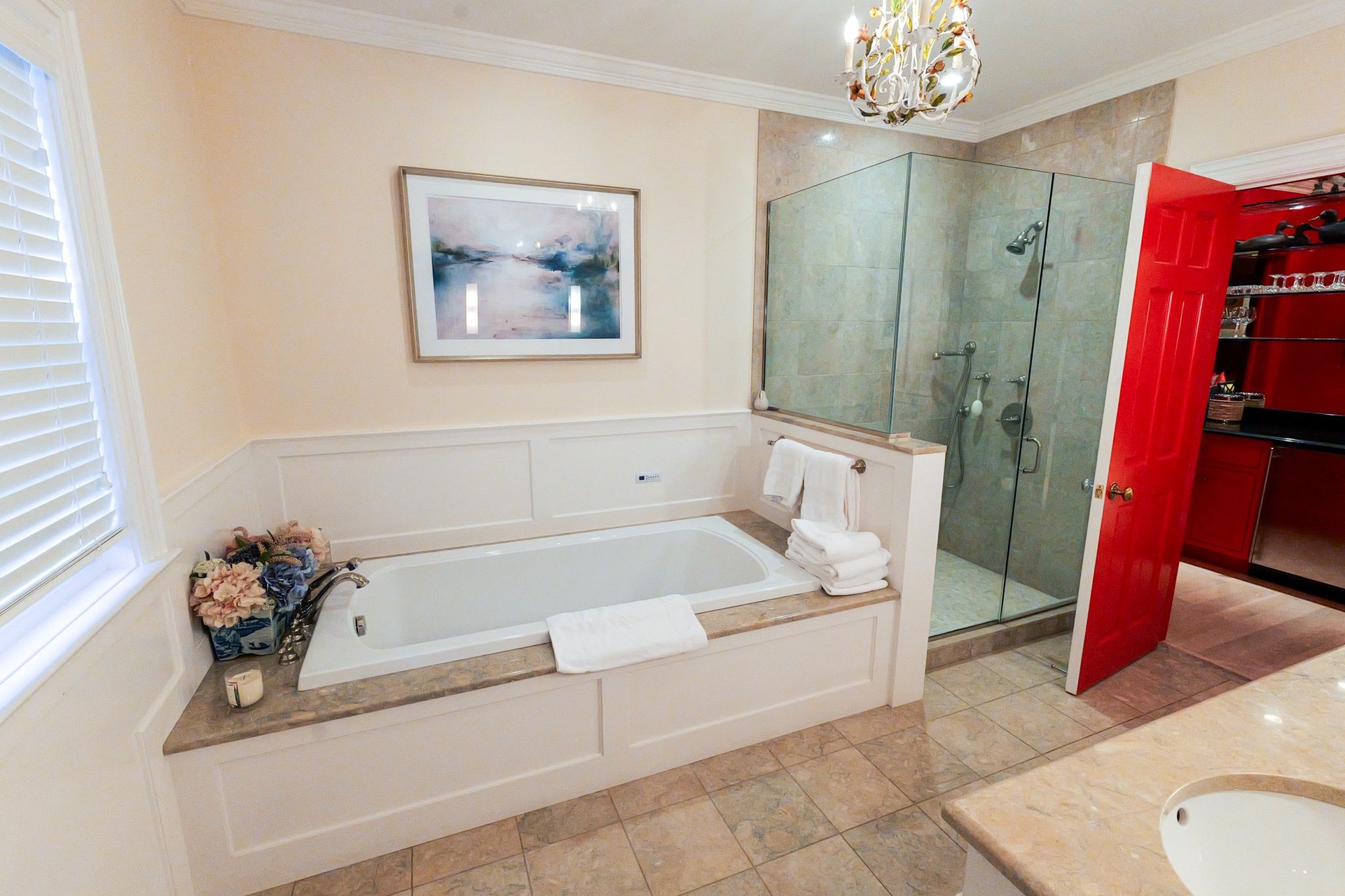 Beautifully appointed and decorated, this traditional home has a heated pool and central air. With masters on both 1st and 2nd, Five bedrooms total and 5 and half baths. There is a wonderful covered porch and lovely entertaining spaces all on a private 1 acre property one block to ocean beaches. You can have the best time ever here. AVAILABLE