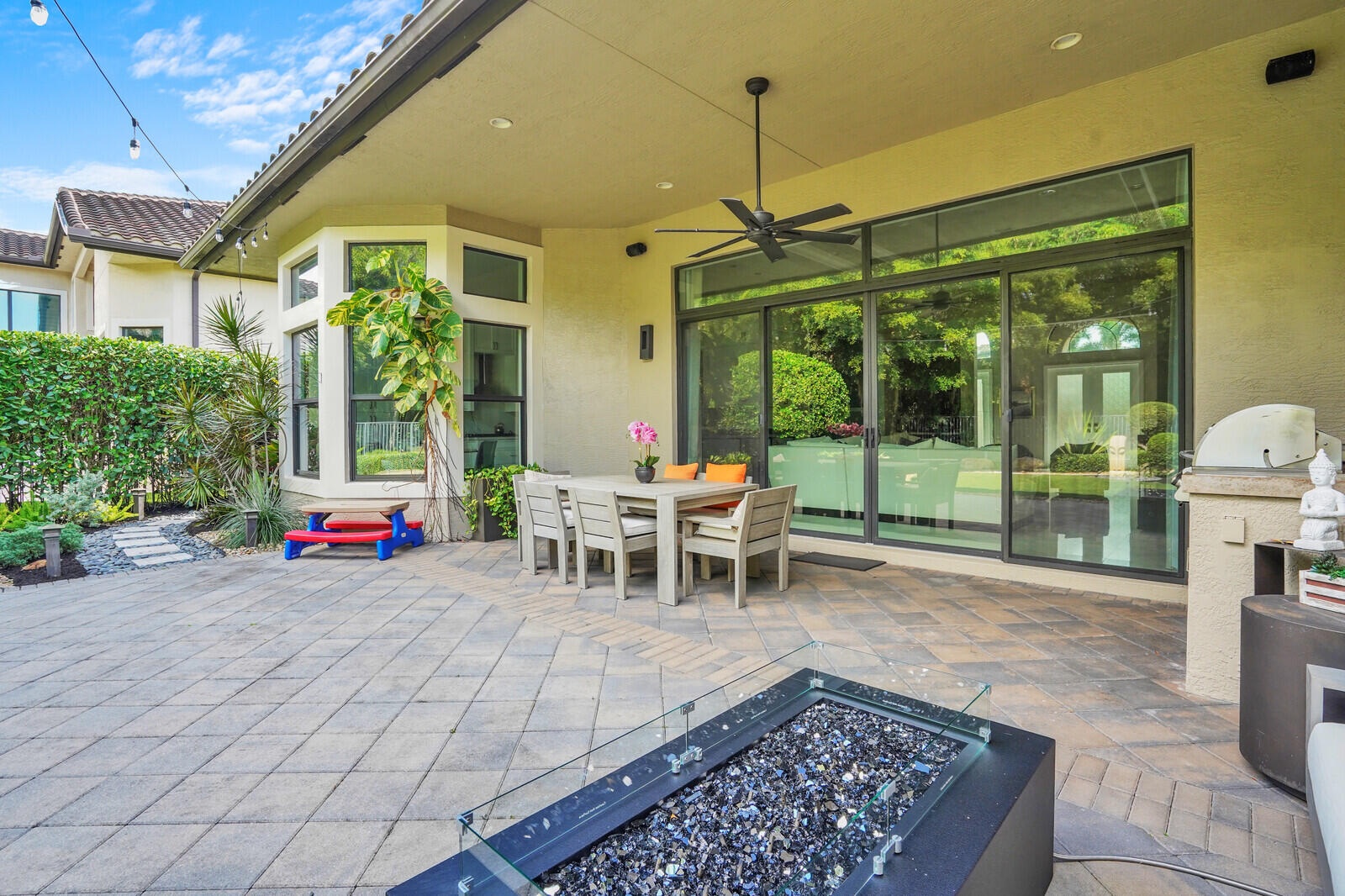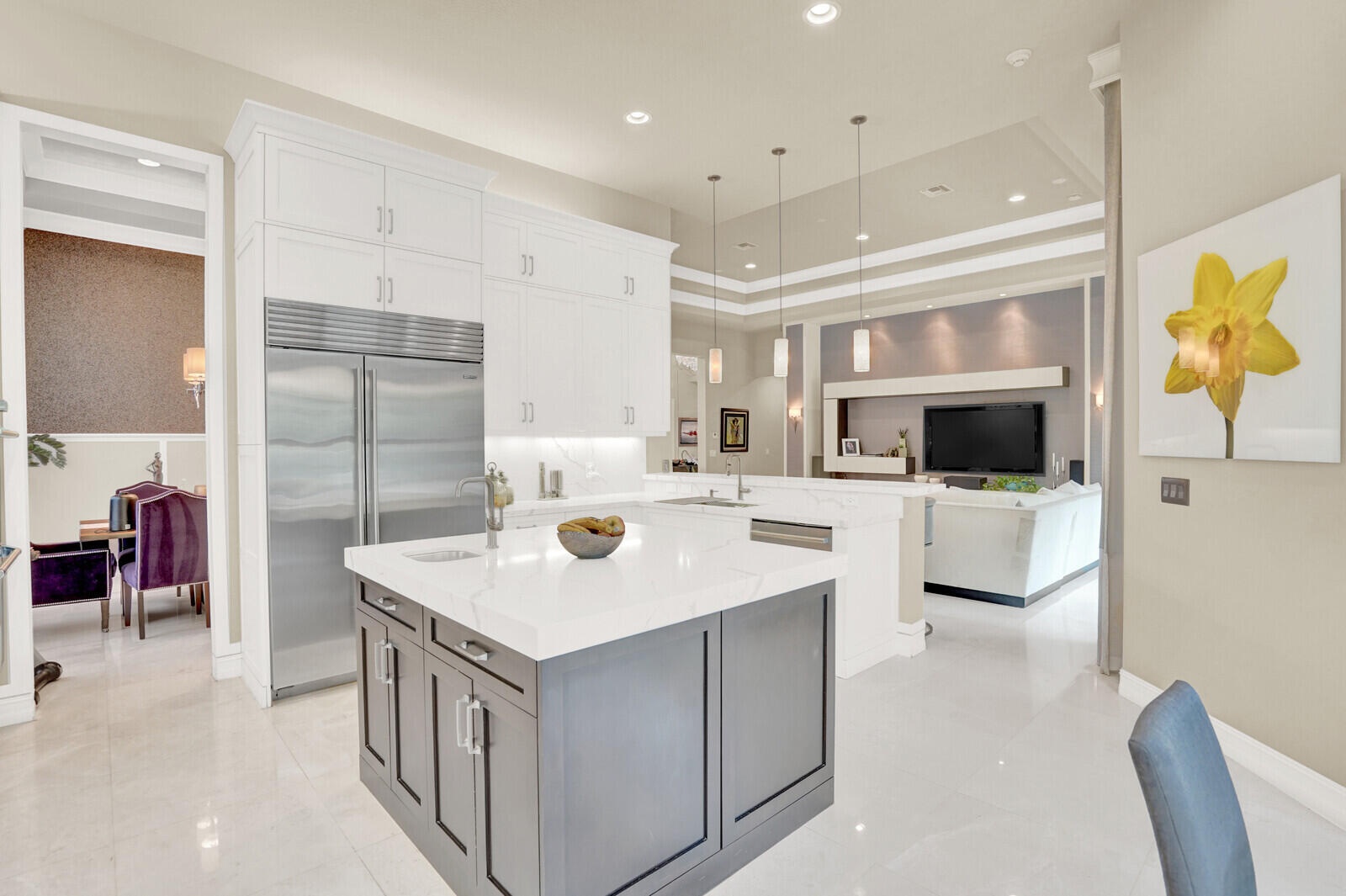 OVER $300,000 IN UPGRADES! SHOWS BETTER THAN A MODEL! ENTER THIS 3BR 3 1/2 BTH + CLUB ROOM, 3 CAR GARAGE, VICTORIA MODEL THROUGH A BREATHTAKING COURTYARD. HOME HAS 24X24 MARBLE FLOORS IN LIVING AREA & TILE FLOORS IN ALL BR'S. GOURMET KITCHEN HAS WHITE CABINETS W/ UPPER STACKED CABINETS, SUB ZERO,VIKING, & BOSCH APPLIANCES, UPGRADED QUARTZ COUNTERTOPS & BACKSPLASH, LARGE EAT IN AREA, & LOTS OF PULL OUTS. PRIMARY BR HAS LINEN CLOSET W/ PULL OUT SHELVES, BLACK OUT SHADES, 2 VERY LARGE BUILT OUT CLOSETS, & UPGRADED VANITIES IN BTH. ALL BTHS HAVE MIRRORS UP TO CEILING W/ WOOD FRAMES & ALL SHOWERS HAVE TILES UP TO CEILING. PROFESSIONALLY LANDSCAPED LIKE NO OTHER! BACKYARD HAS EXTENDED PAVERS, SUMMER KITCHEN, ASTROTURF, WATER FOUNTAIN, PUTTING GREEN, & LIGHTING. **HIT MORE FOR MORE INFO**
