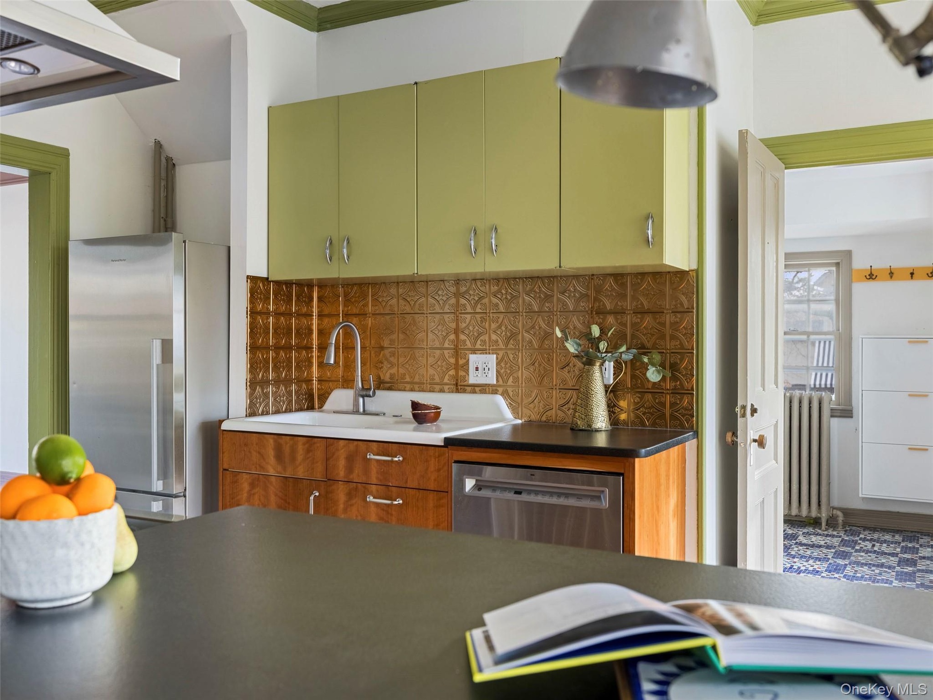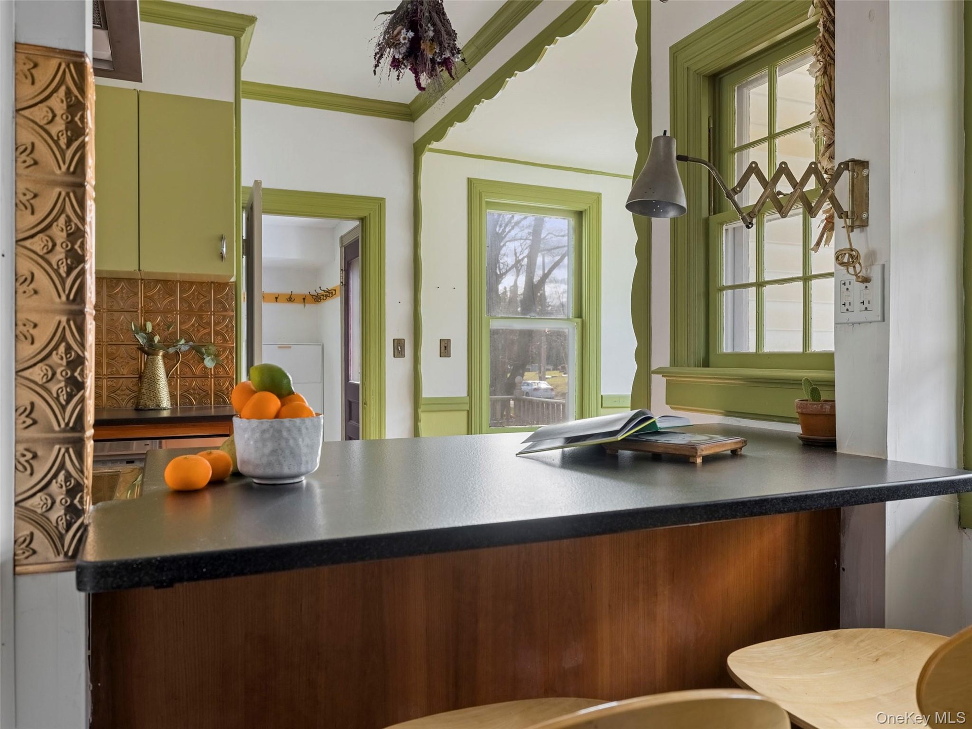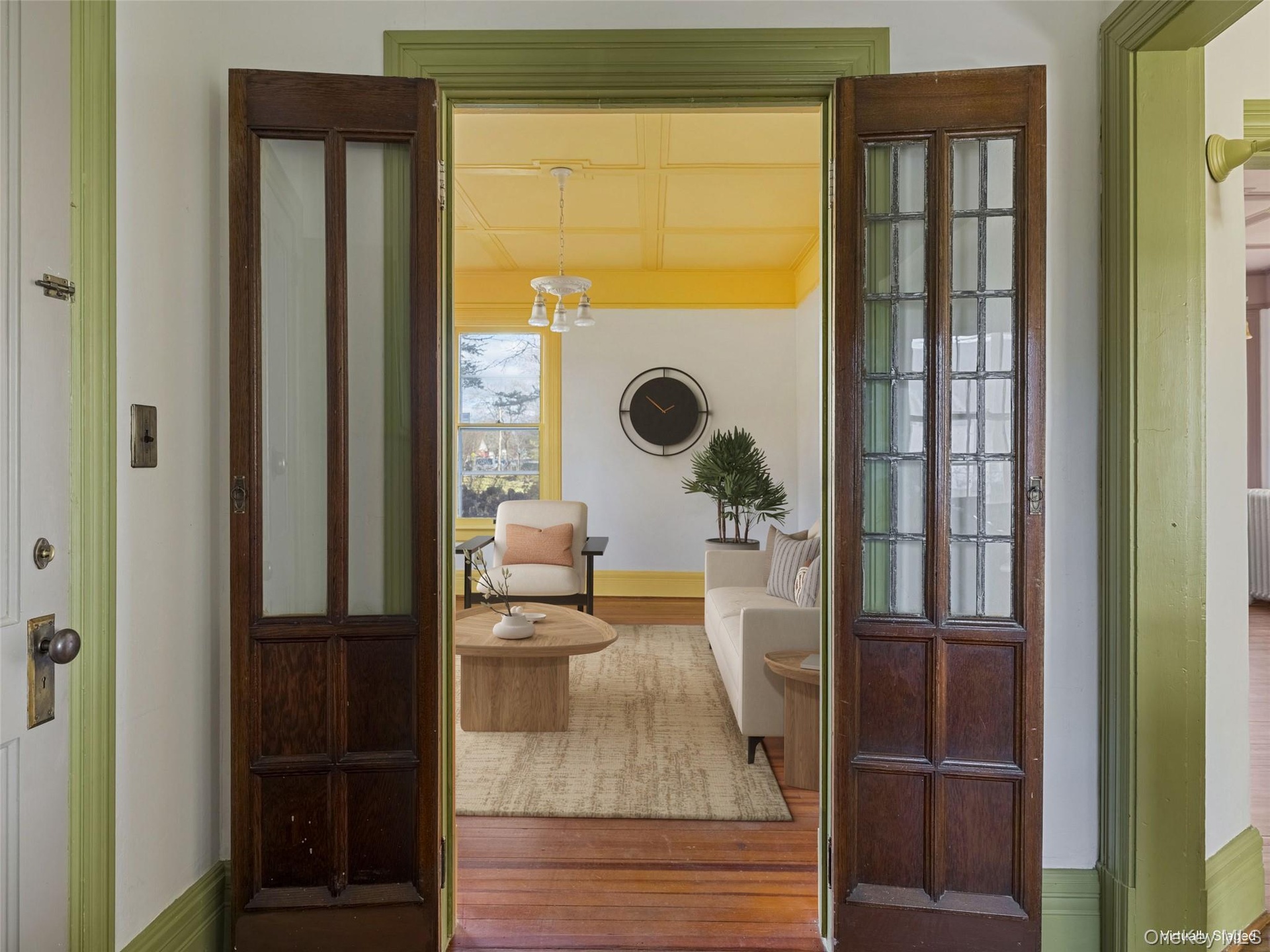 Recently updated, the kitchen features luxury appliances, honed granite countertops, and a copper backsplash, all thoughtfully chosen to honor the home's original character. The spacious mudroom adds both charm and function with its vintage glass tile mosaic floor and wooden peg details. Throughout the house, you will find ornate moldings, stained glass windows, refinished wood floors, and original pendant lights. The colorful rooms are filled with natural light and enhanced by built-ins and coffered ceilings. The layout offers flexibility for bedrooms, workspaces, play spaces, and multiple living options. Two screened-in porches, one on each level, invite slow mornings and quiet evenings.