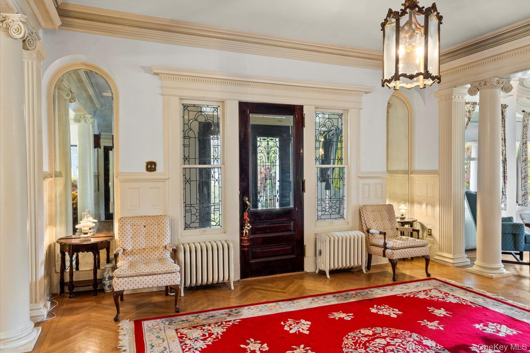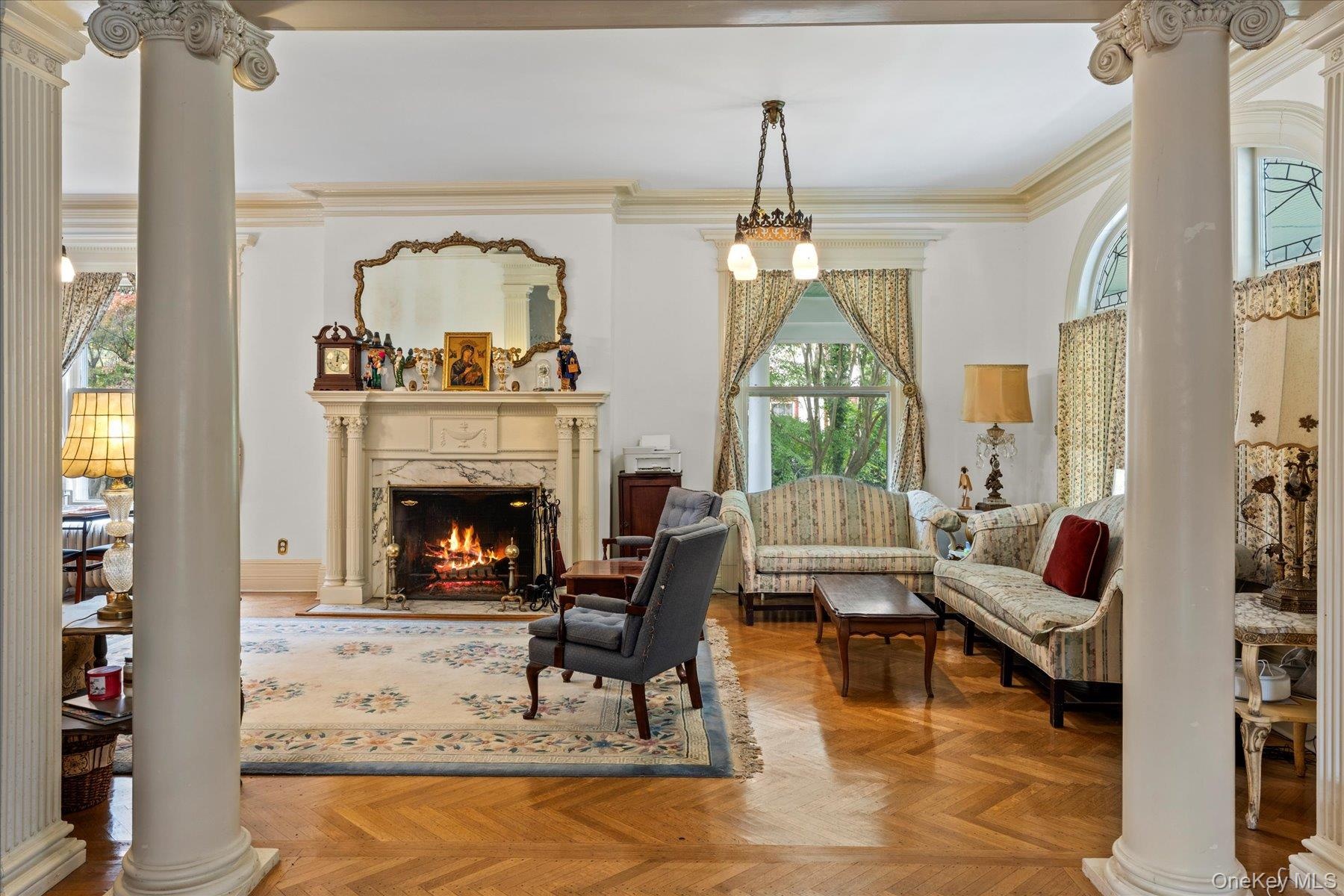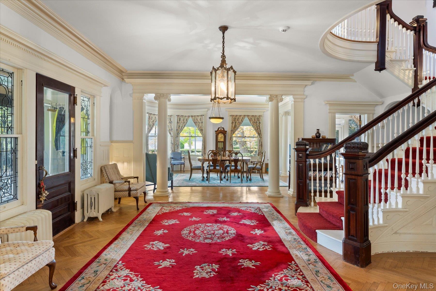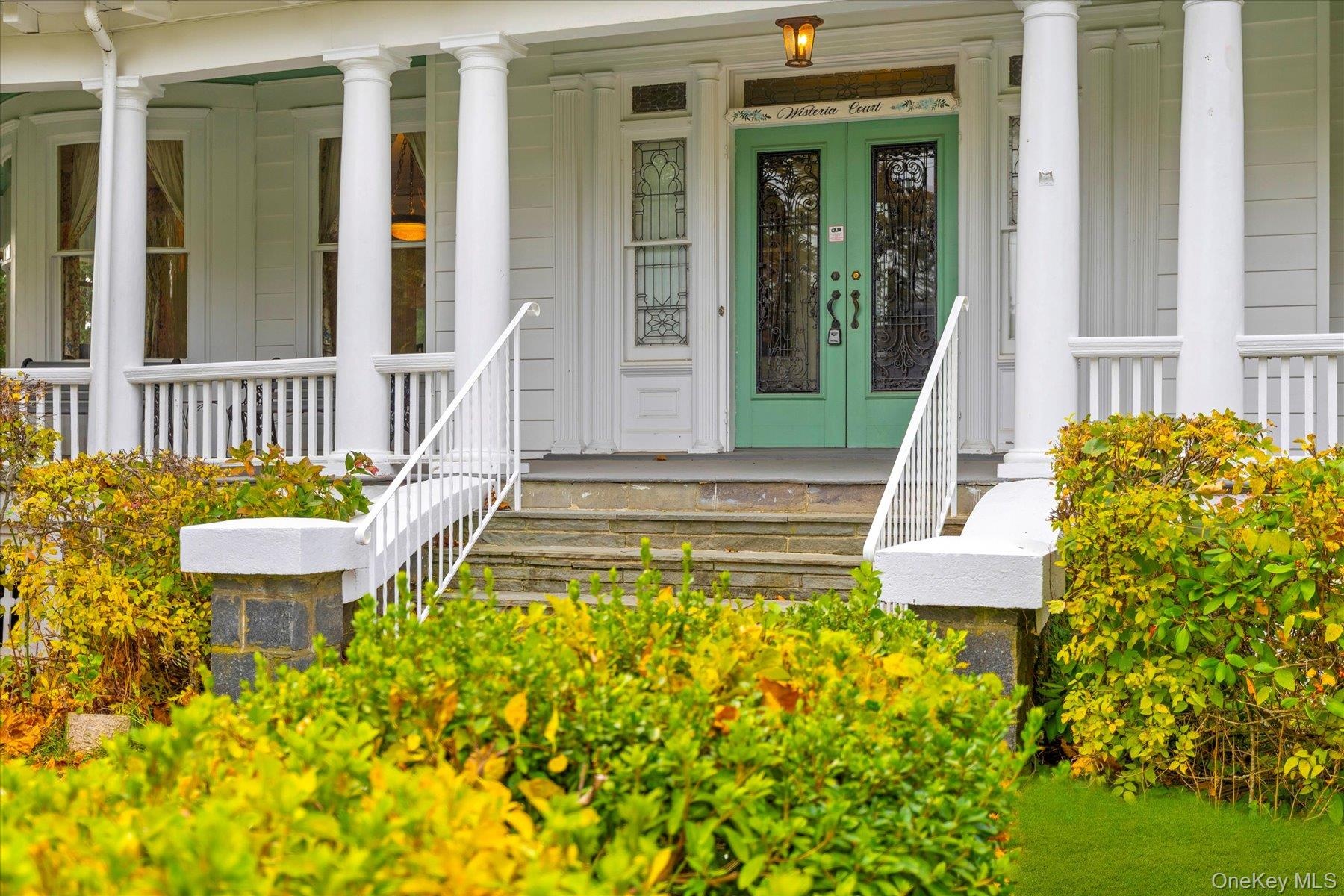 Step into the timeless grandeur of Wisteria Court, one of South Jamesport's most admired historic estates. Wisteria Court stands proudly as an iconic 1913 Queen Anne Colonial set on a .75-acre double corner property in the heart of South Jamesport, just two blocks from the beautiful Great Peconic Bay. This grand residence offers rare legal two-family status and expansive living space, surrounded by lush, mature landscaping and an extraordinary wraparound porch with over 950 square feet of covered outdoor living. Built off a storied local love story, the home carries both historic charm and remarkable scale, with approximately 4,500 square feet of legal living area, including additional space of a full basement and expansive walk up attic, nearly doubling the square footage, all with low taxes. Inside, the home features period details, tall ceilings, and multiple formal and informal gathering rooms filled with natural light. Dual dining areas include a gracious formal dining room ideal for hosting and an additional dining space off the galley kitchen suited for everyday meals. The upper levels offer an array of spacious guest bedrooms with warm wood floors, original trims, and the inviting character of early-century design. Guest bathrooms have been tastefully updated with classic finishes while honoring the home’s vintage aesthetic. Significant recent upgrades elevate the home’s functionality and longevity, including new electric service with dual meters and an upgrade to 350 amps, a new alarm system with perimeter video cameras, and extensive renovations to the rear apartment including new floors, ceilings, paint, and furnishings. Additional updates include a new oil tank, new living room floors and paint, a new HVAC system for heating and cooling, all new major appliances—stoves, dishwashers, washing machines, dryers, refrigerators, and microwaves—as well as a new home theater television and sound system. Exterior enhancements include new front walkway pavers, new lawn installation, a new gravel driveway, and new Belgian block driveway borders. All of these improvements have been completed since May 2024. The property also includes a new septic tank installed in 2019 and a new water heater added in 2020. Designed for effortless entertaining, the property provides dining for 22, sleeping for 14+ guests, and parking for up to 15 cars.