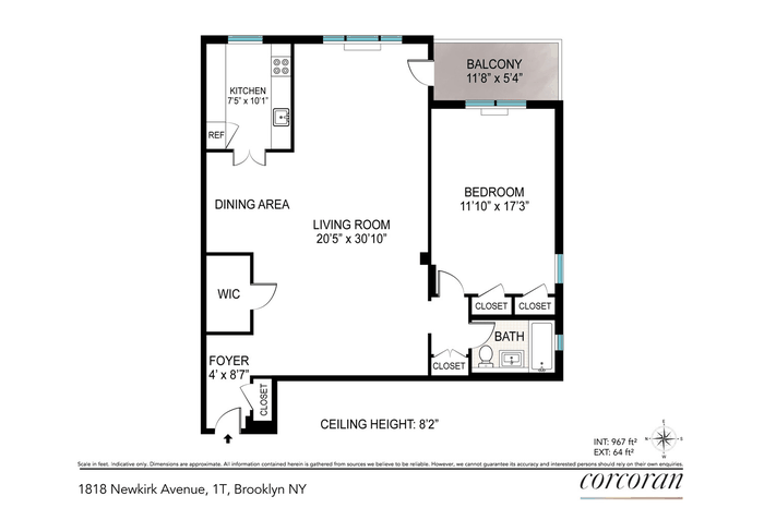 Welcome to your new oasis at 1818 Newkirk Avenue, Unit 1T, nestled in the charming and vibrant neighborhood of Ditmas Park! This fabulous co-op boasts a spacious layout with 4 inviting rooms, including a generous bedroom and a well-appointed bathroom. With 967 square feet of living space, there's room to breathe and grow. Step into the heart of the home, where you'll find a kitchen in pristine condition, ready to inspire your culinary masterpieces. The airy atmosphere is enhanced by 8-foot ceilings and gleaming hardwood floors that stretch across the unit, reflecting the abundant natural light pouring in from its southern and eastern exposures. Enjoy your morning coffee or evening wind-down on your private balcony, providing a perfect retreat and a breath of fresh air, right in the heart of the city. The building itself is a well-maintained post-war low-rise, offering the luxuries of part-time doorman service and pet-friendly accommodations to welcome your furry companions. Reach the bustle and allure of New York City with ease, as this location offers great access to public transportation options. Relish the tranquility of Ditmas Park, with its beautiful tree-lined streets and charming local eateries, or take a peaceful stroll through one of the nearby parks. Don't miss out on the opportunity to call this beautiful space home. Reach out today to schedule a showing and discover why this gem in Ditmas Park should be your next move!