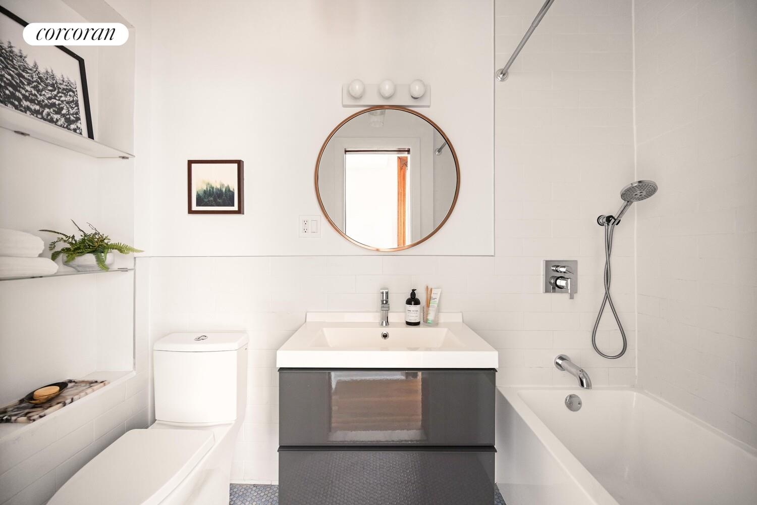 The garden floor is currently configured as a great room with a fully renovated full bathroom, plus an additional bedroom in the extension. It features exposed brick, wood floors, higher-than-normal ceilings, and great light. Use this as a primary suite and a living room, or reconfigure into three bedrooms if you only want to live on the bottom two floors. There is even central AC on the bottom two floors that could easily be expanded to the top floor should you decide to take the entire house for yourself.